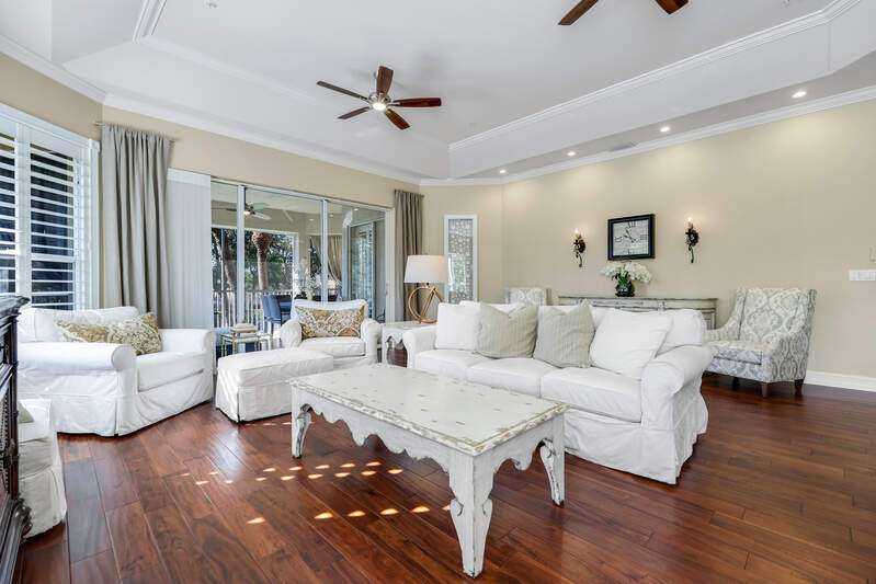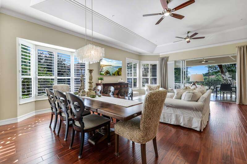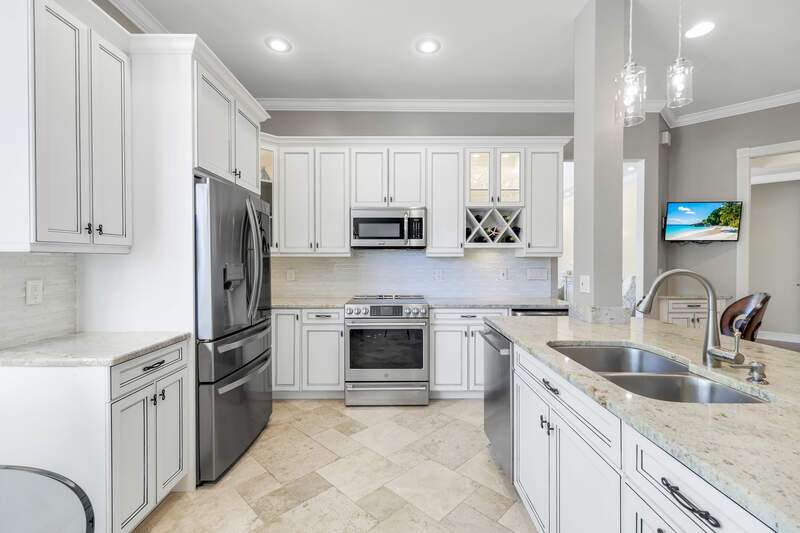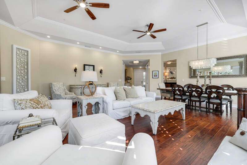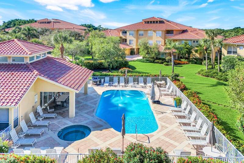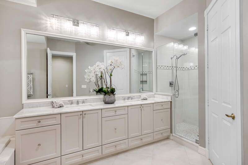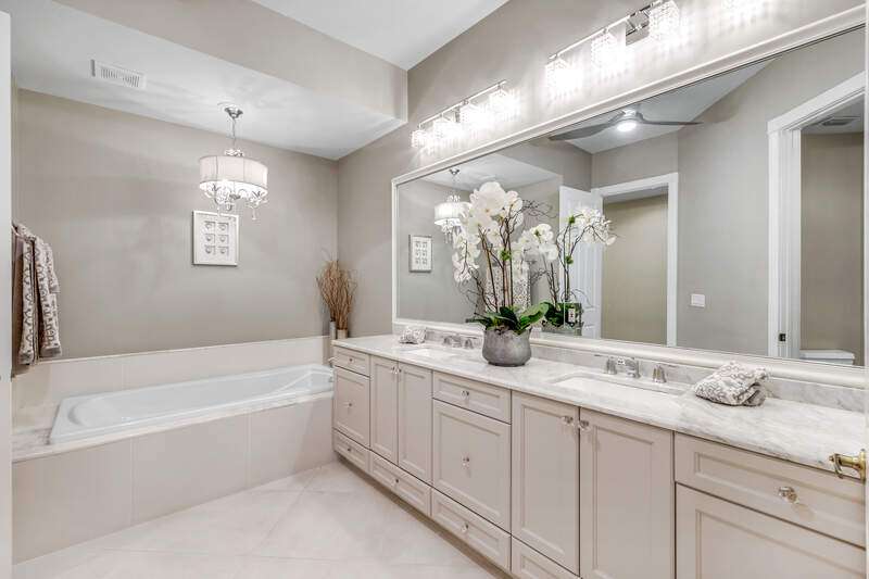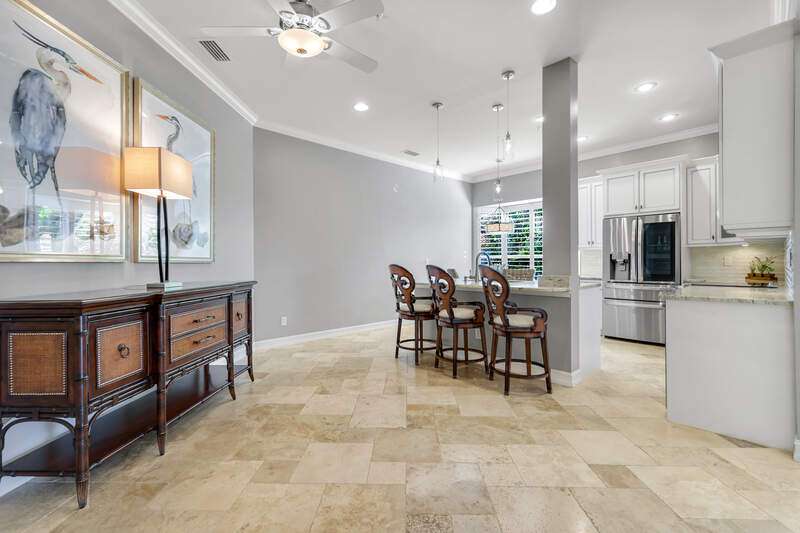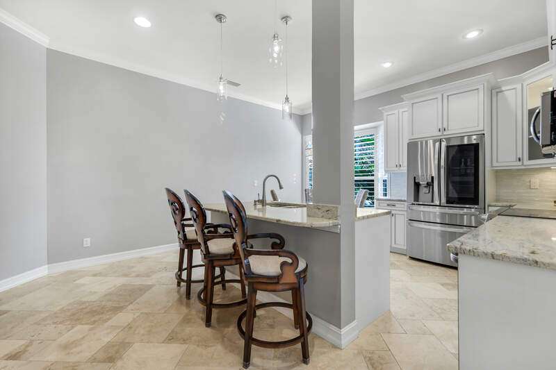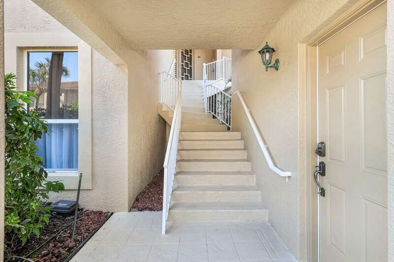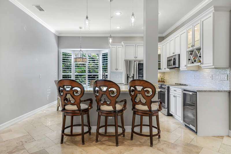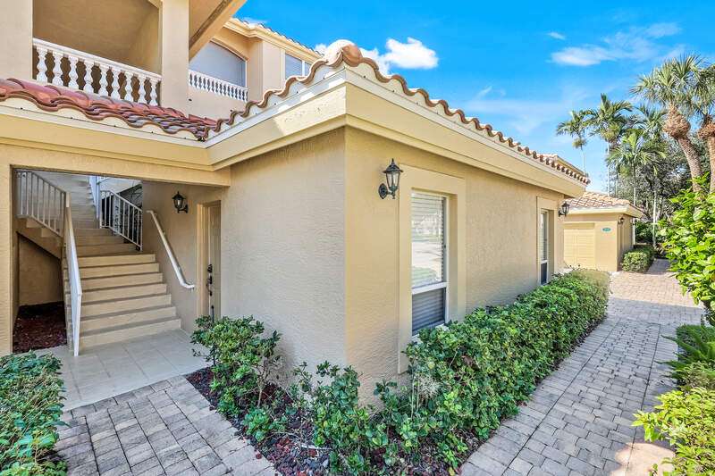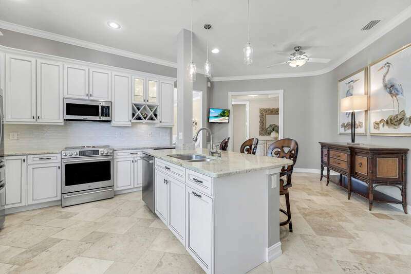Welcome to our wonderfully appointed and spacious second floor "Versailles" floor plan in highly desirable Les Chateaux. Some of the many features of the 3 bedroom, 2 bathroom residence include travertine tile throughout the main living areas, rich wood flooring in the bedrooms and living room, and brand-new washer and dryer. Beautifully updated kitchen offers new appliances, soft close / pull out cabinets, granite counters and stylish mosaic backsplash. Modernized bathrooms with marble counters and shower in Master and granite in second. Plantation shutters add timeless charm while custom closets provide smart and stylish storage solutions. Enjoy comfortable evenings on the private screened lanai nestled amongst mature landscaping. Your convenient, private 2 car garage has epoxy flooring and a flexible Inspired wall storage system. Les Chateaux offers its residents their own community room with swimming pool, spa and lounging area. Pelican Marsh is a splendid, amenity rich North Naples country club community including tennis, pickleball, bocce, fitness and more and is conveniently located to the best in shopping, dining and beaches.