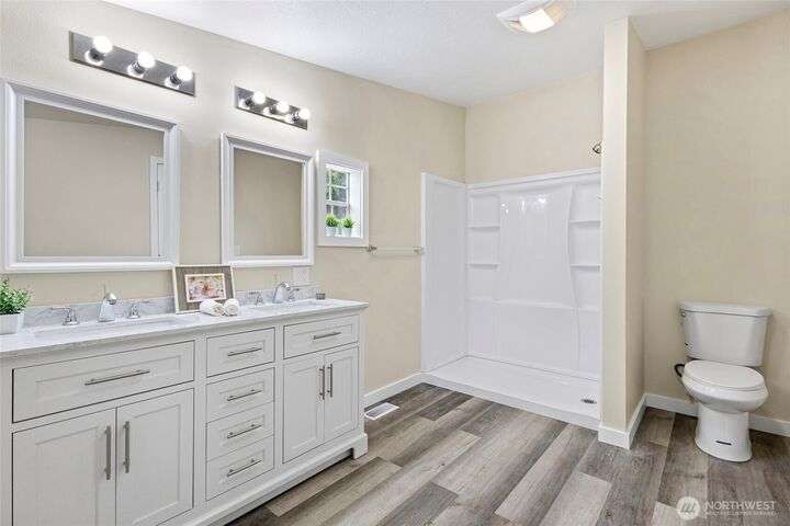 Easy Living in a fun-loving community! Just bring your furniture and personal belongings. This beautifully remodeled quality home is move-in ready with updated flooring, appliances, plumbing, electrical and paint. Enjoy sunrise and breakfast on the oversized back deck. Create feasts in the easy-flow kitchen with lots of counter space and a room for a eating space or desk. Entertaining is easy with the open floor plan. Relax in the comfortable primary suite with double closets, walk in shower, spacious bathroom and walk-in closet. Come see what affordable luxury looks like. Close to bus-line, town and NAS Whidbey Island