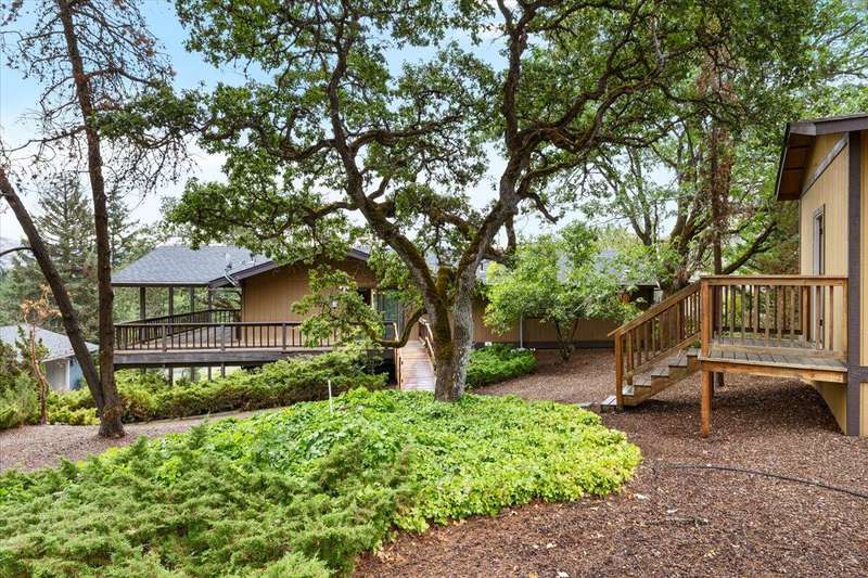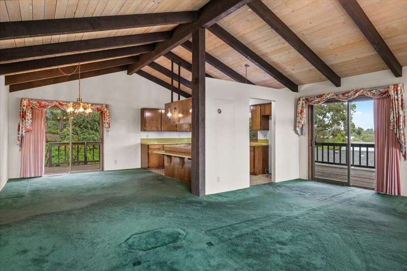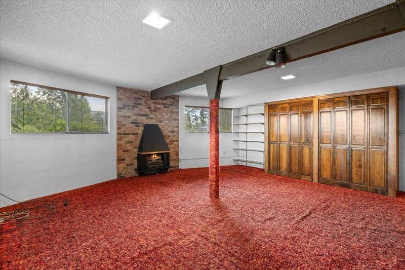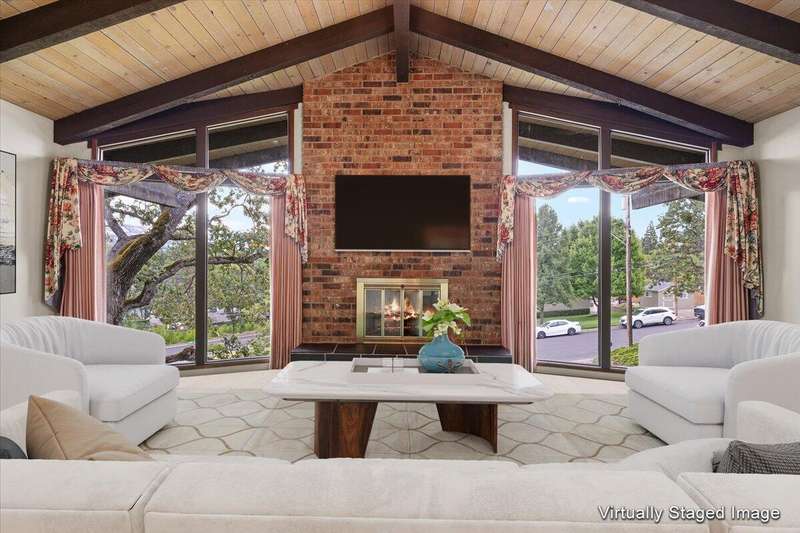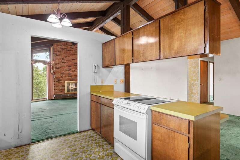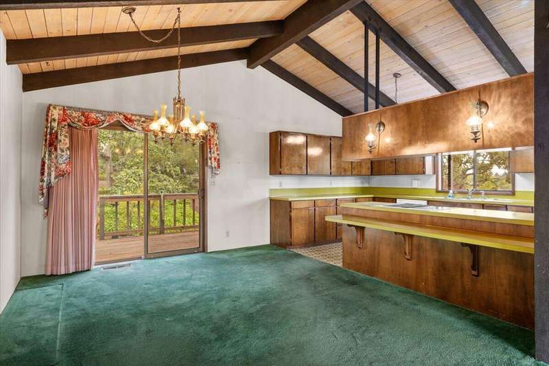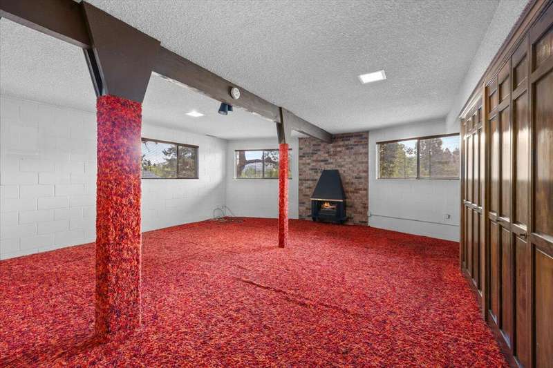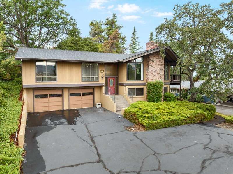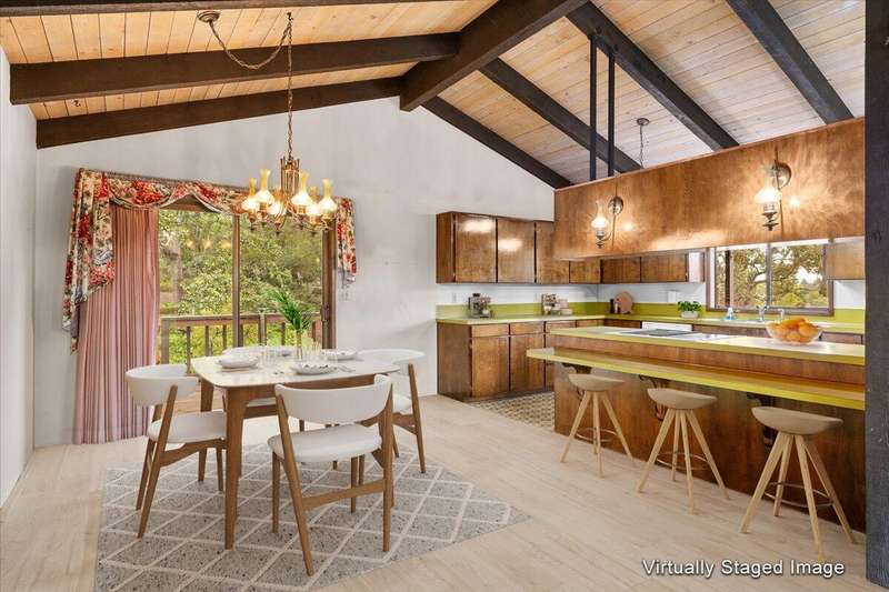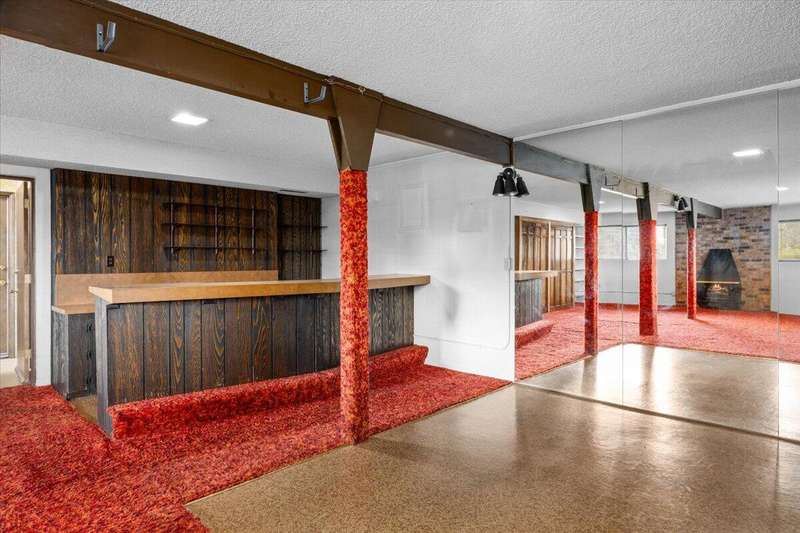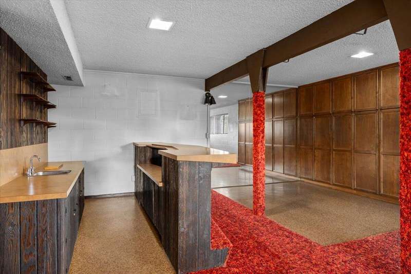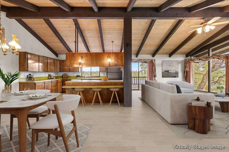 This mid-century contemporary is a true 70's classic—bold, bright, and full of character! You'll love the large windows with sweeping views, vaulted ceilings in the main living and dining room, and a wraparound deck made for relaxing or entertaining. With 2,422 sq ft of total living space, this home features 3 bedrooms, 2 full baths, abundant storage cabinets, and a finished daylight basement complete with a wet bar—great for relaxing or spending time with friends. There's also a fully finished detached storage space perfect for hobbies, creative projects, or extra room to spread out. All on a generous .37-acre lot.