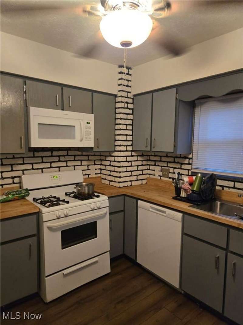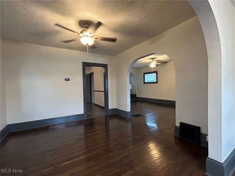 Solid updated home that sparkles! 2 story Cape updated and wow those floors! From comfortable carpeted front porch enter the inviting well lit LR with faux fireplace and glistening floors! Clean spacious kitchen provides attractive vinyl flooring, double sink w window, plenty of cabinets, appliances (Aug2025 new stove, DW, and microwave), and pantry. Separate DR offers window seat w storage, same gleaming hardwood floors. Also, 1st floor bedroom or study/office with lots of natural light. Loads of windows on the first floor make it a bright relaxing home. Upstairs has a very large bedroom w two closets & 2nd BR both w those beautiful floors. Updated bath - lovely vanity, sink, tub/shower, and vinyl floor. Nice fixtures and ceiling fans throughout. Roof and mechanicals in good shape, newer main electric panel, basement with 3 rooms for storage & other uses. Pleasant back yard, back door entrance. Great location in NE Barberton, minutes from downtown amenities and commuting. Come call it home, before someone else in the market of low low inventory of homes.