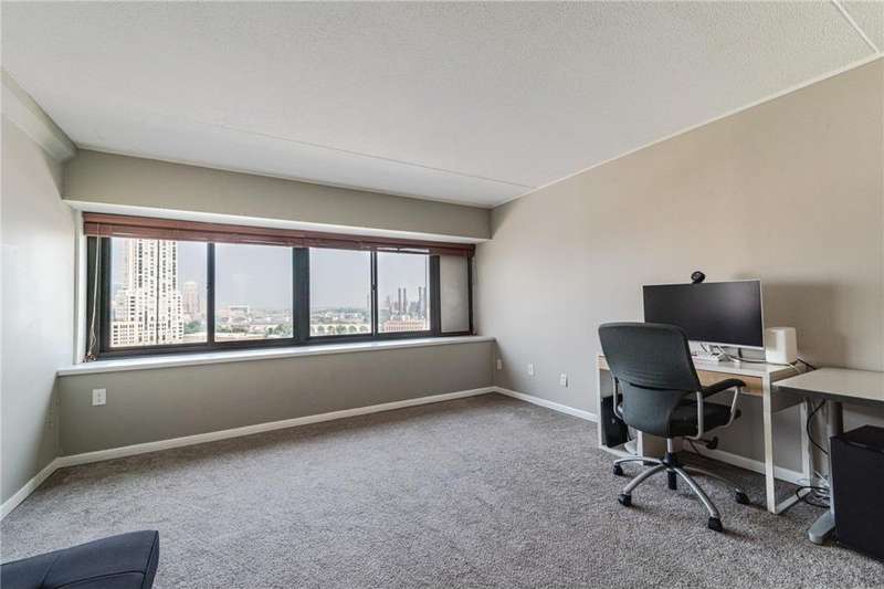 PANORAMIC VIEWS of Downtown Minneapolis, US Bank Stadium, the Stone Arch Bridge and the Mississippi River can be seen from every window in this 2BR 2BA condo featuring a granite/stainless kitchen and newer carpet! There are two generous bedrooms, both with panoramic city views. The primary bedroom has large closet space and a private full bathroom. The building has a FULL SUITE OF AMENITIES including a 24-hour security building, INDOOR POOL, hot tub and sauna, fitness center, tennis courts, workshop and an area to sign out tools for personal use. The HOA fee INCLUDES EVERYTING: Sanitation, water, electric, internet. Both heated and unheated parking options are available, as well as bicycle storage spaces, car wash, and optional locked storage space. The bus stop is just one block away. **NEW WINDOWS WILL BE INSTALLED in Aug 2025.*** The seller’s $1,450 HOA fee includes TWO UNHEATED parking spaces +a storage space, so the HOA fee could adjust downward depending on what the buyer elects for parking/storage options.