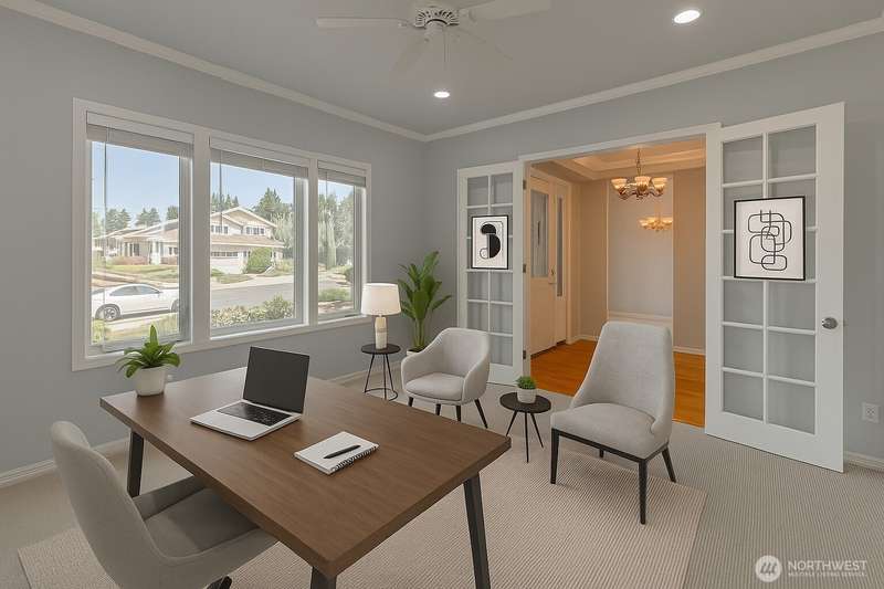 Welcome to Berkshire! This stately 2-story home presents a column-accented entry, gleaming hardwoods, crown molding, archways, & French doors opening to gracious formal rooms. The striking kitchen features a center island w/gas cktop, sparkling countertops, & a generous eating nook flowing into the family rm w/fireplace & wall accents. Spacious primary suite offers a sitting area & spa-like bath with dual vanities, soaking tub, step-in shower, & walk-in closet. With 4 bedrms, 3.5 baths, & grand bonus/theater rm w/ full bath & exterior access, this home adapts beautifully to your lifestyle. Outside, an expansive covered patio overlooks the fully fenced bkyard, while a 3-car tandem garage completes this remarkable gated community residence.