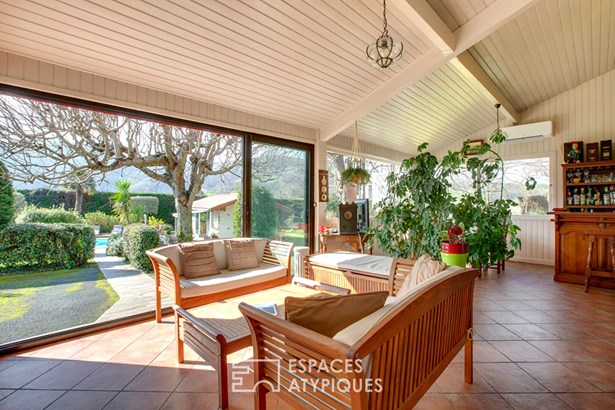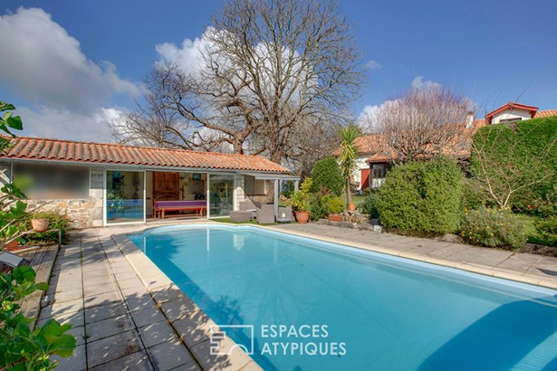 This large Basque Country house with over 450 sqm of usable space is much more than just a residence: it is a true family home, passed down from generation to generation. It awaits owners who will appreciate its unique charm, its rich history, and its development potential. Upon entering, you will be welcomed into a spacious reception room that leads seamlessly to the living room with fireplace. This central room invites relaxation and shared moments with family or friends. To the left of the entrance, you will discover the fully equipped and fitted kitchen-diner offering all the necessary comforts to prepare delicious meals to share in the large adjoining veranda, directly connected to the wooded garden and the swimming pool. A large bedroom with a dressing room, a spacious bathroom equipped with a bathtub and a shower, a toilet and a laundry room, as well as a separate two-room apartment, comprising a bedroom, a living room with fireplace, a kitchen, and a shower room, ideal for guests or for rental use, complete the ground floor. By taking the staircase, you will access the upper floor where there are two additional bedrooms as well as a mezzanine. Behind a door, there is a large additional living room offering a charming relaxation area or library-office. Two other bedrooms with a bathroom and a toilet are accessible by a separate entrance which complete this floor, perfect for accommodating a large family or guests. Adjoining the building, a former stable of approximately 140 sqm on two levels offers incredible potential for development or renovation projects. It is also possible to acquire more land as well as the antique furniture that furnishes the interior. In this idyllic setting, the view from the house is splendid, with the hills of the Basque Country and the Mondarrain as a backdrop. The large swimming pool and its pool house invite you to moments of conviviality. On the west side, you can admire a distant view of the Ocean, adding a touch of serenity to this magical place. Located in the heart of the Basque Country, this house is less than half an hour from Bayonne and Biarritz, in the region of the famous Espelette pepper. You'll enjoy the tranquility of the countryside while being close to amenities and tourist attractions.