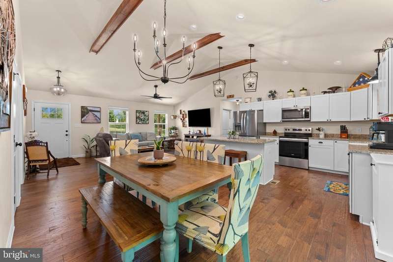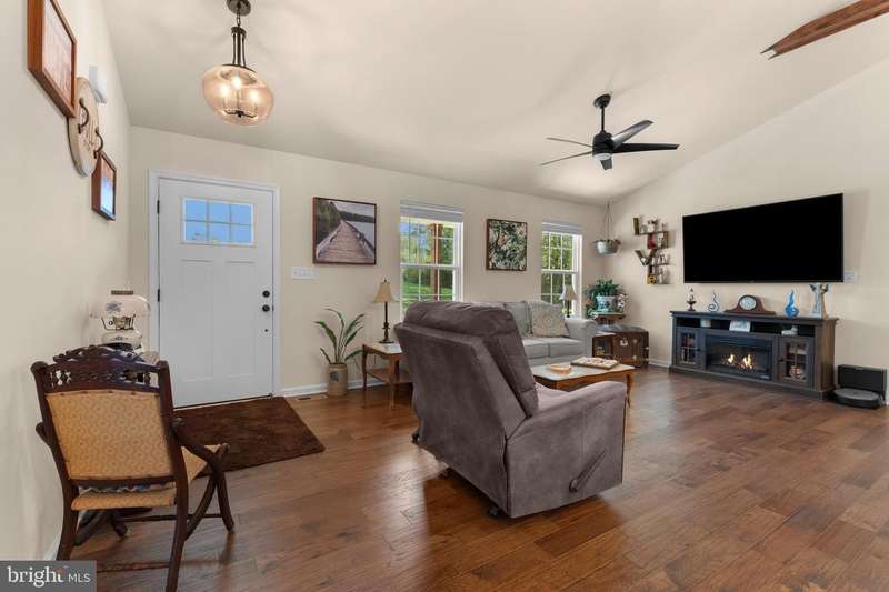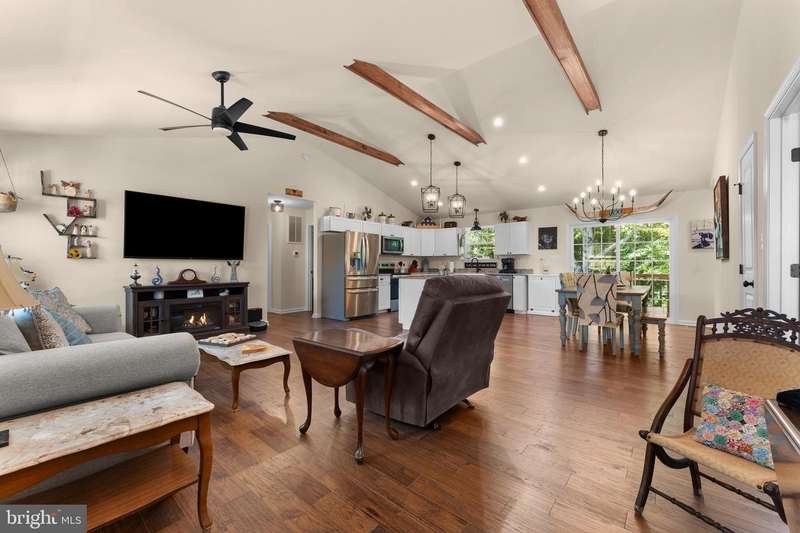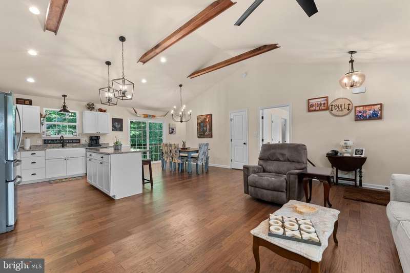 Seller offering $5,000.00 in closing cost. Step into this stunning newly built 2024 rambler that perfectly blends modern comfort with timeless farmhouse charm. Situated on a private lot featuring a beautiful yard, wooded backdrop, and a peaceful stream, this home offers both style and tranquility. The adjoining lot is combined in this sale to offer a total of six acres. Inside, the main level boasts an open-concept design with a seamless flow between the living, dining, and kitchen areas. Enjoy the warmth of hardwood floors, eye-catching stained wood beams, and an abundance of natural light. The custom kitchen and bathrooms are thoughtfully designed with ceramic tile and high-end finishes. This level also includes three spacious bedrooms and two full bathrooms. The walkout basement is fully framed with a bathroom rough-in-ready for your personal finishing touches to create the space of your dreams. Additional highlights include a whole-house generator for peace of mind and a fully insulated 12' x 32' shed equipped with electric and a water line-perfect for a workshop, studio, or storage. Don't miss the opportunity to own this exceptional home that offers charm, comfort, and the beauty of nature right outside your door!