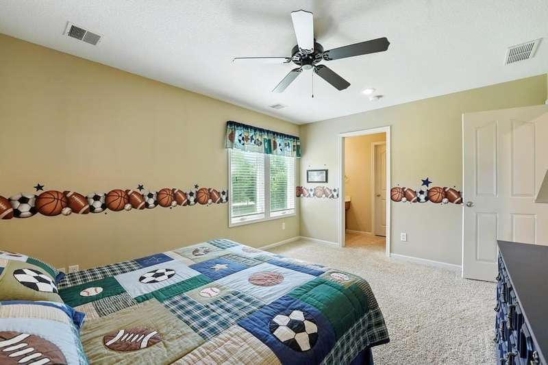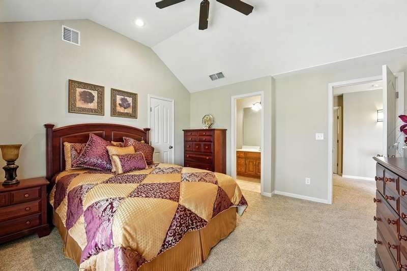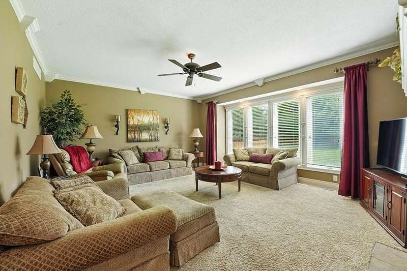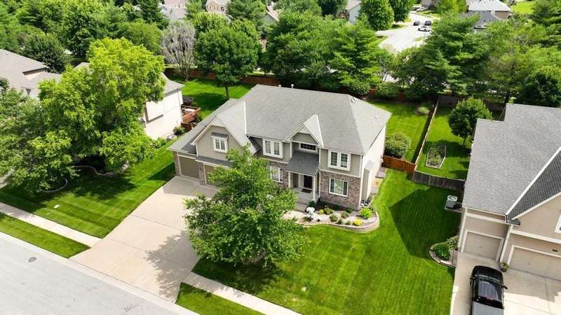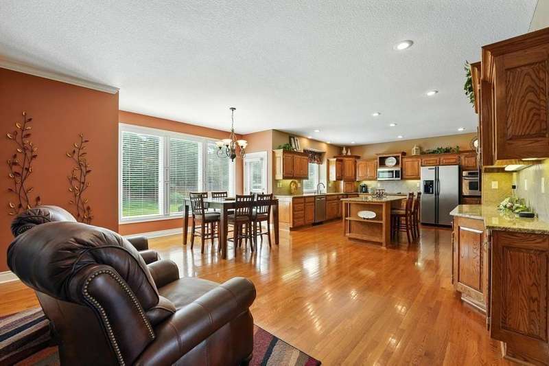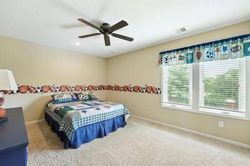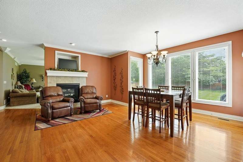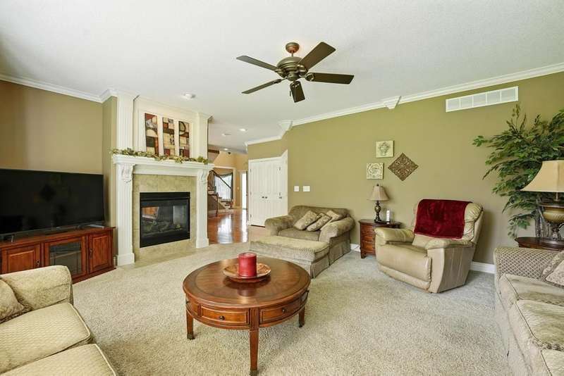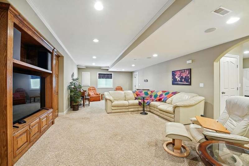 Exceptional 2 Story home on gorgeous lot offers 5 large bedrooms & 4 1/2 bathrooms over 4200 sqft of finished living space! Established lawn & landscape are low maintenance. Welcoming front porch opens to 2 story entry w/wood floors leading to open plan. Private office with glass French doors to the left, formal dining to the right of entry. Large great room has wall of windows, see thru fireplace to spacious hearth room kitchen. Ideal for gatherings, the hearth room is cozy with sunny breakfast room, built-in buffet with granite top & glass front upper cabinets, large island in kitchen offers more informal seating & tons of workspace with ample cabinets around perimeter with pantry. Wide staircase leads to 2nd floor bedrooms & large laundry. Primary suite has luxury bath and incredible walk-in closet, vaulted ceilings, separate vanities, extensive trim. Guest suite has vaulted ceiling, walk-in closet & private bath. 2 additional bedrooms have separate vanities, walk-in closets & share tub/shower. Laundry room offers plenty of space for ironing, sewing, storage. Lower level is over 1400 sqft, with great layout. Family room has daylight window & built ins, separate area is ideal for game room-pingpong or pool table, with custom built ins along 1 wall. 5th bedroom & 4th full bath are ideal for guests. Ample unfinished storage space as well. The garage is also oversized, 31.4' wide x 23' deep! Garage doors are 8' tall and insulated. Plenty of space for workbench, shelves, outdoor toys. Off the breakfast room is a large deck with just a couple of steps down to patio & level yard with shadowbox fence & mature trees & landscape.
