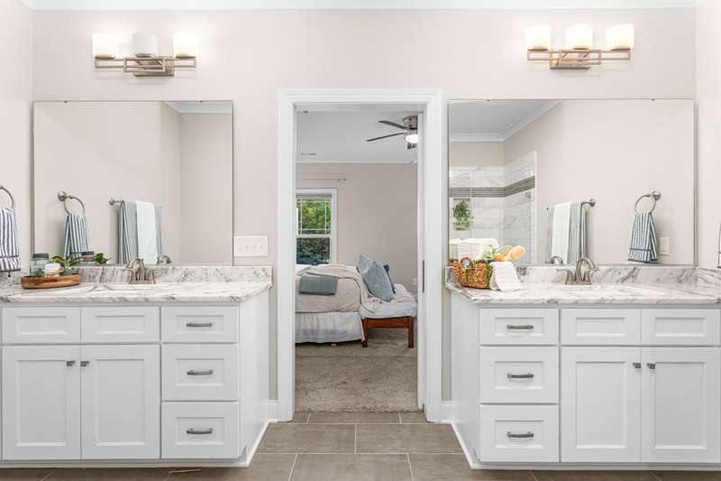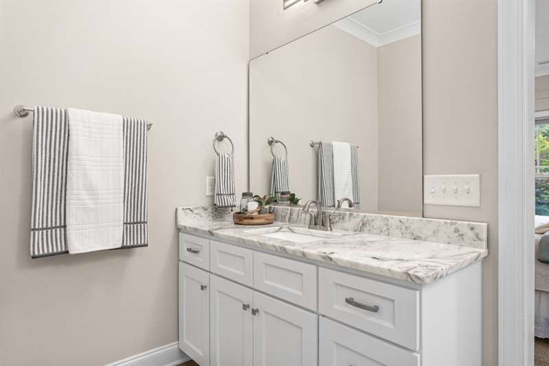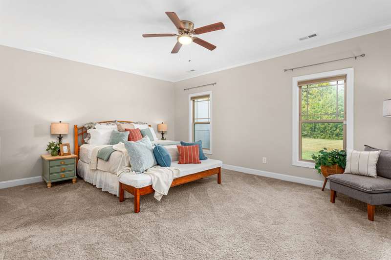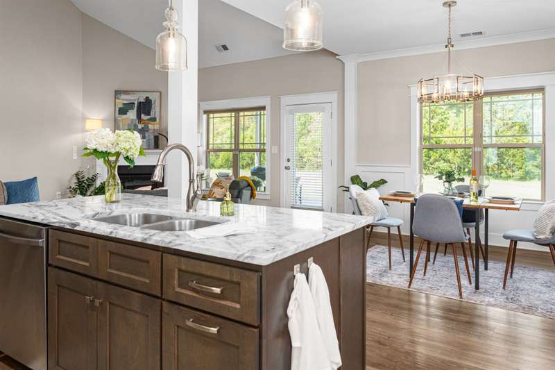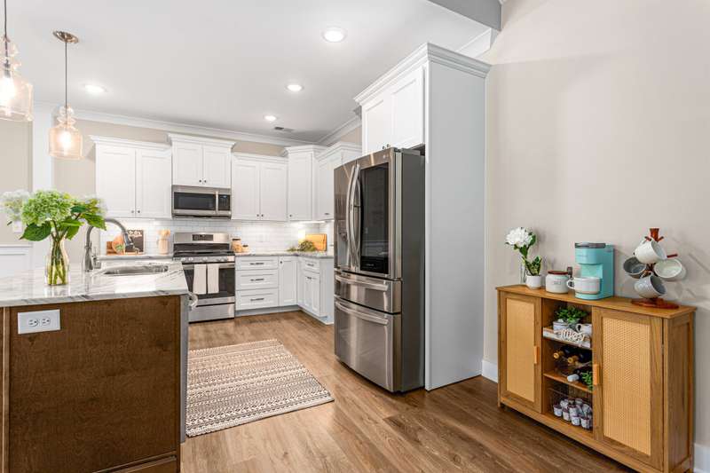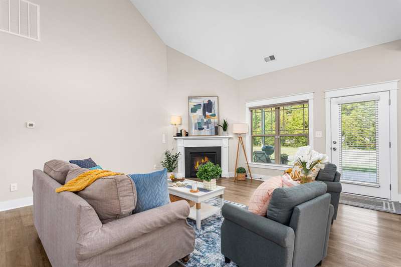 PRICED 20% BELOW AVERAGE new construction homes, this 4-year old property is not your typical townhome. Recently REFRESHED & MOVE-IN READY. Duplex style FEELS LIKE A SINGLE FAMILY HOME w/ its open & light-filled interior, high ceilings & country setting, yet it offers maintenance free living to enjoy a LOCK & GO LIFESTYLE. Conveniently located 1/2 mile from I-73, offering easy access to downtown Greensboro & the Triad. MAIN LEVEL PRIMARY bedroom, spacious ensuite bath w/ separate vanities & large tiled shower. Open & gracious living area w/ vaulted ceilings. COOK'S KITCHEN w/ gas range, huge island & plenty of counter space. 2nd bedroom & adjacent full bath on the main level. Laundry/mud room & pantry off kitchen. Upstairs offers an additional bedroom, full bath & walk-in attic space, offering possible expansion opportunity. Rear covered porch overlooks private backyard. Level lot, slab foundation & attached 2-car garage make it easy to get in & around the main level of this home.