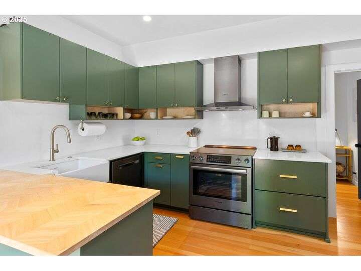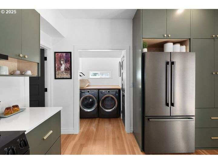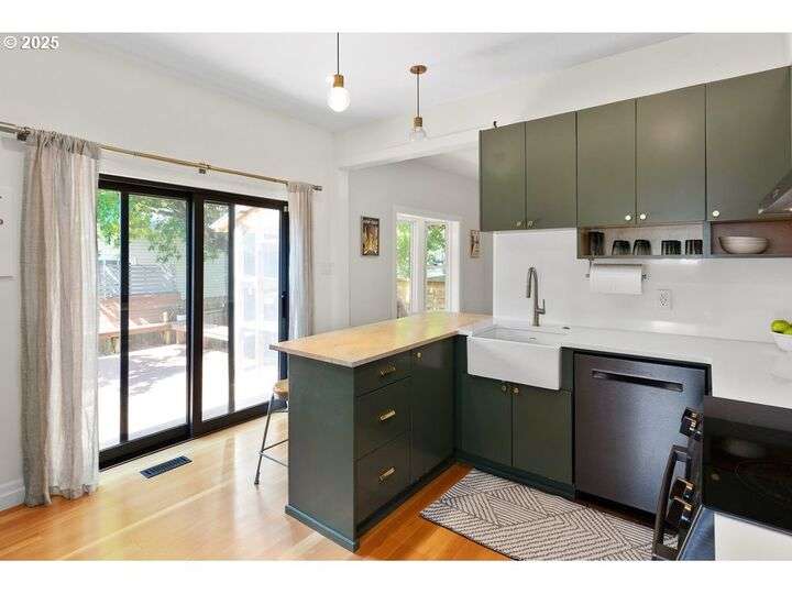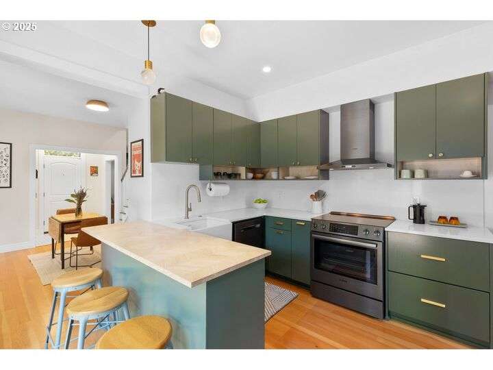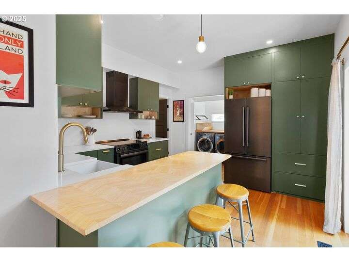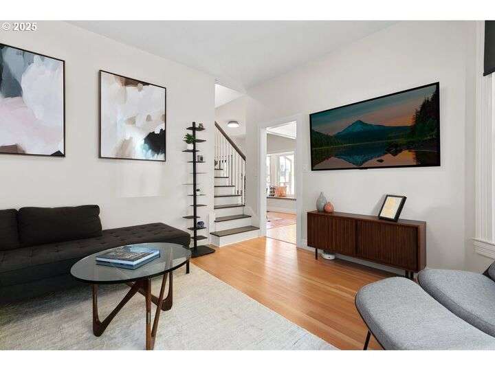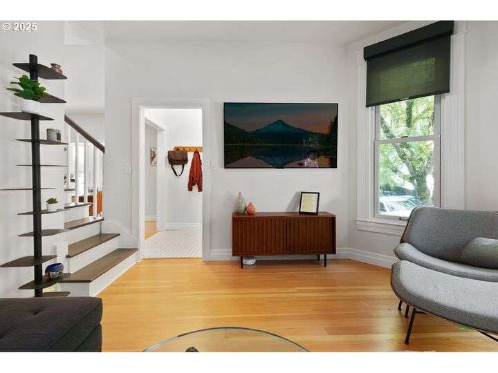 Vintage Victorian with Modern Elegance in the Heart of Buckman! Step into this beautifully updated Victorian home with thoughtfully designed living spaces and modern amenities. Located just minutes from downtown in Portland’s vibrant Buckman neighborhood, this home perfectly blends timeless character with modern updates. The spacious and sun-drenched living area features large picture windows and original charm, while the fully remodeled kitchen now shines with modern finishes including quartz counters, sleek cabinetry, and updated Bosch stainless appliances—ideal for home chefs and entertainers alike. The main floor bathroom and laundry area have also been completely renovated for comfort and functionality. Upstairs, you’ll find a generous primary suite with a massive walk-in closet and room to unwind. Step outside to a large back deck with built-in seating, perfect for outdoor dining or relaxing, plus a catio! The expansive backyard offers space for gardening and play. Abundant storage in the full basement and attached garage. Just a stone’s throw from top-rated restaurants, cafes, shops, and parks. This is quintessential SE Portland living—updated, stylish, and move-in ready. Don’t miss this rare gem! [Home Energy Score = 7. HES Report at https://rpt.greenbuildingregistry.com/hes/OR10241556]