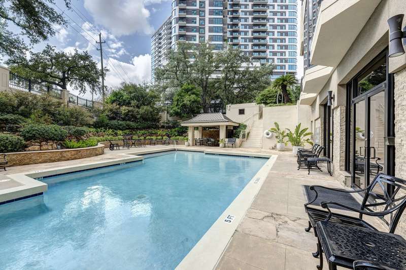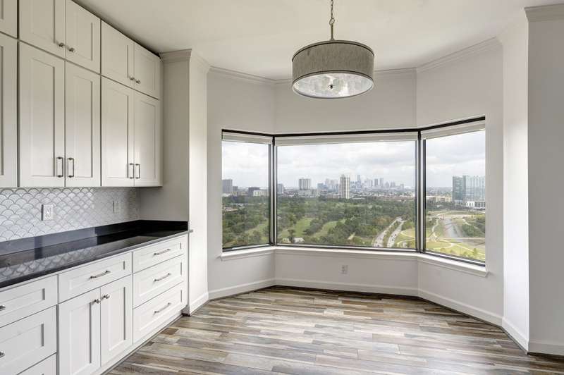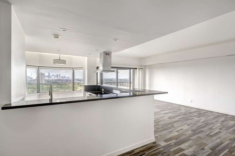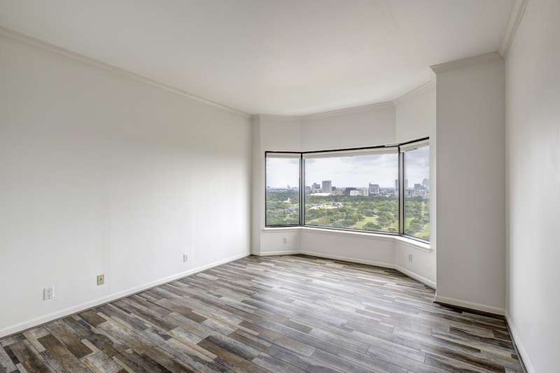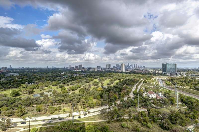 Experience elevated hi-rise luxury in this refined 2-bed - 2-bath residence at The Spires, showcasing breathtaking views of Hermann Park and the glittering downtown skyline. Thoughtfully upgraded, the home boasts a sophisticated kitchen adorned with sleek stainless-steel appliances, contemporary cabinetry, and abundant storage, all complemented by elegant luxury vinyl flooring that seamlessly extends throughout. Both bedrooms offer generous proportions and expansive windows that frame the home’s captivating panoramas. Ideally situated steps from Hermann Park and the Museum District, this residence affords effortless access to premier cultural attractions, lush green spaces, and fine conveniences of city living. A pinnacle of upscale comfort, The Spires provides full-service amenities including a guard-gated entrance, valet service, a heated pool, fitness center, tennis courts, and on-site management delivering an unparalleled blend of luxury, location, and lifestyle. Per Seller