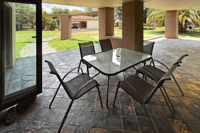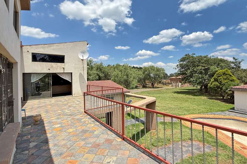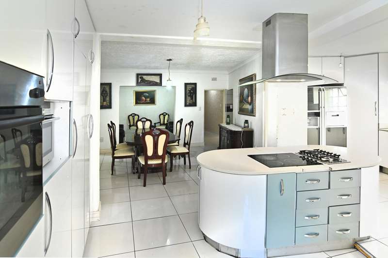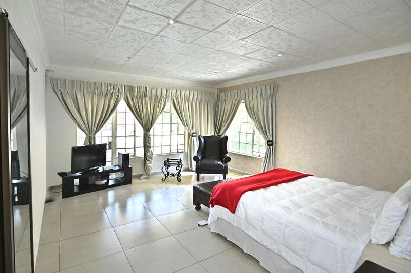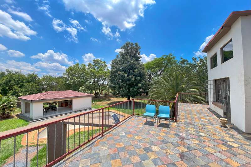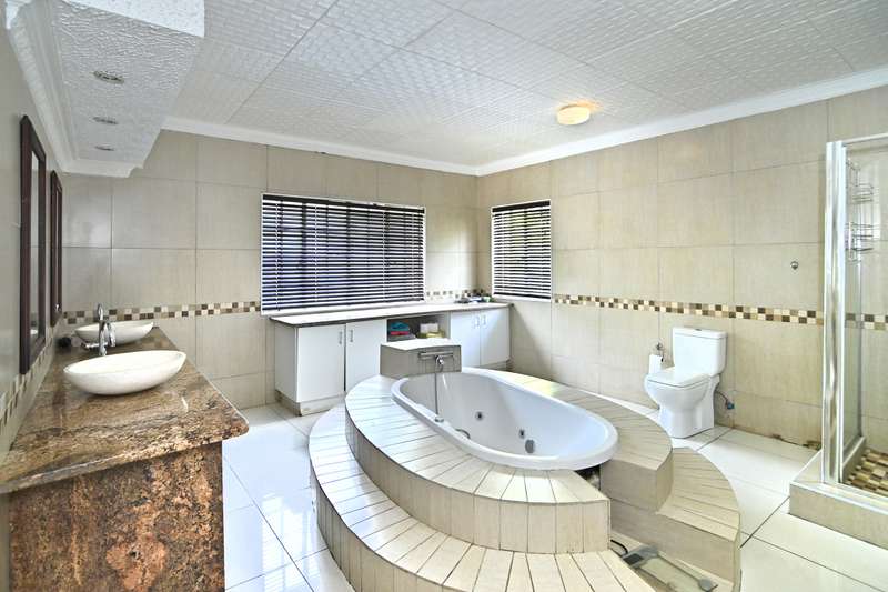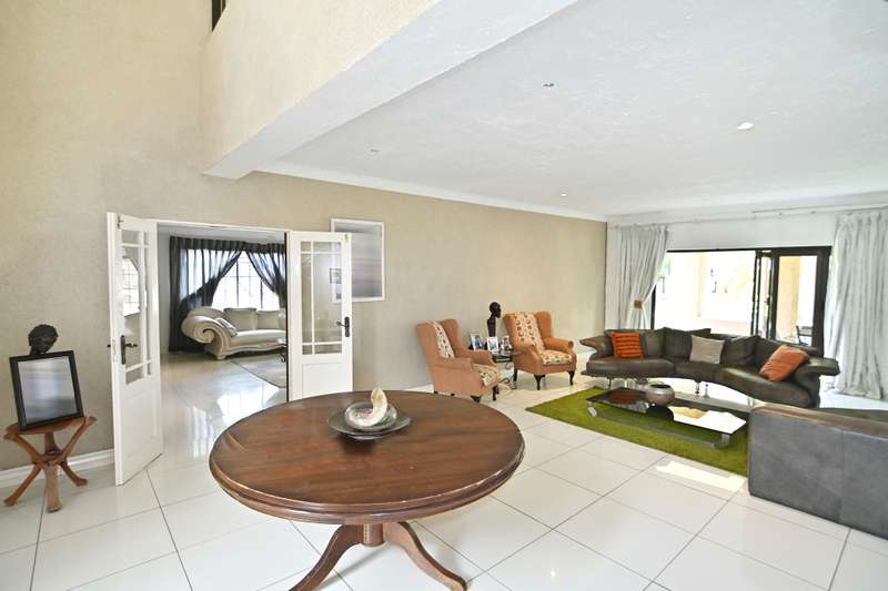 Hidden in the heart of President Park is this 6 bedroom home designed for entertainment and space. All the bedrooms have en-suite bathrooms and every room is double volume with high roofs keeping one cool in summer. 5 Living rooms including a study and a large upstairs pyjama lounge. 2 boreholes with 2x 25000L Jojo tanks, pressure pump with reverse osmosis filtration for own potable water supply and a solar geyser. Prepaid Eskom electricity and CCTV ready. The home requires some maintenance and the pool will need to be re-sealed. All defects/issues are fully disclosed by the Seller in the PPRA Condition Report Selling "as is" aka "voetstoots".