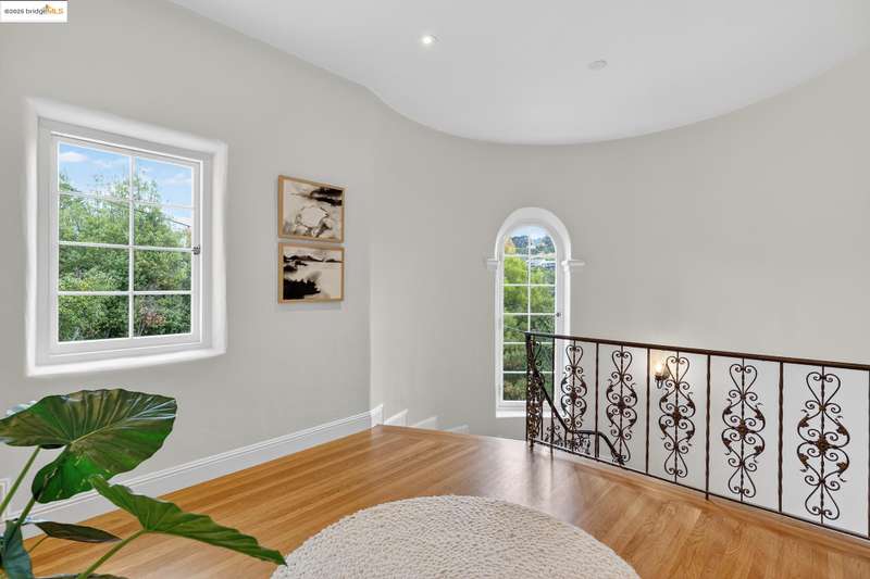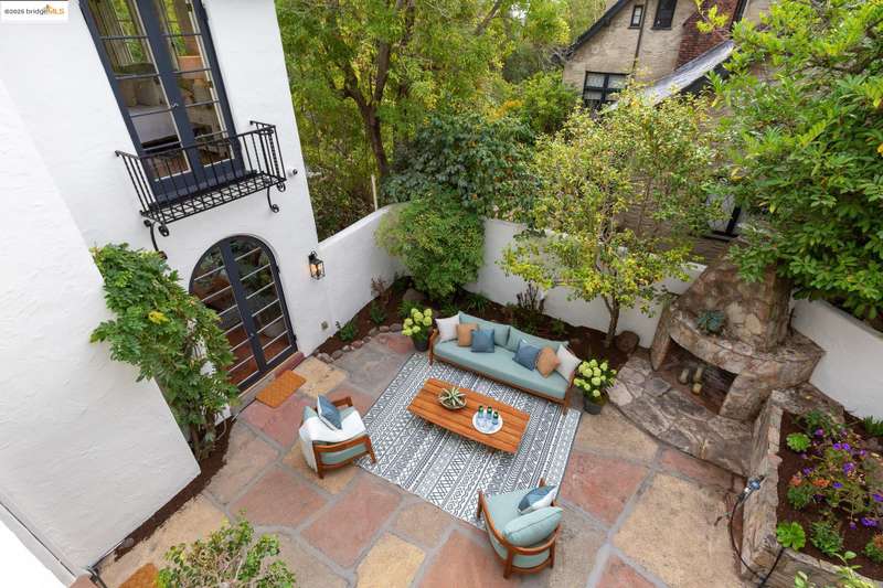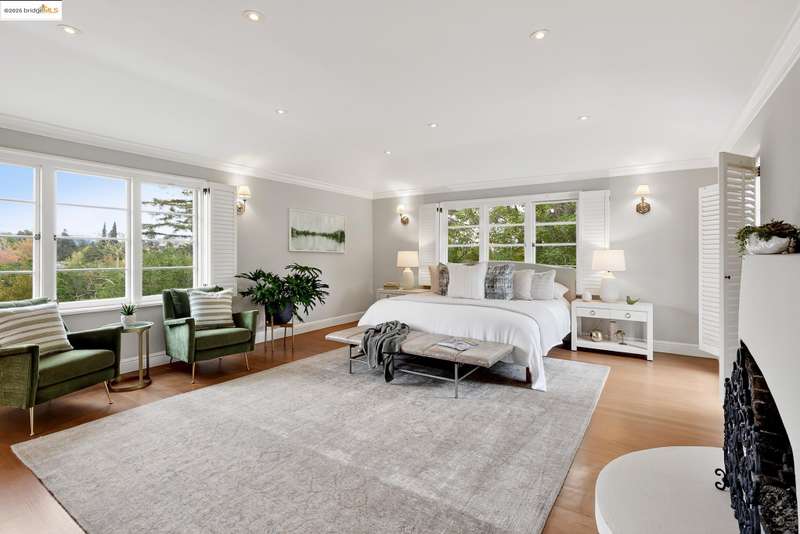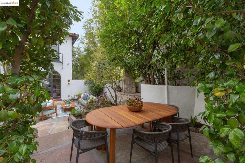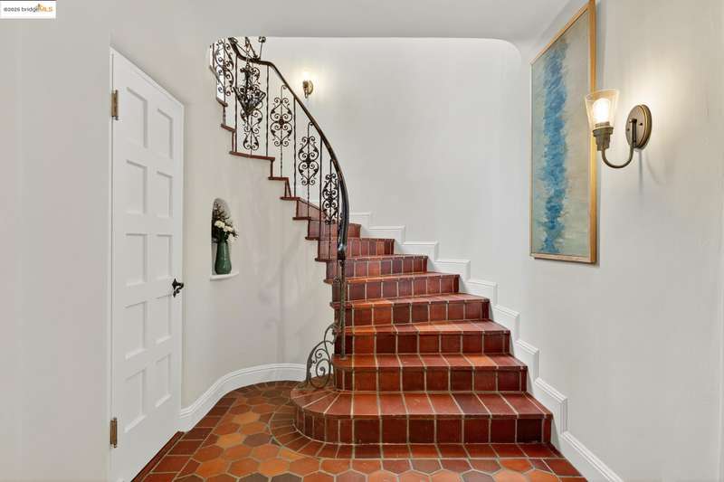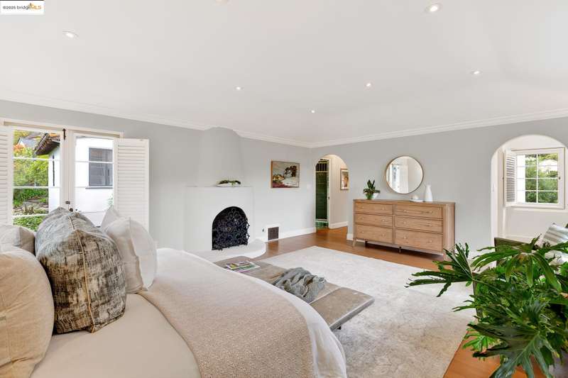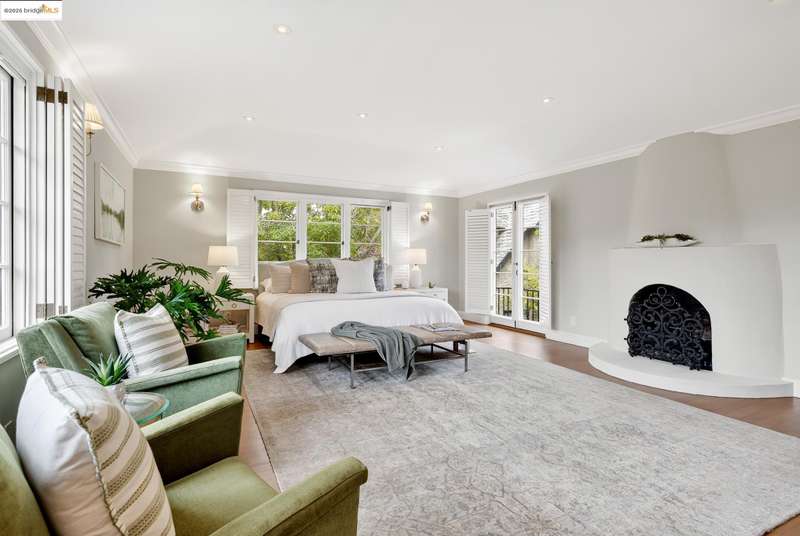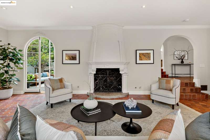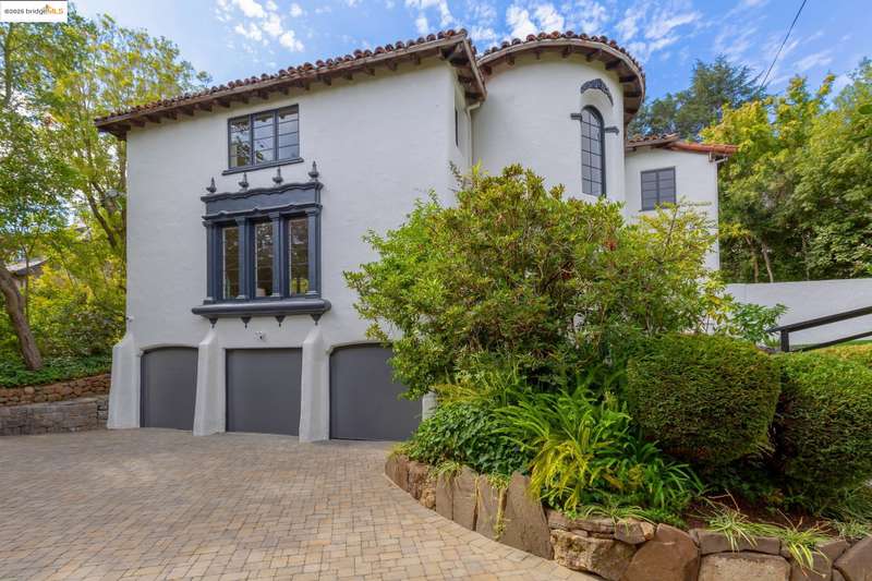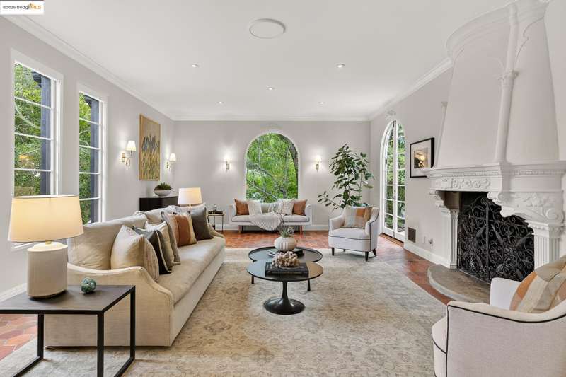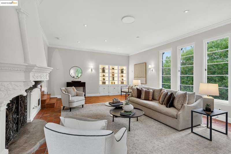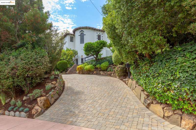Tucked at the end of a private drive, this exquisite Mediterranean blends classic craftsmanship with modern luxury. Designed by renowned architects Newsom & Newsom, the property offers 7BR, 5.5BA with updated high-end finishes throughout. Enter the home to discover a graceful entry with dramatic curved staircase and custom-forged railing. The grand living room impresses with soaring ceilings, signature arched window and exquisite fireplace. The generous dining room is ideal for entertaining. The chef’s eat-in kitchen will please with its 48" Sub-Zero fridge/freezer, Wolf 6-burner range and Miele oven/warming drawer. The adjacent family room opens to gardens and patios for outdoor dining via French doors. A main level guest bedroom, 1.5 baths, fitness space, and laundry await. Upstairs you'll discover 6 bedrooms and 3 baths including a luxurious primary suite with fireplace, dressing area, walk-in closet, and spa bath with soaking tub, double vanity, and shower. A bath, plus room, bonus space (ideal for wine cellar), 2nd laundry, and access to the 3-car garage are downstairs. Outdoor spaces include terraced gardens, level lawn, tranquil pond with waterfall, and multiple patios perfect for entertaining. Close to top schools, parks, Lakeshore and Montclair shops and dining.