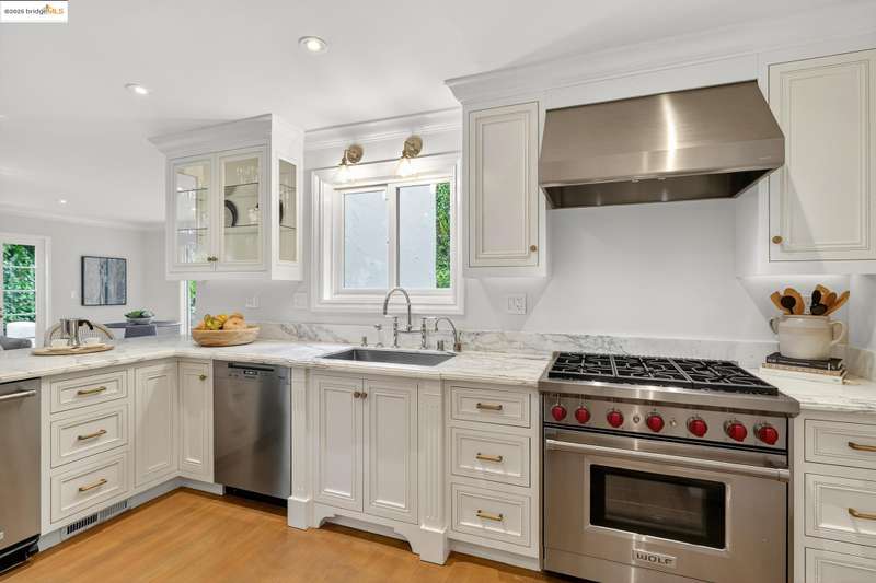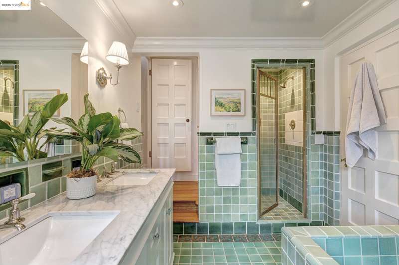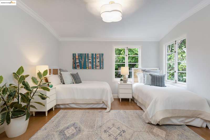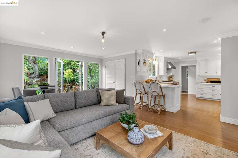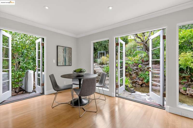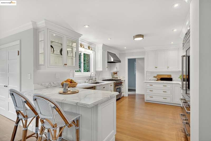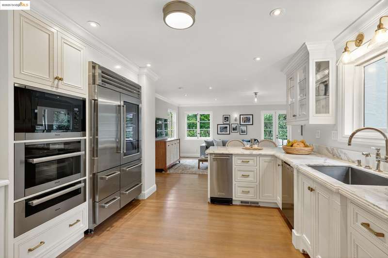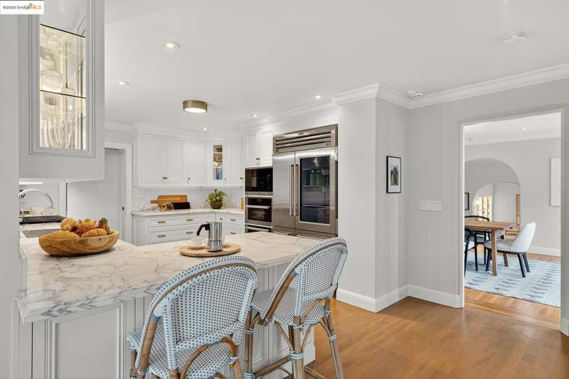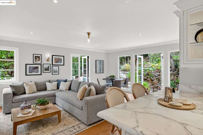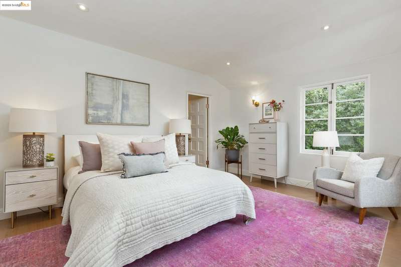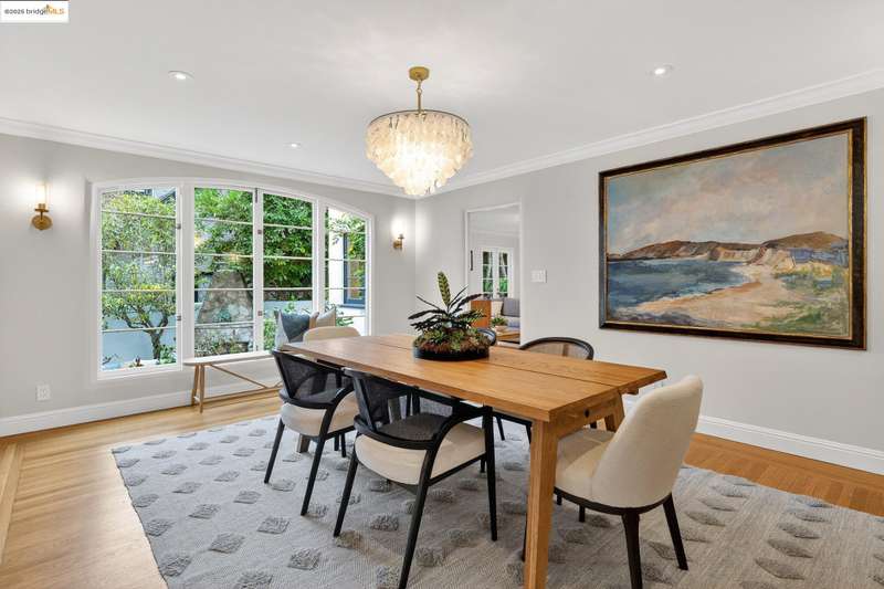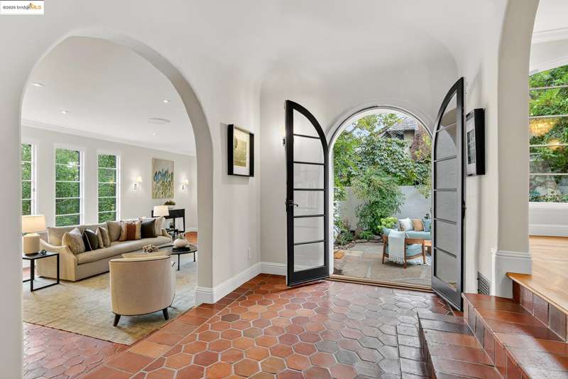 Tucked at the end of a private drive, this exquisite Mediterranean blends classic craftsmanship with modern luxury. Designed by renowned architects Newsom & Newsom, the property offers 7BR, 5.5BA with updated high-end finishes throughout. Enter the home to discover a graceful entry with dramatic curved staircase and custom-forged railing. The grand living room impresses with soaring ceilings, signature arched window and exquisite fireplace. The generous dining room is ideal for entertaining. The chef’s eat-in kitchen will please with its 48" Sub-Zero fridge/freezer, Wolf 6-burner range and Miele oven/warming drawer. The adjacent family room opens to gardens and patios for outdoor dining via French doors. A main level guest bedroom, 1.5 baths, fitness space, and laundry await. Upstairs you'll discover 6 bedrooms and 3 baths including a luxurious primary suite with fireplace, dressing area, walk-in closet, and spa bath with soaking tub, double vanity, and shower. A bath, plus room, bonus space (ideal for wine cellar), 2nd laundry, and access to the 3-car garage are downstairs. Outdoor spaces include terraced gardens, level lawn, tranquil pond with waterfall, and multiple patios perfect for entertaining. Close to top schools, parks, Lakeshore and Montclair shops and dining.