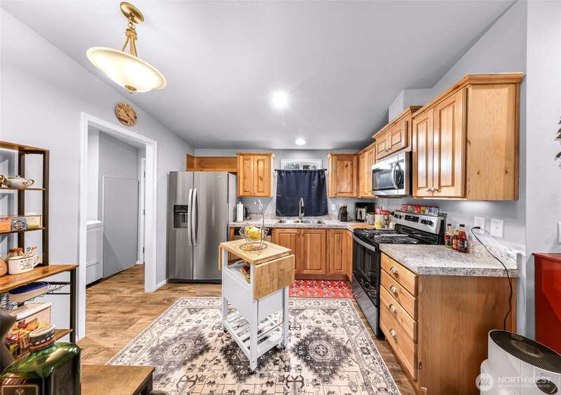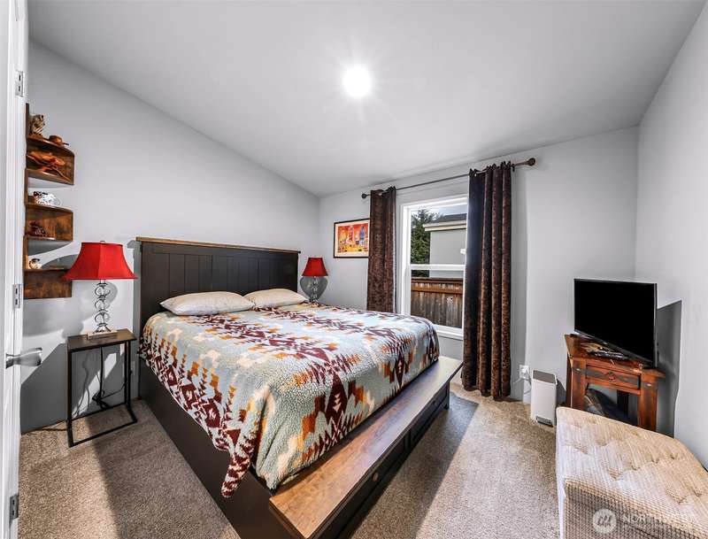 Beautifully maintained and move-in ready single level home! Built in 2022, this like-new home sits at the end of a quiet cul-de-sac. The open floor plan offers three bedrooms, 1.75 baths, vaulted ceilings, and abundant natural light. The primary suite is privately situated on one side with its own bath, while two additional bedrooms and a full bath are on the other. Recent upgrades include a new Whirlpool side-by-side refrigerator, outdoor lighting, a large covered deck, fully fenced yard, thoughtful landscaping, and a 10' x 7.5' storage shed. Conveniently located near downtown Ferndale and only 12 minutes to Bellingham. Enjoy easy living and peace of mind with years of low-maintenance comfort ahead.