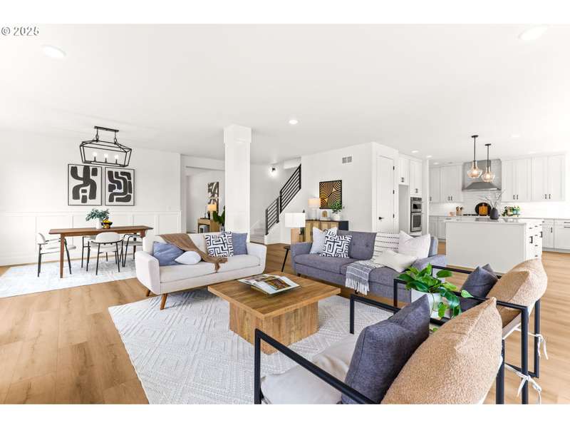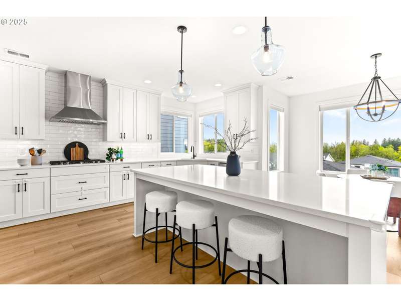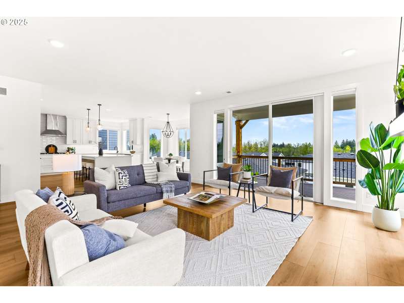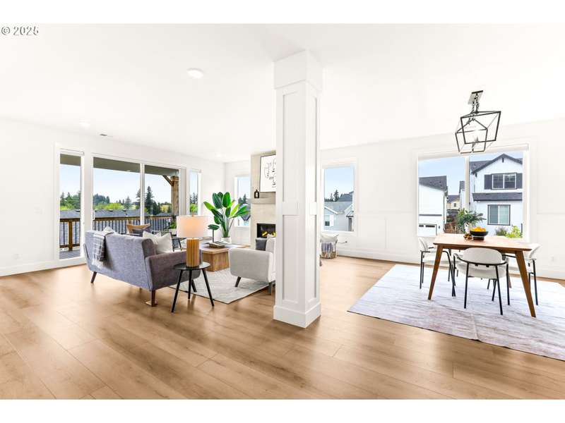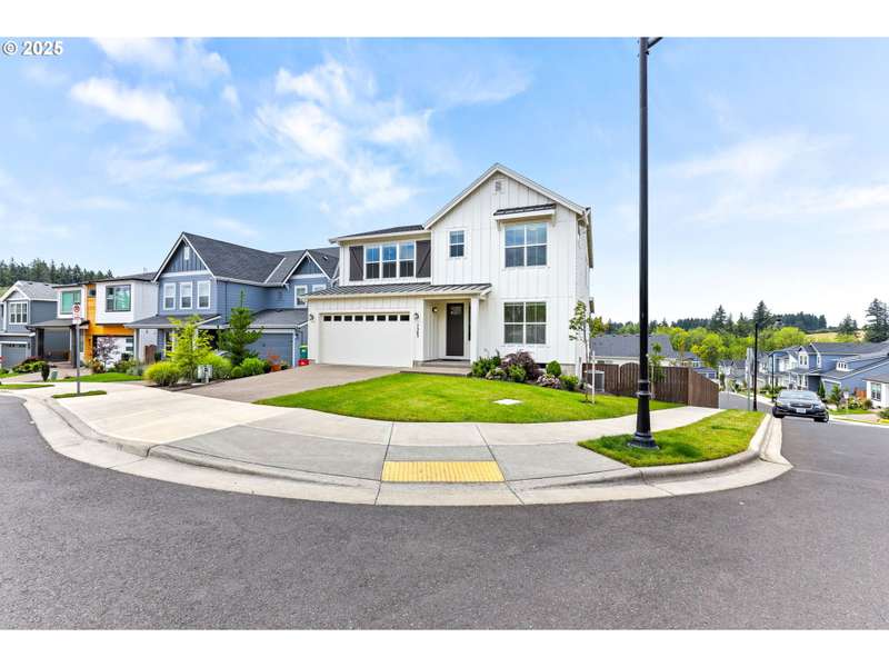 Beautiful Farmhouse Style Home sitting on a Corner lot, and ready to go! Sellers have lived here since 2023, and due to a job transfer, their Dream Ho. Main level is graced with Engineered Wood Floors and farther into the Great Room,you are greeted with a Wall of Windows, Formal Dining Area, Nook Area, and a Chef Kitchen with Quartz Counters, and appliances. Perfect for enjoying your Toasty Fireplace, and chatting with friends in the kitchen gathering around the oversized Island. Bedroom and Full Bath is on the Main Floor as well. Upstairs is Four more Bedrooms Including the Primary Suite with Walk-In Closet, Full Tile Walk-In Shower, and Soak Tub. There's also a Bonus Room on this level for Kids to enjoy.Yes, and there is a Full Basement as well, with a Bedroom, Full Bath, and a Second Family Room Area for Overnight Guests. Multilevel Decks Grace the back of this home along with Low Maintenance Imitation Turf, and Custom Expansive Stone Patio Area Including Benches. Perfect for Enjoying the wonderful Summer Weather. Top Schools, Great Community, and shopping nearby makes this feel like home.
