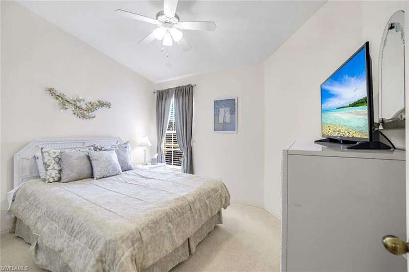 Wonderful lakefront condo with soaring ceilings, sparkling lake views and colorful sunsets from your own lanai. This meticulously maintained home is spacious and open with a split bedroom floor plan. The kitchen has great storage, large pantry and stainless steel appliances. Sip your morning coffee in the breakfast nook and revel in the beautiful sunrise. The large great room has dining and seating areas and opens up the the oversized lanai. The owner's suite encompasses a large walk-in closet, an extra storage closet and dual sinks. A separate wing has your guest enjoying privacy. The spacious lanai is enjoyed nightly while sipping cocktails and watching the sun set. This is a great location within Bermuda Greens with a short walk to the community center as well as to the bocce court. Get involved with social gatherings or spend quiet days basking by the pool. Bermuda Greens is located in Imperial which is a 5 minute drive to Wiggins state park on the beach. Close to Mercato and a plethora of dining/shopping options. Located in the hub of all North Naples has to offer and under 30 minutes to SW Florida regional airport.