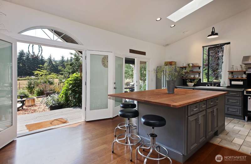 Welcome to your quintessential Island farmhouse where casual elegance and rustic charm weave natural beauty throughout your homestead, inside & out. Located off of one of South Whidbey's favorite country roads, the combination of pasture, gardens, and a barn provides the perfect place to roll out your island dreams. An open floor plan with vaulted ceilings, French doors, plenty of big windows, in addition to oak and locally milled fir floors, creates an inspiring sense of warmth & light. A generous chef's kitchen w/ doors that open to your inviting & utilitarian covered porch expands your living area to your private front yard oasis. Finished lower level with a separate entry provides flexible living space. Welcome to Whidbey, Welcome Home!