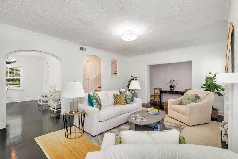 This timeless 1925 Mediterranean house is perfectly situated in Prospect Park offering a quiet, peaceful setting in an established and coveted neighborhood. The main house has 4 bedrooms, 4.5 renovated baths, formal living room, formal dining room, new kitchen, family room, classic hardwood and tile floors, and washer/dryer located both upstairs and down for added convenience. Host your guests or extended family in one of 2 separate casitas! The pool house boasts a bedroom, living area and FULL kitchen- ideal for inlaws or tenants. The other guest quarter features a 1 bedroom suite over the 2 car garage. Both areas are a rarity in accommodation and make this property a highly desirable compound with options galore! A large pool and spa extend the patio space and make this a forever home