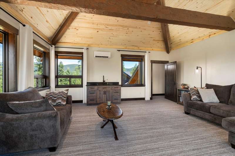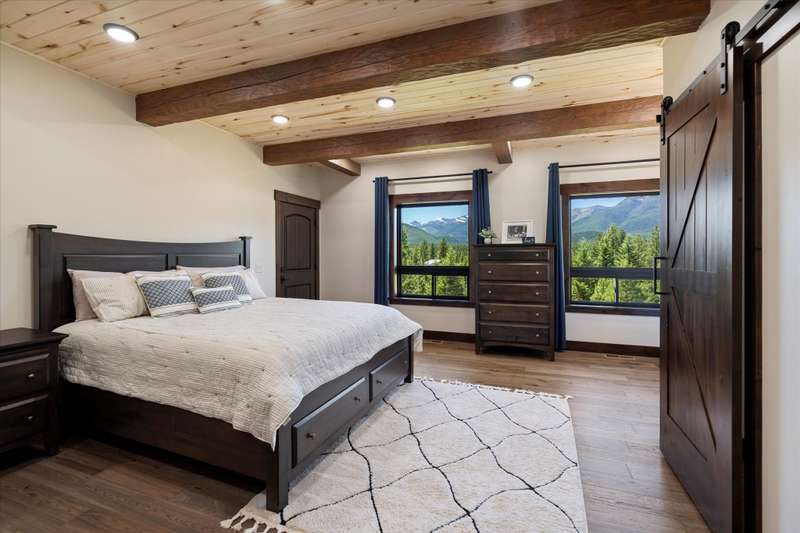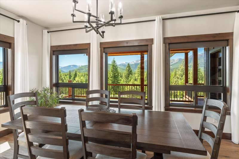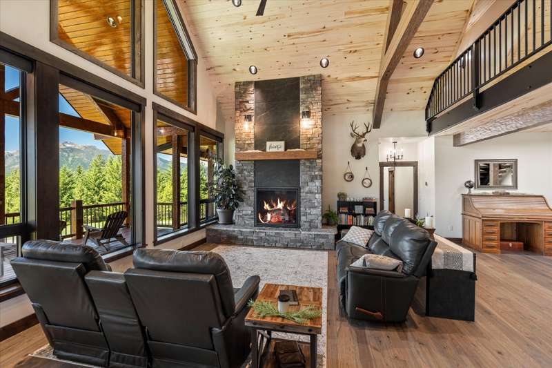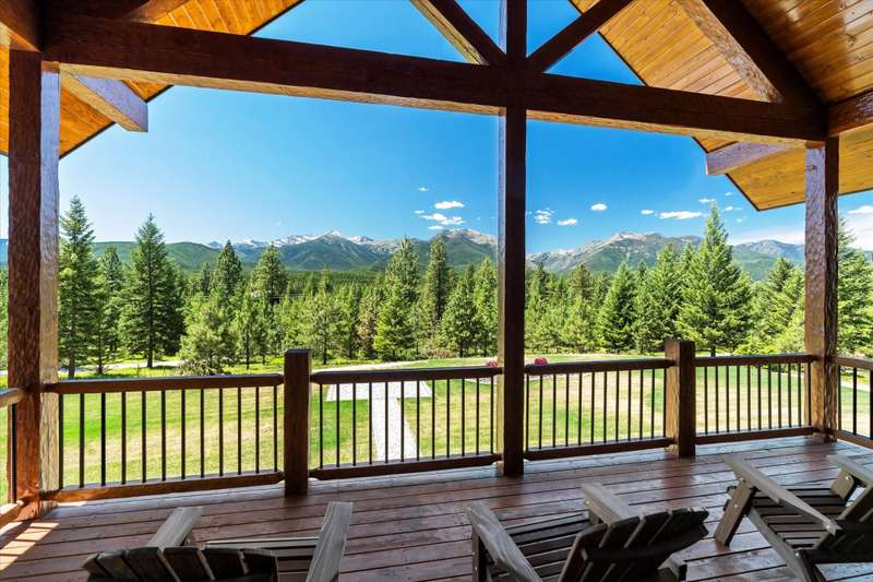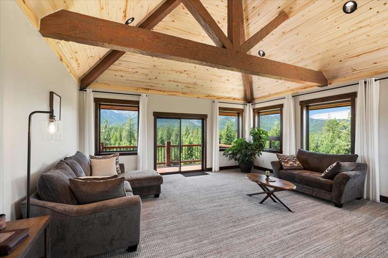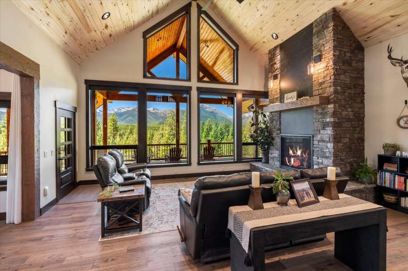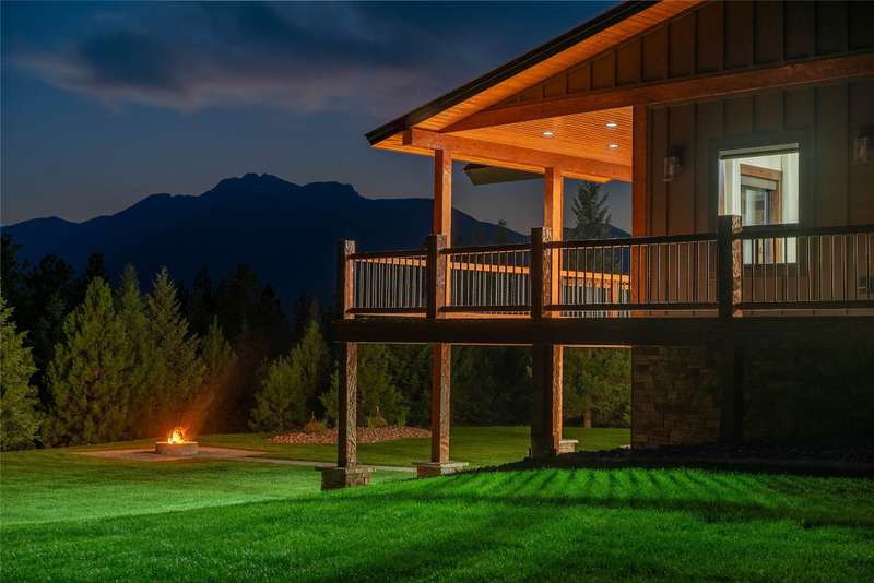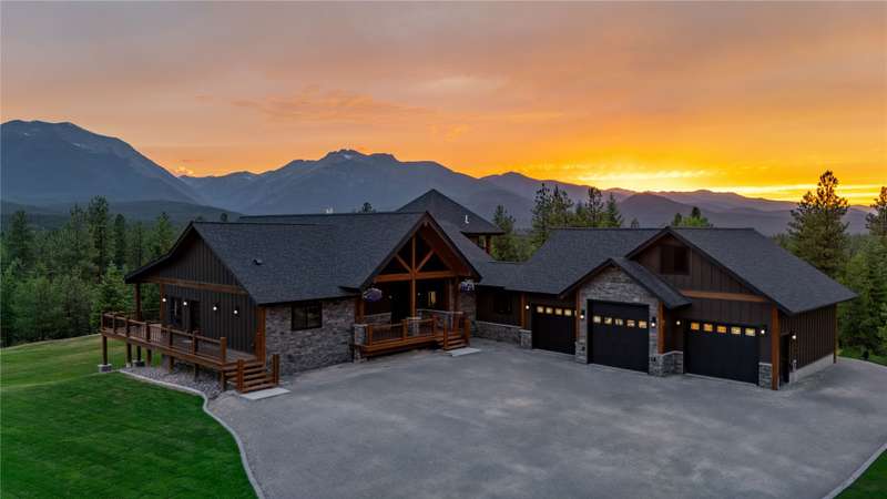 Get ready to be mesmerized by the breathtaking views from this estate in NW Montana which includes two homes and almost 30 acres of forested wilderness. The main home, finished in 2024, boasts over 5500 SF of rustic luxury, featuring hand-peeled beams, rock fireplace, custom iron railings, aspen T&G ceilings, rich hickory flooring, and expansive windows showcasing the towering mountains. The chef's kitchen is a dream, equipped with luxury Italian appliances, hidden walk-in pantry, gleaming quartz countertops, custom alder cabinetry, and a built-in Miele espresso machine. The main floor primary suite includes a jetted tub positioned beneath windows to take full advantage of the surrounding views and privacy. Additionally, the main floor comprises an additional bedroom, full bath, mudroom, and laundry, as well as an 1100+ SF wrap-around deck. Descending to the lower level, a spacious family room awaits, complete with double doors leading to the covered patio, lawn, and firepit area. There's a second, well-appointed kitchen, two more bedrooms, two bathrooms, a utility room, and in true Montana style, even a game-processing/canning room. If that's not enough, walk to the top level of this house to the bonus space with a wet bar, built with windows all around to experience the breathtaking view. Finally, this gorgeous home has a 1250 sq. ft. three-car attached garage with large overhead doors, as well as a 350 sq. ft. unfinished storage area above. This estate property also contains a second home built in 2019. This darling 1150 sq. ft. two-bedroom, one-bath home with a cozy woodstove and an oversized attached two-car garage is currently being used as a successful short-term rental. Between the two homes, you will find a fenced 130'x55' garden with blueberries, raspberries, raised garden beds, and an orchard containing apple, cherry, pear, and peach trees. There is a backup generator installed that is large enough to power both houses. Feel like you are on top of the world on this Montana estate yet enjoy easy year-round access just minutes from all the conveniences you need. There are plenty of recreation opportunities nearby as well, with the Cabinet Mountain Wilderness, Lake Koocanusa, Kootenai Falls, Ross Creek Cedars, and even Glacier National Park within easy driving distance.