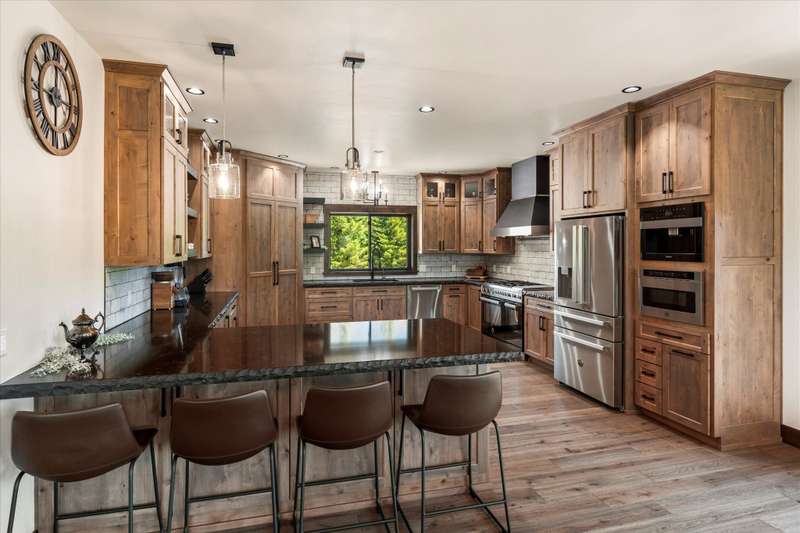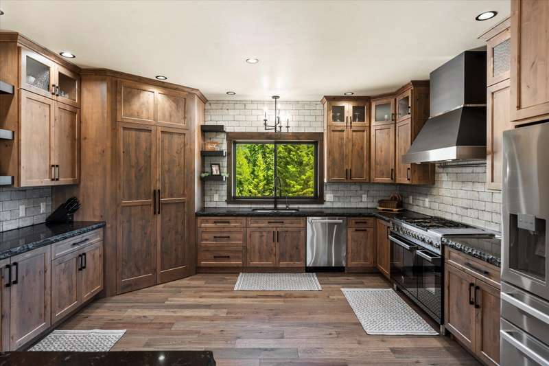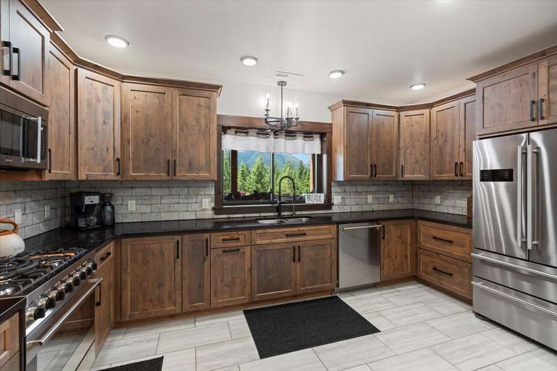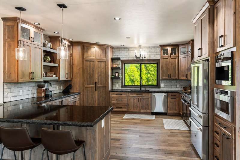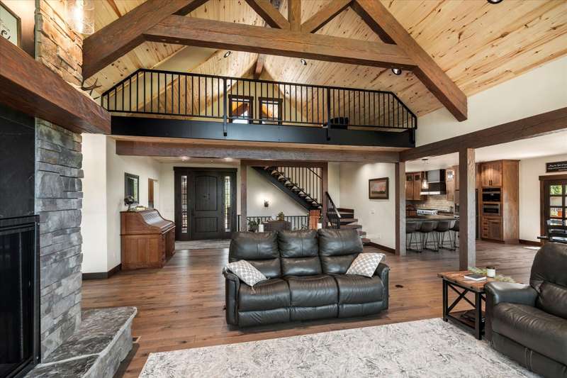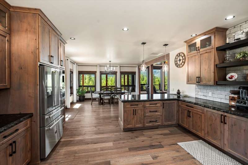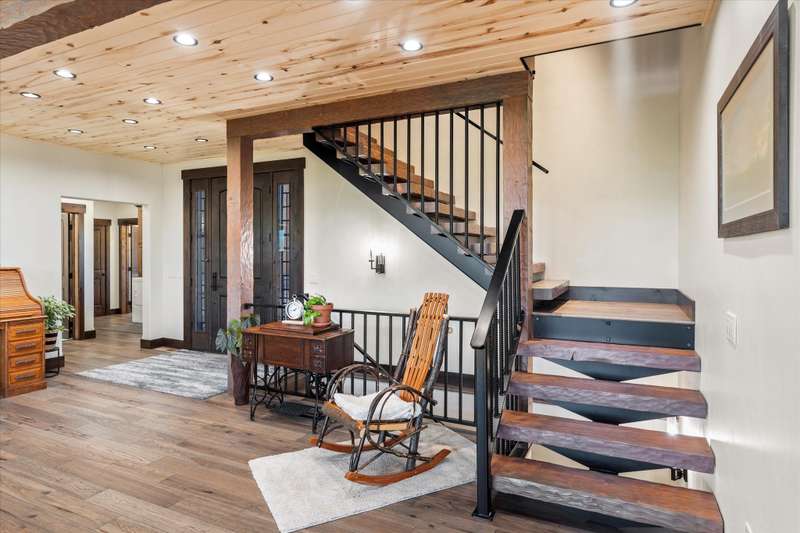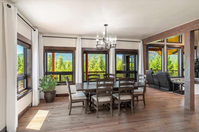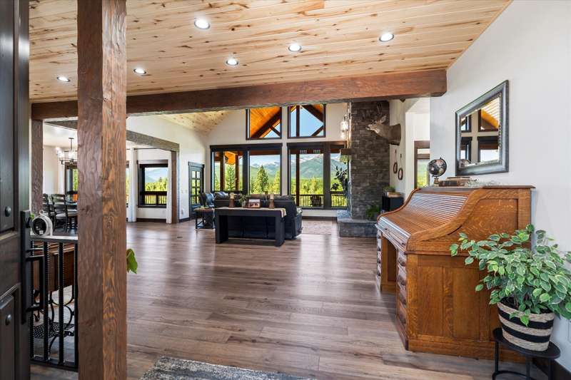 Get ready to be mesmerized by the breathtaking views from this estate in NW Montana which includes two homes and almost 30 acres of forested wilderness. The main home, finished in 2024, boasts over 5500 SF of rustic luxury, featuring hand-peeled beams, rock fireplace, custom iron railings, aspen T&G ceilings, rich hickory flooring, and expansive windows showcasing the towering mountains. The chef's kitchen is a dream, equipped with luxury Italian appliances, hidden walk-in pantry, gleaming quartz countertops, custom alder cabinetry, and a built-in Miele espresso machine. The main floor primary suite includes a jetted tub positioned beneath windows to take full advantage of the surrounding views and privacy. Additionally, the main floor comprises an additional bedroom, full bath, mudroom, and laundry, as well as an 1100+ SF wrap-around deck. Descending to the lower level, a spacious family room awaits, complete with double doors leading to the covered patio, lawn, and firepit area. There's a second, well-appointed kitchen, two more bedrooms, two bathrooms, a utility room, and in true Montana style, even a game-processing/canning room. If that's not enough, walk to the top level of this house to the bonus space with a wet bar, built with windows all around to experience the breathtaking view. Finally, this gorgeous home has a 1250 sq. ft. three-car attached garage with large overhead doors, as well as a 350 sq. ft. unfinished storage area above. This estate property also contains a second home built in 2019. This darling 1150 sq. ft. two-bedroom, one-bath home with a cozy woodstove and an oversized attached two-car garage is currently being used as a successful short-term rental. Between the two homes, you will find a fenced 130'x55' garden with blueberries, raspberries, raised garden beds, and an orchard containing apple, cherry, pear, and peach trees. There is a backup generator installed that is large enough to power both houses. Feel like you are on top of the world on this Montana estate yet enjoy easy year-round access just minutes from all the conveniences you need. There are plenty of recreation opportunities nearby as well, with the Cabinet Mountain Wilderness, Lake Koocanusa, Kootenai Falls, Ross Creek Cedars, and even Glacier National Park within easy driving distance.
