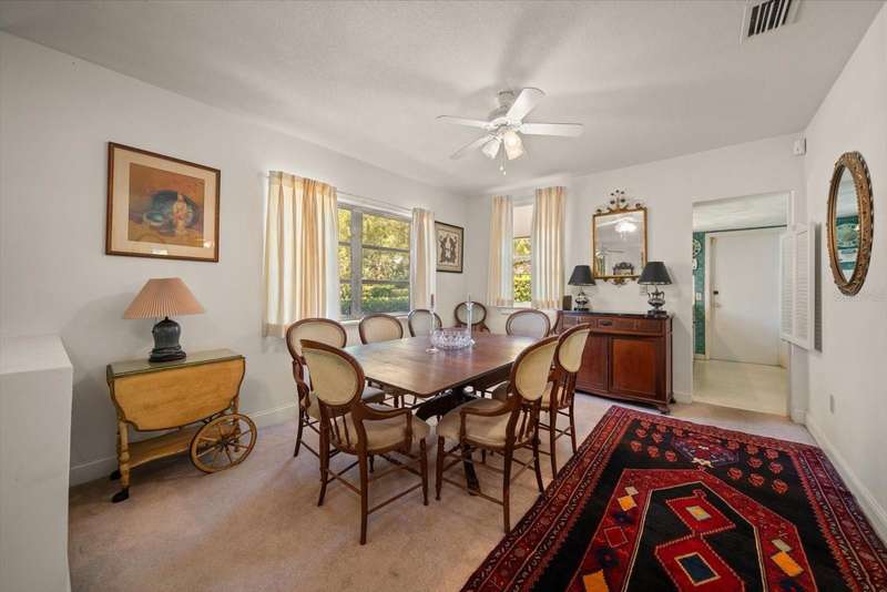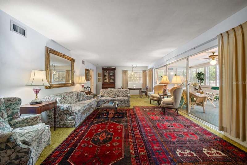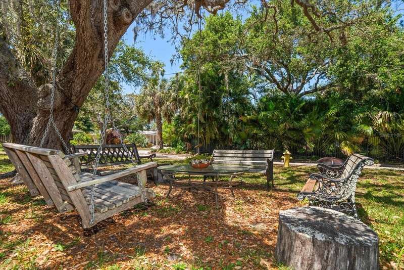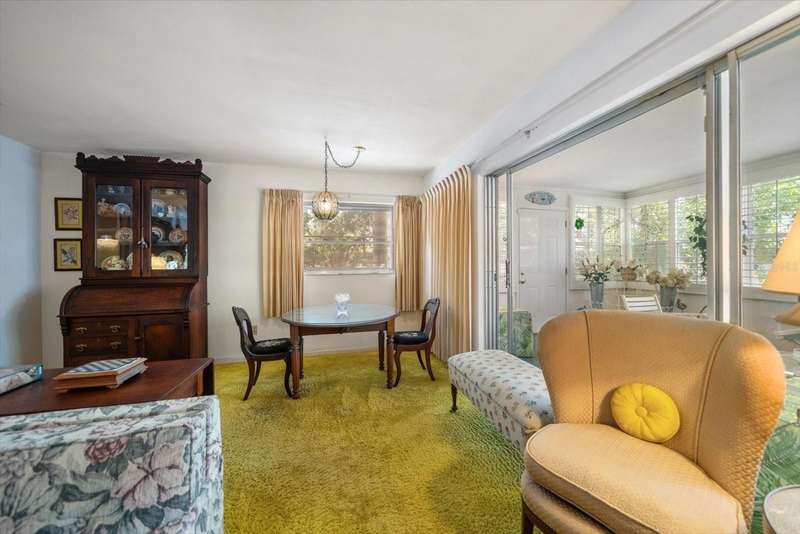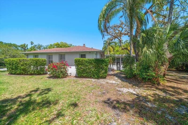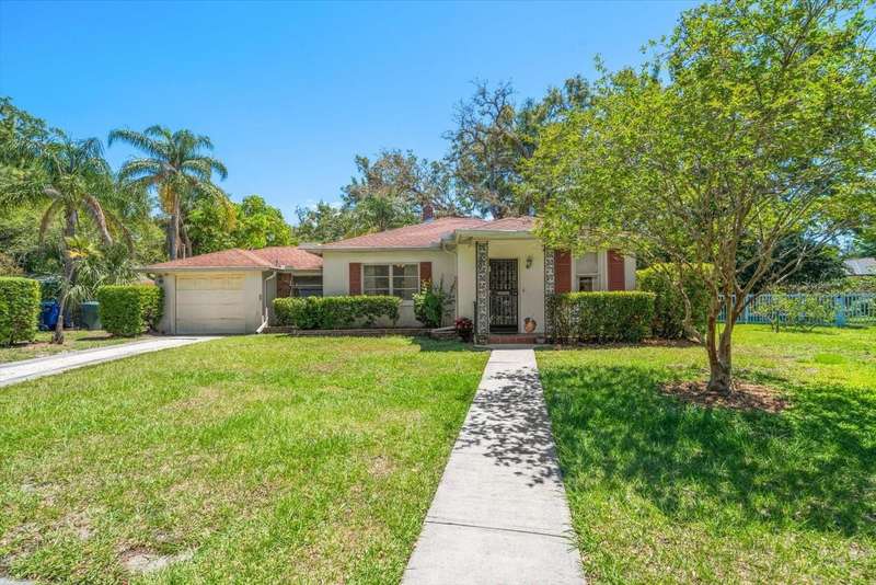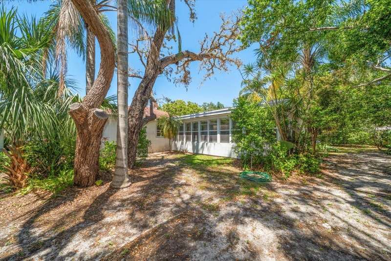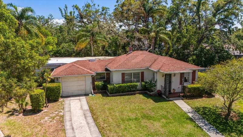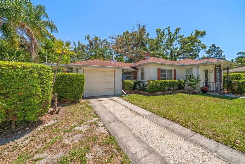 Under contract-accepting backup offers. Discover a rare gem in one of Dunedin’s most coveted neighborhoods—a vintage 2-bedroom, 2-bath bungalow nestled on an oversized lot in a serene, park-like setting. Located on a quiet circle, this property offers a peaceful retreat just steps from the vibrant energy of downtown. Imagine strolling to the waterfront, browsing unique boutiques, sampling local fare at charming restaurants, stopping by the library to pick up a book, or catching a game at the nearby Toronto Blue Jays stadium. With Edgewater Park and the Pinellas Trail just around the corner, outdoor adventures await, and the golf cart-friendly streets make every errand feel like a joyride. Inside, this home offers timeless charm and endless potential. You'll find formal living and dining rooms perfect for entertaining, a spacious family room for laid-back gatherings, a flexible den with closet that can be your office, creative studio or guest room, and a bright Florida Room that brings the verdant foliage of the outdoors in. Whether you're dreaming of restoring its vintage charm or designing a custom build from the ground up, this special property is ready to be your canvas.
