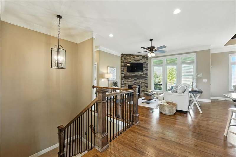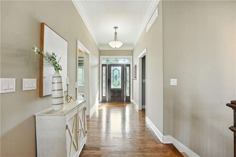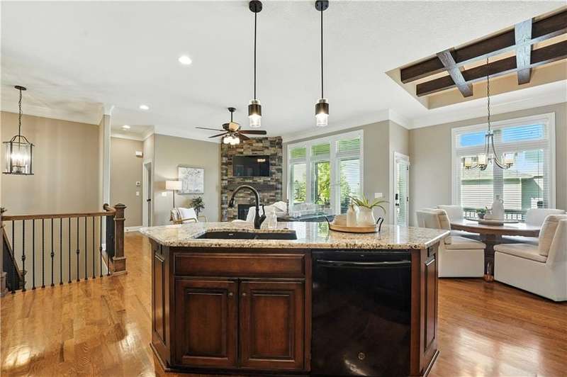 Immaculate Reverse 1.5 Story in the highly desirable Canyon Creek Highlands! This home offers an inviting open floor plan with gleaming hardwood floors, a stylish kitchen with stainless steel appliances and granite countertops, and a spacious great room filled with natural light. The main level features a generous primary suite along with an additional bedroom thats perfect for guests or a home office. The daylight lower level is designed for entertaining, complete with a large rec room, impressive full bar, two additional bedrooms, and a full bath. Step outside to the covered deck, ideal for morning coffee or evening gatherings. Residents of Canyon Creek Highlands enjoy a community pool, extensive trail system, and the top-rated Olathe School District.