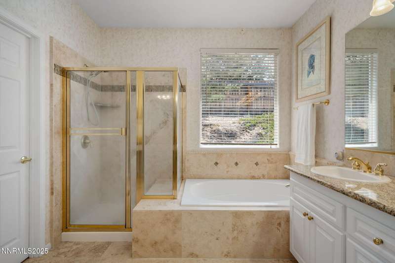 A single story home in the Sundance neighborhood of Arrowcreek. Backing to open space with views of the eastern slopes. The seller is the original owner and gently lived in this former model home. The office could be the third bedroom. Certified by Energy Fit Nevada and given a Home Performance rating by Energy Star. Energy saving upgrades were Solar Water Heater, Floor/Foundation Insulation, Lighting, Air Sealing, KOOl blanket in attic, NEST thermostat, KOOL wrap at H2O heater. EPS365 air filtration system. You'll enjoy the air filtration Eco Probiotic System 365 for healthy & balanced air quality. The recirculation pump provides warm water at the tap at all times. Experience life in the prestigious guarded/gated community of Arrowcreek. The Club at Arrowcreek has two championship golf courses and a fantastic country club experience for the avid golfers and social members alike, Resort style amenities including Practice Facilities & Instruction, the Pool, Men's & Ladies Clubs, Fitness center, Pickle & Bocce Ball, Member dining. HOA dues include Residence center: with gym, three out door pools, (family, kids and lap pools) spa, tennis/pickle ball courts, basketball courts, playground and grass playing field. There are miles of paved walking paths in the community or jump on a creek and take a journey on a single track lined with quaking aspens up into the Galena Forest. The massive trail system in the Mt. Rose wilderness area seems endless and is footsteps away. 40 minutes to the shore of Lake Tahoe and just 20 minutes from the Mt Rose Ski Resort. Trendy shopping is fifteen minutes away at the Sierra Summit mall.