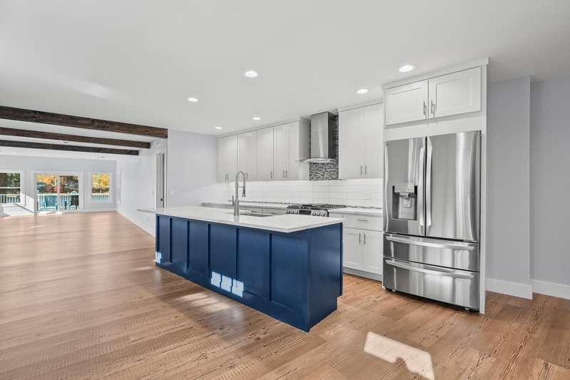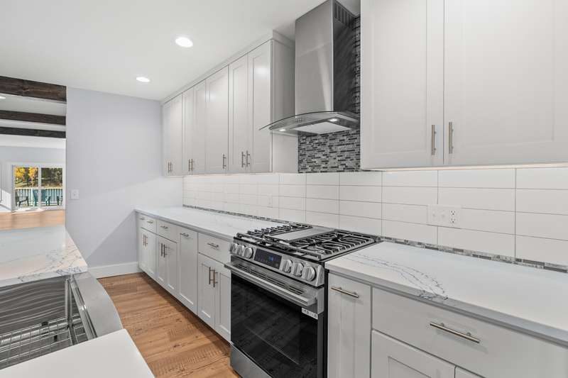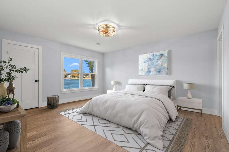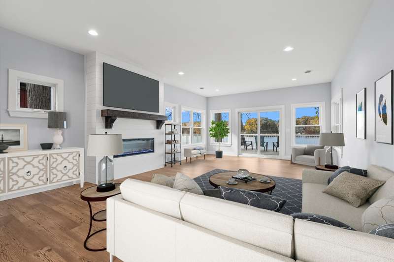 Welcome to your dream lakefront retreat on Beautiful Hemlock Lake in Marcellus. This stunning home has been completely transformed from top to bottom, expanding from its original 740 SF into a spacious 2,200 SF sanctuary. Every inch has been built with craftsmanship and modern style - with the only piece of the original home remaining is a small section of crawlspace. The home features 4 bedrooms and 2 full baths, highlighted by a primary suite overlooking the lake with a luxurious ensuite bathroom - complete with double sinks, a walk-in tiled shower and a spacious closet system. The designer kitchen is a showstopper boasting white cabinetry paired with a navy blue island, both topped with custom solid surface countertops, stainless steel appliances and a chic stainless steel farmhouse sink The large dining area is beautifully accented with faux wood ceiling beams. the living room features a beautiful shiplap fireplace w/an electric insert, and a mantel designed for mounting your T.V. Addl features include a pantry/laundry room, conveniently located off the kitchen, 3 spacious addl BR's, and a stylish family bath. Everything is brand new with this home - electrical (200 amp service) , plumbing, well, septic, concrete driveway, landscaping and fresh sod. Note....A second parcel, directly across the street is included with the sale of this home.