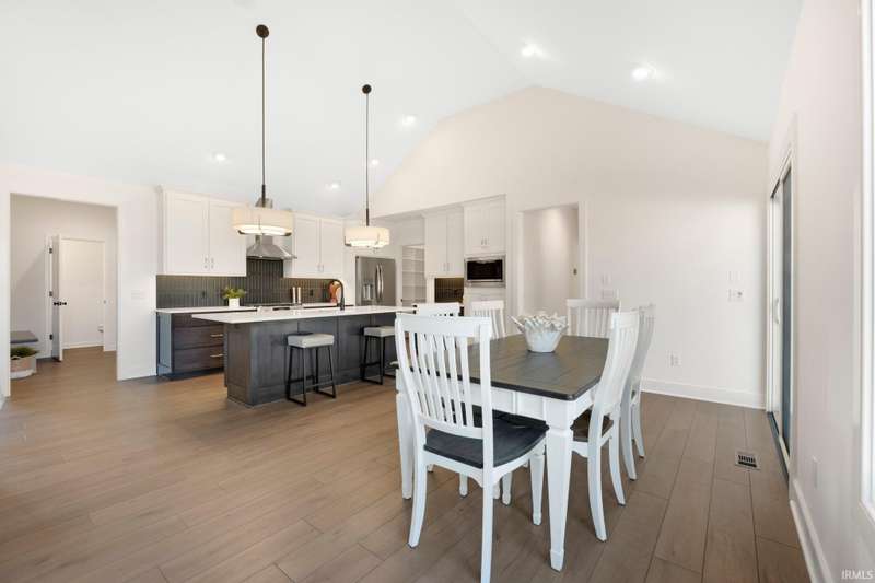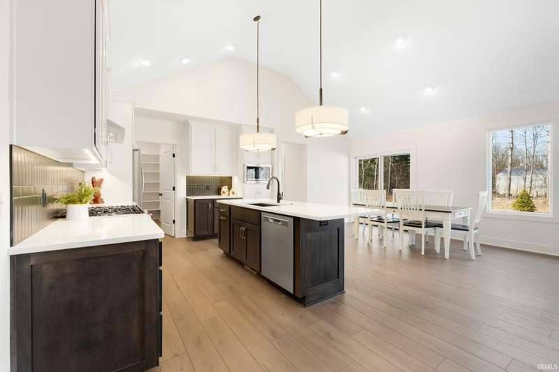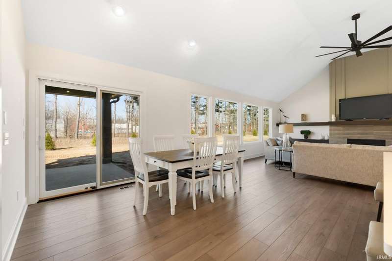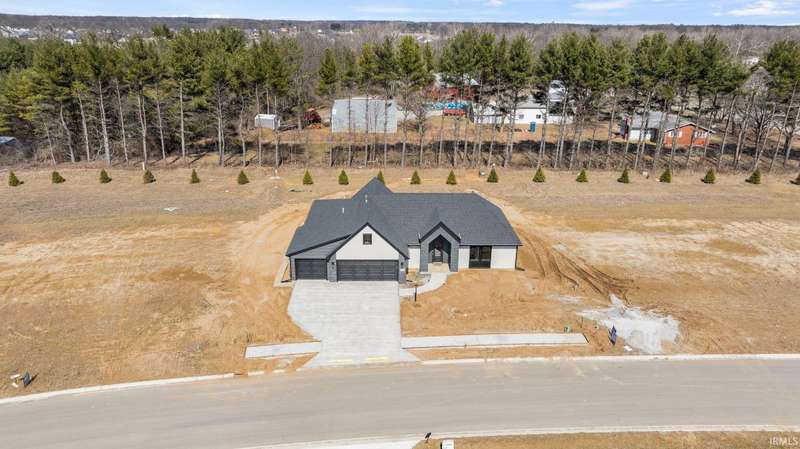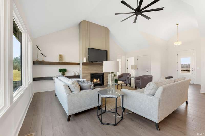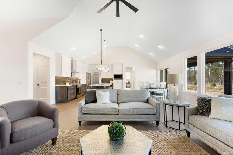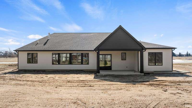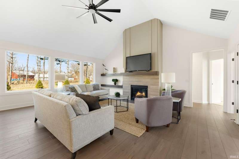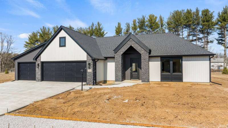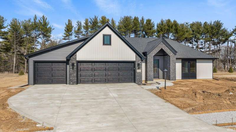New Construction - Introducing a brand-new, single-story residence by Bob Buescher Homes, perfectly situated in the serene community of The Pines. This stunning 3-bedroom, 2.5-bath home showcases the ideal blend of style, comfort, and superior craftsmanship—set on a tranquil, tree-lined lot. Step inside to a bright, open-concept layout anchored by an elegant foyer that leads into a sunlit great room. Here, a striking fireplace and soaring cathedral ceilings create a breathtaking focal point, seamlessly connecting to the modern kitchen and dining area. The chef’s kitchen is a true delight, featuring custom maple cabinetry, tasteful quartz countertops, a large walk-in pantry, and a generous island ideal for both prep and casual gatherings. Luxury vinyl plank flooring flows throughout the main living spaces, lending warmth and cohesion. The private primary suite offers a spa-like retreat, complete with a double vanity, elegant custom tile walk-in shower, and a remarkable 14-foot-deep walk-in closet. Two additional bedrooms are generously sized, while a versatile den near the foyer offers endless possibilities as a home office, reading nook, or playroom. Outdoors, enjoy a rear covered porch with a cathedral ceiling, perfect for relaxing or entertaining, and a spacious 3-car garage that provides ample storage and convenience. The peaceful backyard is framed by mature trees, and the home offers direct access to the nearby Puffer Belly Trail for walking, biking, or jogging. This home comes with builder warranties, a full home orientation prior to closing (covering everything from HVAC operation to window care), and a complete kitchen appliance package. The freshly seeded yard is ready for your personal touch.