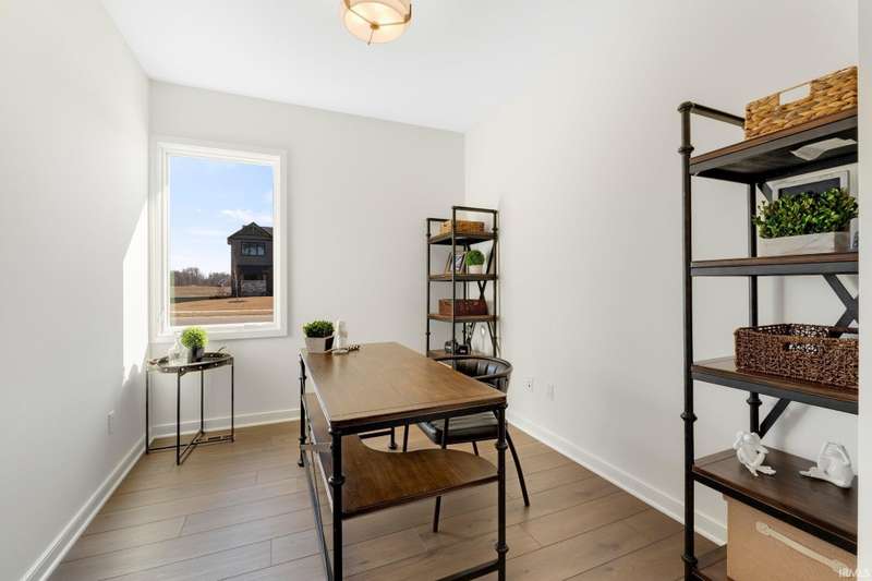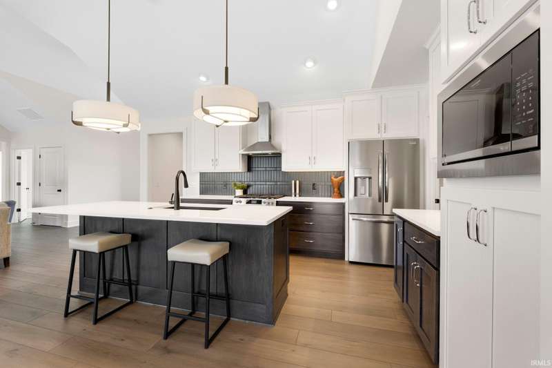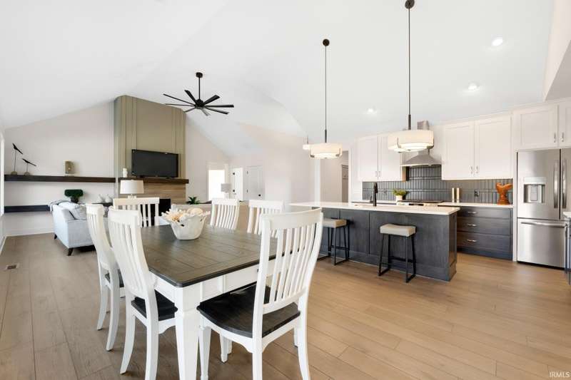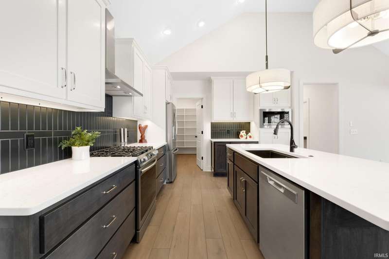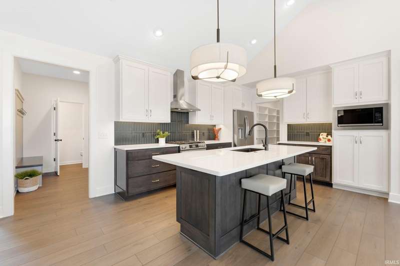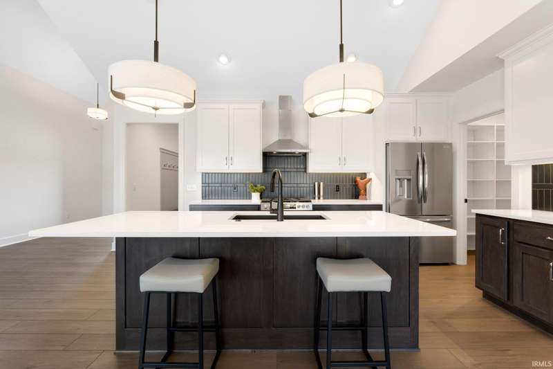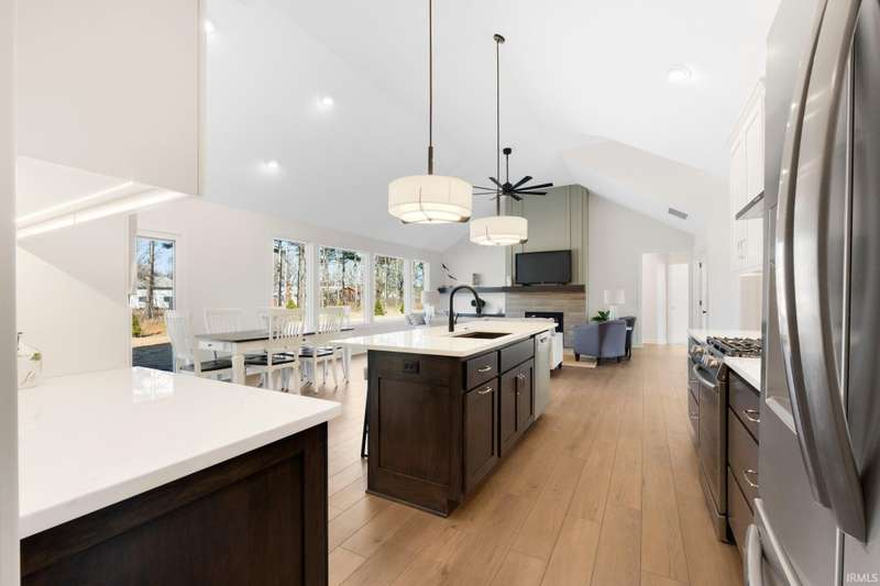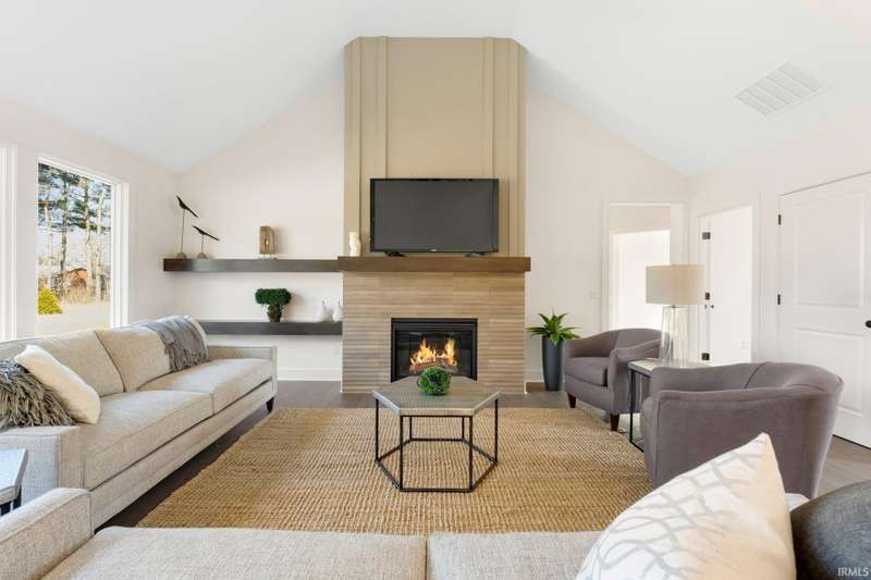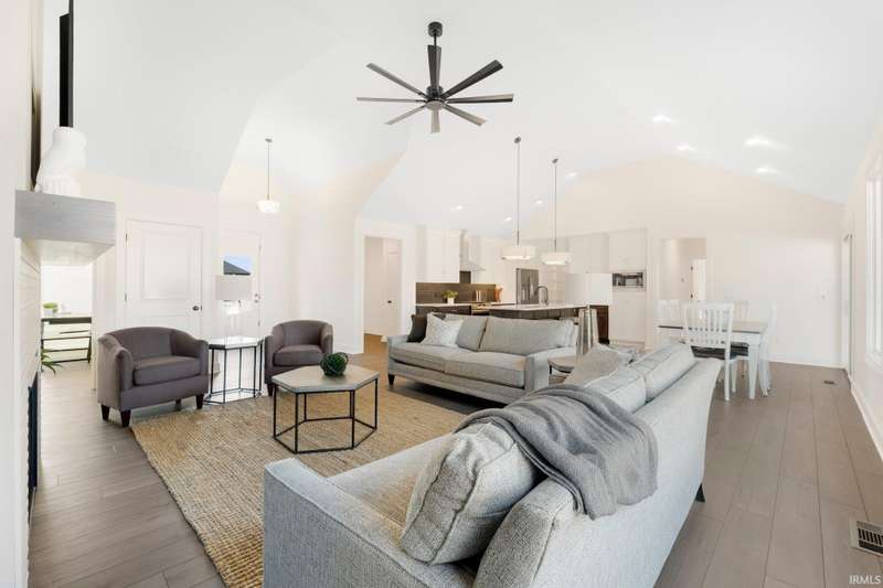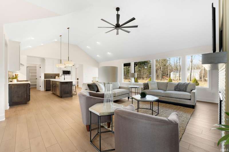 New Construction - Introducing a brand-new, single-story residence by Bob Buescher Homes, perfectly situated in the serene community of The Pines. This stunning 3-bedroom, 2.5-bath home showcases the ideal blend of style, comfort, and superior craftsmanship—set on a tranquil, tree-lined lot. Step inside to a bright, open-concept layout anchored by an elegant foyer that leads into a sunlit great room. Here, a striking fireplace and soaring cathedral ceilings create a breathtaking focal point, seamlessly connecting to the modern kitchen and dining area. The chef’s kitchen is a true delight, featuring custom maple cabinetry, tasteful quartz countertops, a large walk-in pantry, and a generous island ideal for both prep and casual gatherings. Luxury vinyl plank flooring flows throughout the main living spaces, lending warmth and cohesion. The private primary suite offers a spa-like retreat, complete with a double vanity, elegant custom tile walk-in shower, and a remarkable 14-foot-deep walk-in closet. Two additional bedrooms are generously sized, while a versatile den near the foyer offers endless possibilities as a home office, reading nook, or playroom. Outdoors, enjoy a rear covered porch with a cathedral ceiling, perfect for relaxing or entertaining, and a spacious 3-car garage that provides ample storage and convenience. The peaceful backyard is framed by mature trees, and the home offers direct access to the nearby Puffer Belly Trail for walking, biking, or jogging. This home comes with builder warranties, a full home orientation prior to closing (covering everything from HVAC operation to window care), and a complete kitchen appliance package. The freshly seeded yard is ready for your personal touch.