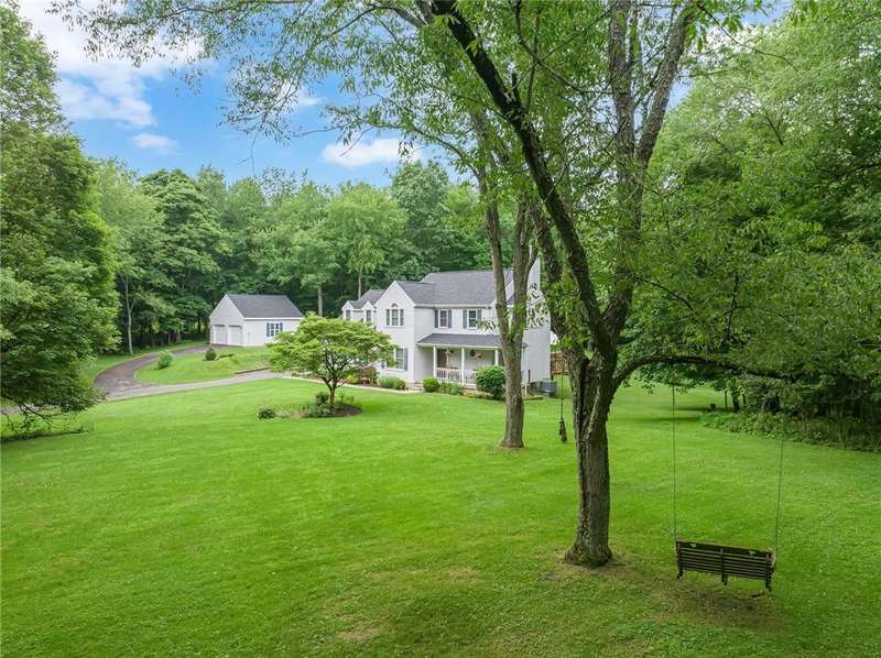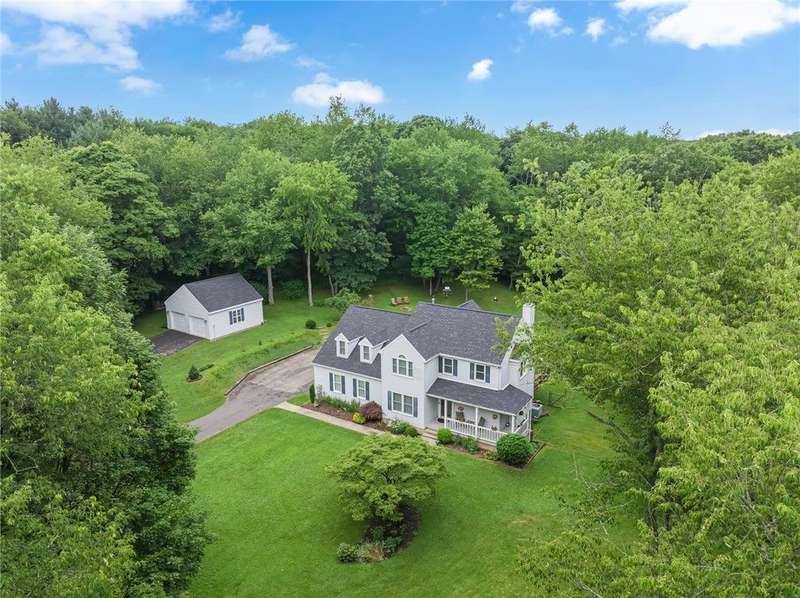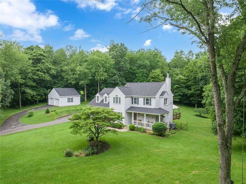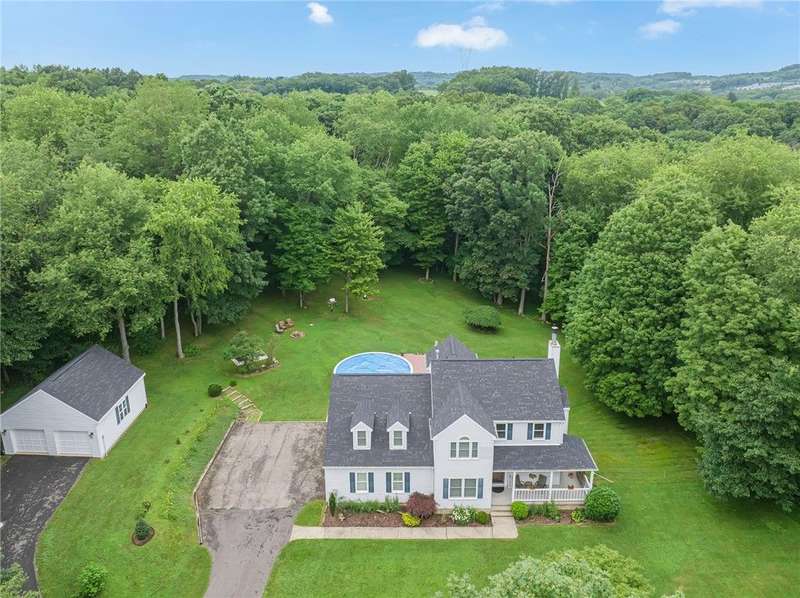 FIRST TIME OFFERED! Welcome to this stunning 4-bedroom, 3.5-bathroom home nestled on 7.48 acres with a pool and extra garages. This spacious home features numerous updates, including new windows and a new roof in 2022. Step into the beautiful eat-in kitchen filled with natural light - perfect for family gatherings and everyday meals. The finished basement includes a second kitchen, a gorgeous bathroom with heated floors, and additional living space. The upstairs boasts a huge bonus room with tons of storage that can be used as the 4th bedroom or extra living space. There is a 3-car attached garage plus a large 2-car detached garage, offering ample space for vehicles, tools, or projects. Don't miss this incredible opportunity to own a private home with room to grow both inside and out. This home blends comfort, style and functionality!