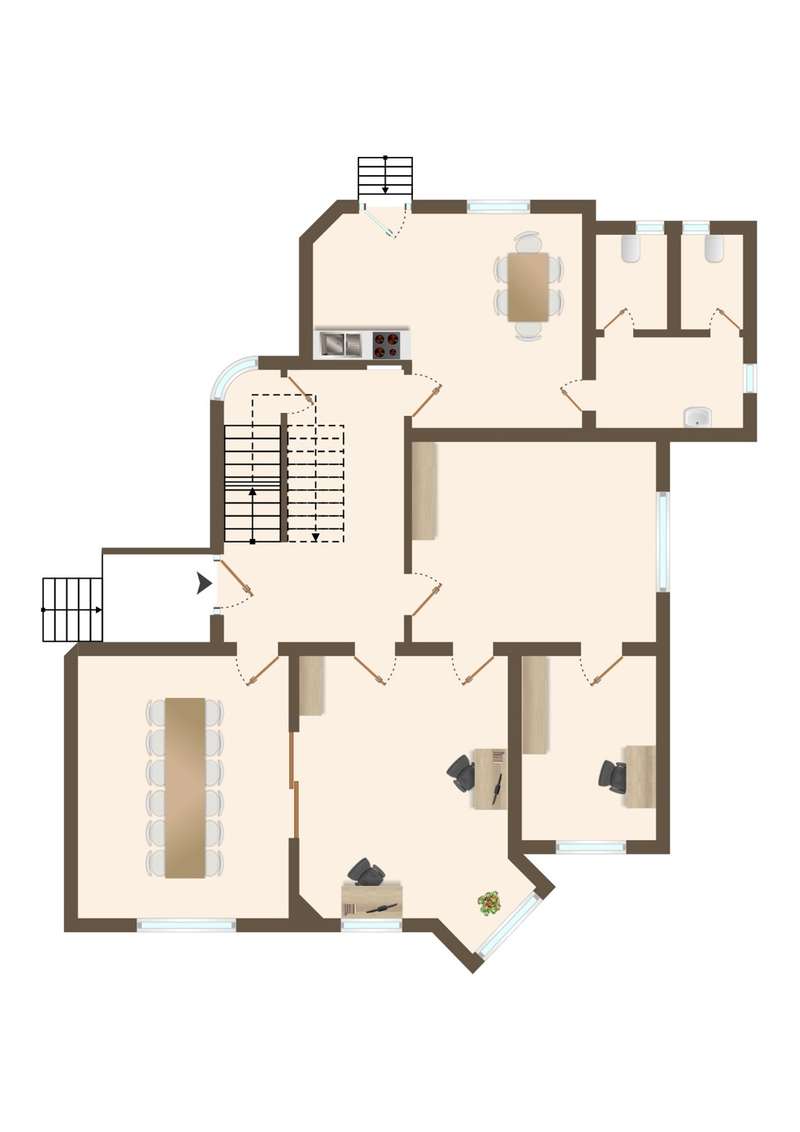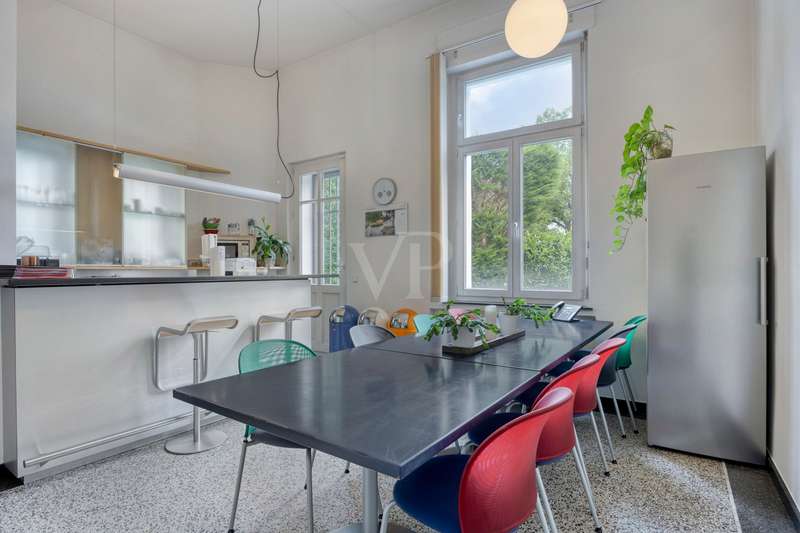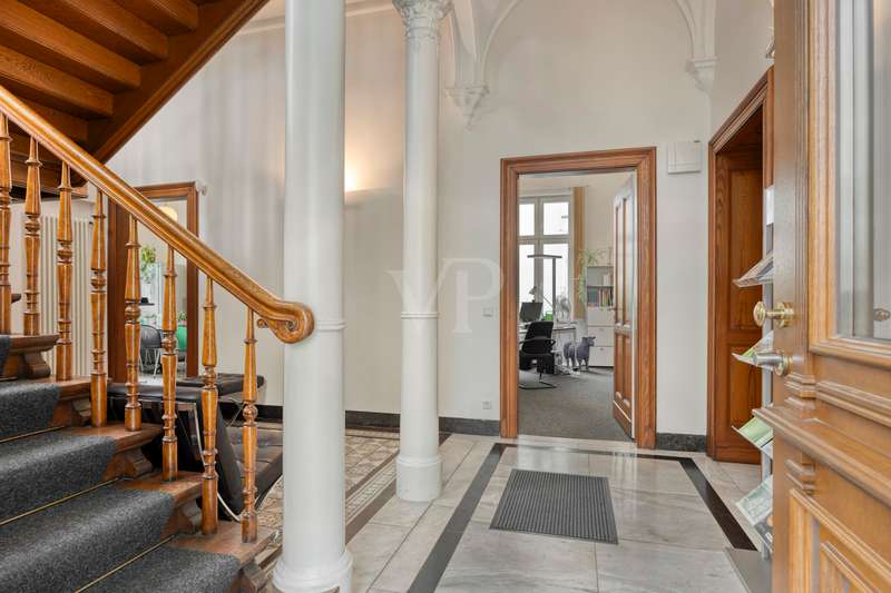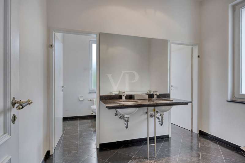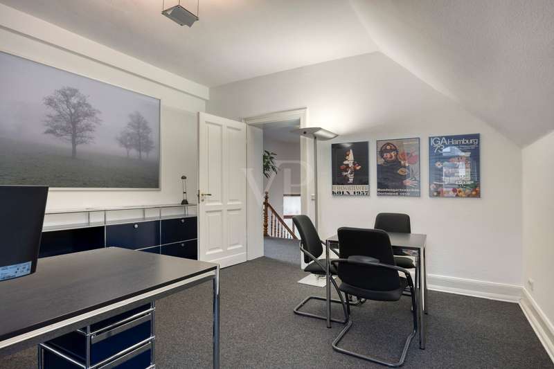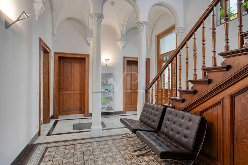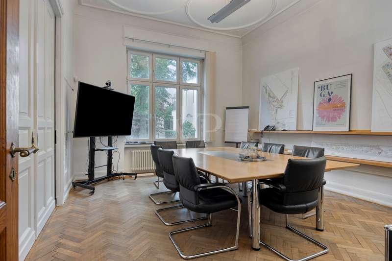 This exclusive Art Nouveau villa in the heart of the Godesberg villa quarter, one of the most sought-after districts in the south of Bonn, dates back to 1896 and combines classic elegance with modern functionality. Around 393 m² of office space extends over a total of three floors and provides a highly prestigious working environment for companies with high standards. The listed property impresses with its striking architecture, original floor coverings and stucco elements, as well as a well thought-out room layout that creates flexible usage options for individual work concepts - from individual and team offices to meeting and reception areas. Additional space is provided by the approx. 110 m² basement with practical storage space - ideal for archiving or technical equipment. Thanks to the fiber optic connection, a high-performance digital infrastructure is also guaranteed. A communal kitchen and the well-tended, landscaped outdoor area are available as a retreat for relaxed breaks and short time-outs during the working day. Several high-quality bathrooms with modern toilet facilities ensure the necessary comfort on all floors. Four garages are located directly on the property - one of which is equipped with a wallbox and thus also enables the charging of electric vehicles. The villa is situated in a quiet yet easily accessible location and is ideal for companies looking for a stylish, prestigious and functional company headquarters. We would be delighted to present this special property to you as part of a personal viewing - we look forward to hearing from you!