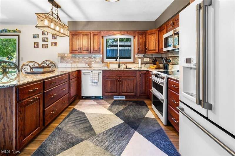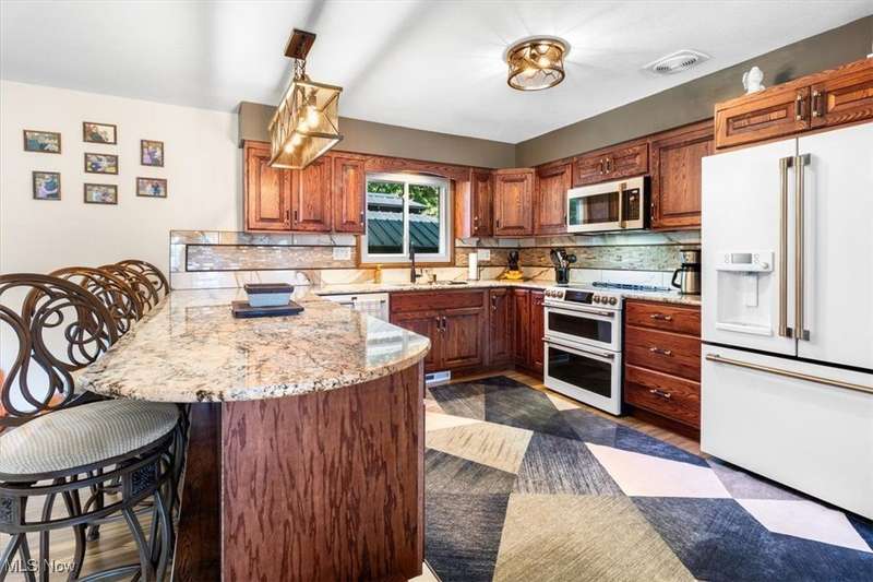 Just Listed! Welcome to this beautifully updated 3-bedroom, 2-bath ranch in the Midview School District, situated on 1.26 acres. This open-concept home features a brand-new kitchen with granite countertops, top-of-the-line KitchenAid Cafe Series appliances, including a double oven. The spacious living and dining areas flow seamlessly, complemented by first-floor laundry for convenience. The finished basement is a showstopper with a large office space, a huge recreation room-all with Nature Stone flooring-plus abundant storage. Step outside to enjoy a pergola for relaxing sunsets and a large open backyard, perfect for gatherings. Recent updates include: New insulation (2025) Replacement windows (2021) with lifetime warranty Sliding glass door (2021) Glass block windows in basement (2022) Septic system (2021) Kitchen, flooring, ceilings, lighting, and appliances (2025) Own your piece of the country with modern updates and space to grow!
