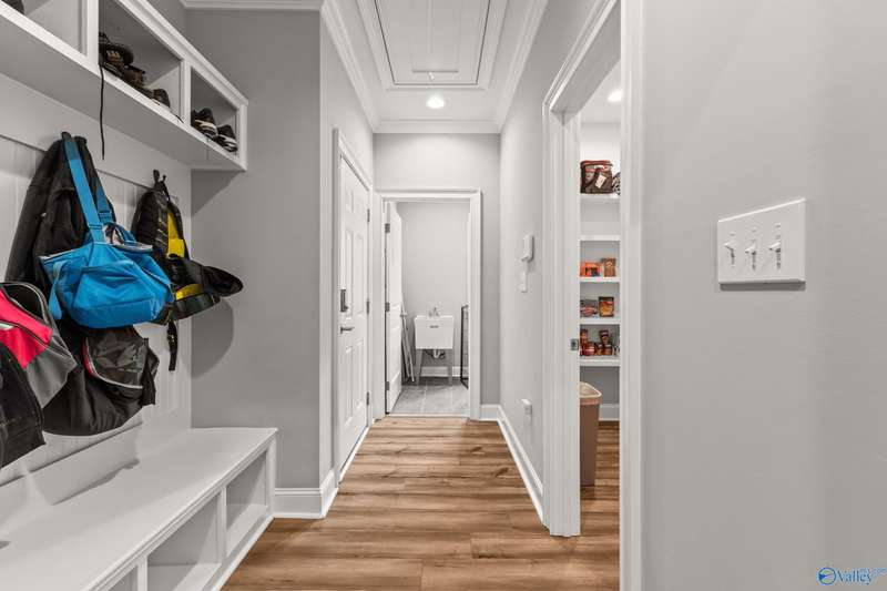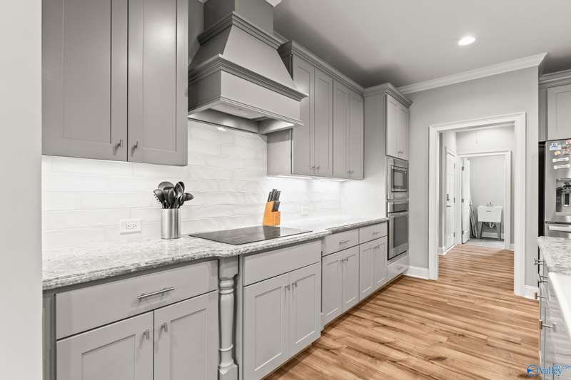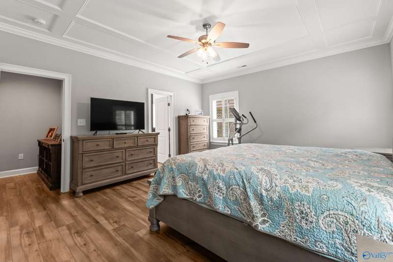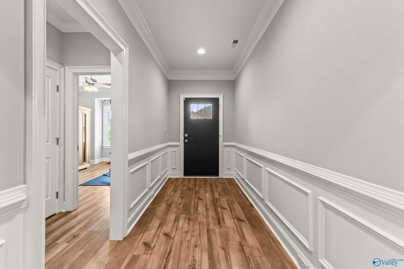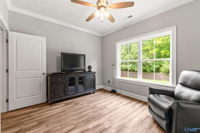 Motivated seller ! This home is not a builder spec home. This is a very customized & upgraded luxury home completed in 2023 situated on a corner lot and backing up to the woods for privacy. You will NOT find this in a new build by the same builder. Offering full LVP & tile floors, vaulted & beamed 18ft ceiling in living room, wainscotting in entrance, granite counter tops and subway tiles in kitchen with oversized eat-in counter-top, 8x6 walk-in pantry, dining room with ship-lap accent wall, Primary bedroom features coffered ceiling and extensive en-suite with upgraded tile shower and 14x 9 walk-in closet, storm doors, 3 car garage, added concrete outside, full fenced backyard ,covered patio