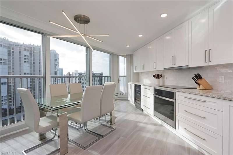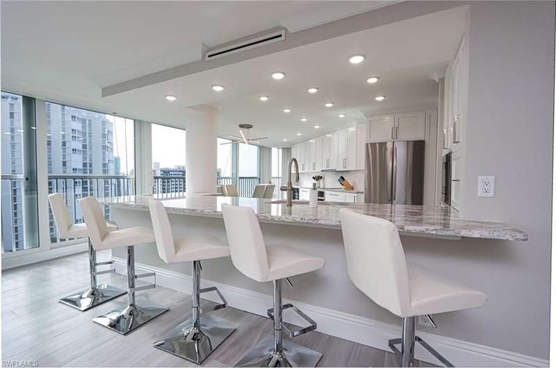 Be ready to live the highly desirable Park Shore lifestyle in this completely remodeled 2,000 sq ft, two bedrooms plus den, two bathrooms luxury beachfront condo located in one of the most desirable high-rise beach front towers! This 12th floor, south-facing Savoy residence has undergone a complete high-end gut renovation, completed in December 2023, to fully open the space offering the best in coastal and modern living. There are amazing gulf, bay, park and skyline views from every room as you peer out of the new floor-to-ceiling windows and sliders, which flood the space with sun and can be opened and stacked for the ultimate indoor/outdoor living. There is also a private lanai assessable through either the main living area or primary suite. The expansive kitchen and dining areas have been completely reimagined with custom cabinetry, stunning quartz countertops and premium stainless steel appliances. The primary suite (with a king bed) and guest suite (with two double beds) are located on opposite ends of the residence for privacy and offer beautifully appointed bedrooms and bathrooms, and spacious walk-in closets. There is also a private den offering the ultimate in flexibility with its built-in desk and queen size Murphy bed. Modern, stylish décor make this the perfect getaway for the most distinguished and selective guests. Amenities include a large heated pool and spa, outdoor grill areas, tennis, pickle ball, exercise room, social room, 24hr security guarded gated entry and on-site security and manager. Located directly across the street from the Village on Venetian Bay, offering fine shopping, dining and entertainment, you could not ask for a better location! If looking for 2025 season the listing price is $20,000 a month. Off season pricing April/May $15,000, June/July/Aug/September, $12,500, October/November $18,000.