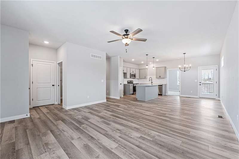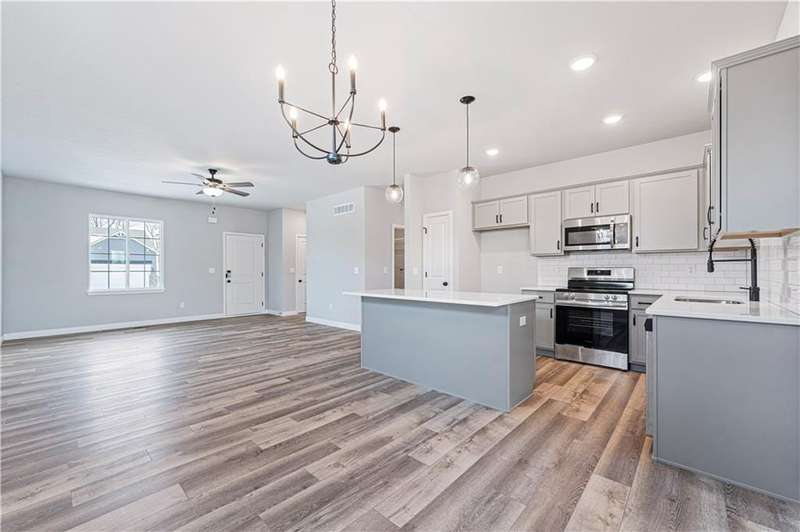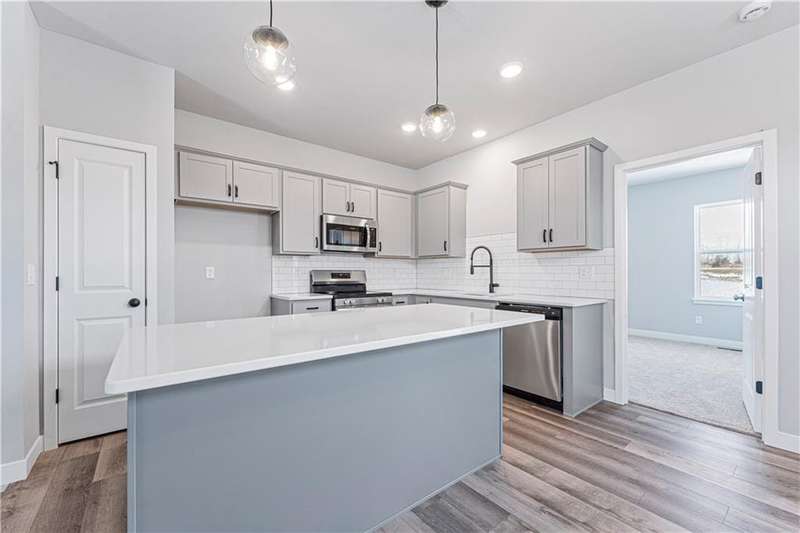 HUGE PRICE IMPROVEMENT! MOVE-IN READY & MAINTENANCE-PROVIDED! This beautifully designed ranch-style home by Ashlar Homes offers the best value in the neighborhood and backs to walking trails and green space for added privacy and scenic views. Featuring 3 bedrooms, 2 bathrooms, and an open-concept layout, this home is perfect for modern living. The spacious kitchen includes a large center island, sleek gray cabinetry, and quartz countertopsideal for both everyday use and entertaining. The primary suite boasts a private ensuite bath with designer tile, a walk-in shower, and a large walk-in closet. Two additional bedrooms also include walk-in closets and share a full bath with a tub. The full unfinished daylight basement provides endless possibilities for future living space. Enjoy outdoor living on the covered back deck and take in the serene surroundings. Located on a spacious corner lot, this home also includes maintenance-provided services such as lawn care, snow removal, and trash pickup.Dont miss this exceptional opportunity!