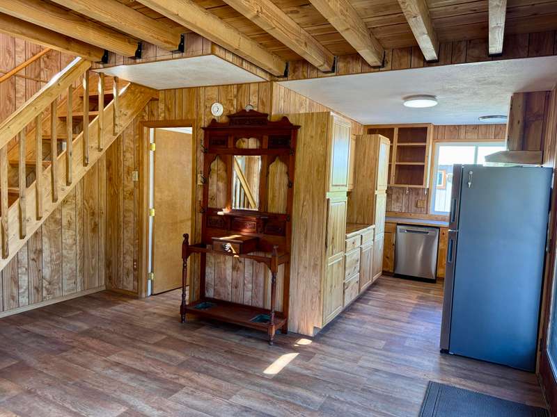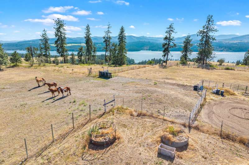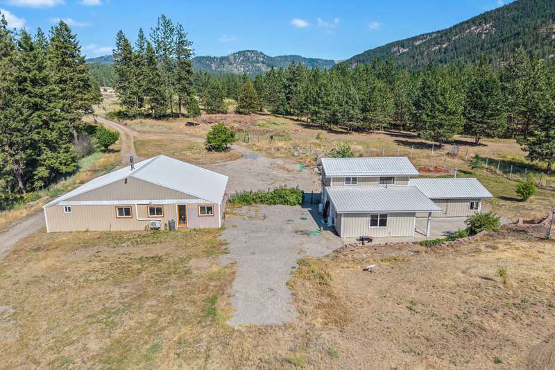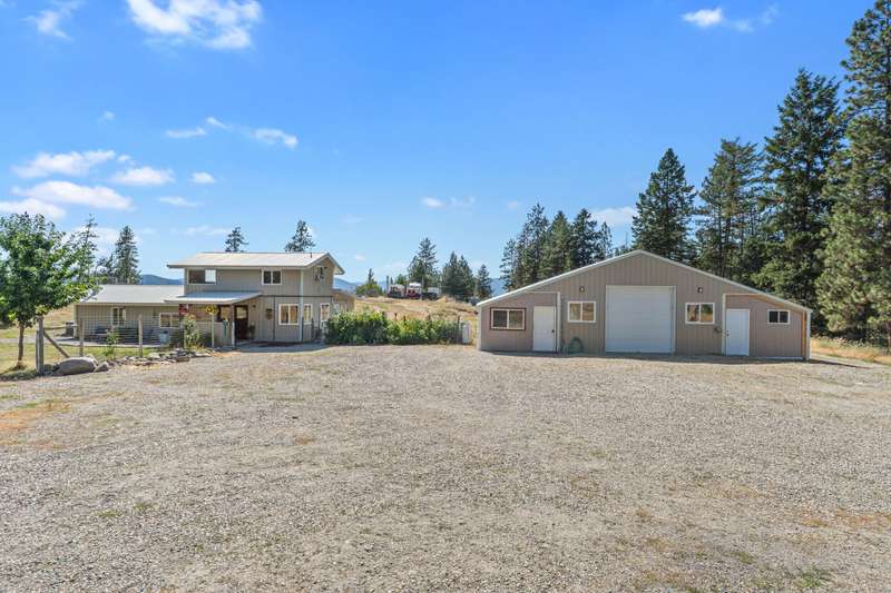 20 acres with huge Lake Roosevelt views along the entire west boundary! 2-bed, 3-bath home with metal roof/siding, vintage charm, wood accents, and deer-fenced yard with mature apple, cherry, and pear trees. Located in Rice, WA with year-round access. Large shop on the north side of the home has a main roll-up door, plus enclosed north and south wings. The south wing includes a private guest apartment with kitchen, bath, laundry & bedroom. Horse fencing in place. Plenty of space to build your dream home on the west side to take full advantage of the view—buyer to verify with county. Minutes from Lake Roosevelt boat launches!