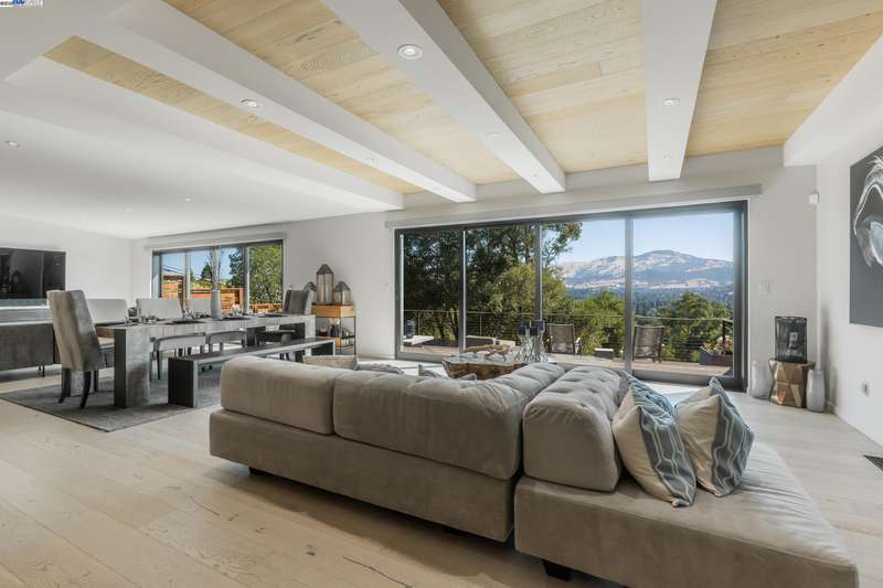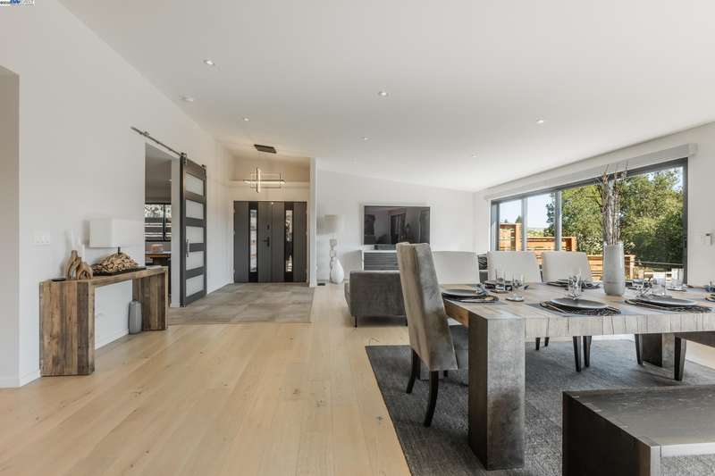Experience elevated living in this stunning, fully rebuilt modern home on Danville’s coveted Westside. Located in the exclusive Sky Terrace community, this rare 1.4+ acre property offers panoramic views of Mount Diablo and seamless indoor-outdoor living through La Cantina doors that open to a spacious deck. The open-concept floor plan features high-end modern finishes throughout, including wide-plank hardwood flooring, marble tile bathrooms, sleek Euro-style cabinetry, and natural Quartzite countertops with a waterfall island and glass-beveled backsplash. A chef’s kitchen showcases top-tier appliances, including a premium Sub-Zero refrigerator, 48" professional cooktop with griddle, smart double ovens, and a built-in drawer microwave. The primary suite offers breathtaking views and direct access to the deck. One of the four bedrooms has been transformed into a custom walk-in closet by Valet Cabinets, perfect for a fashion-forward lifestyle. All bedrooms, including the luxurious primary suite, are conveniently located off a single hallway for ideal flow and functionality. Step outside to a fully hardscaped backyard oasis complete with an infinity-edge pool, custom outdoor furnishings from Terra (most included in sale), and multiple gathering spaces designed for both !