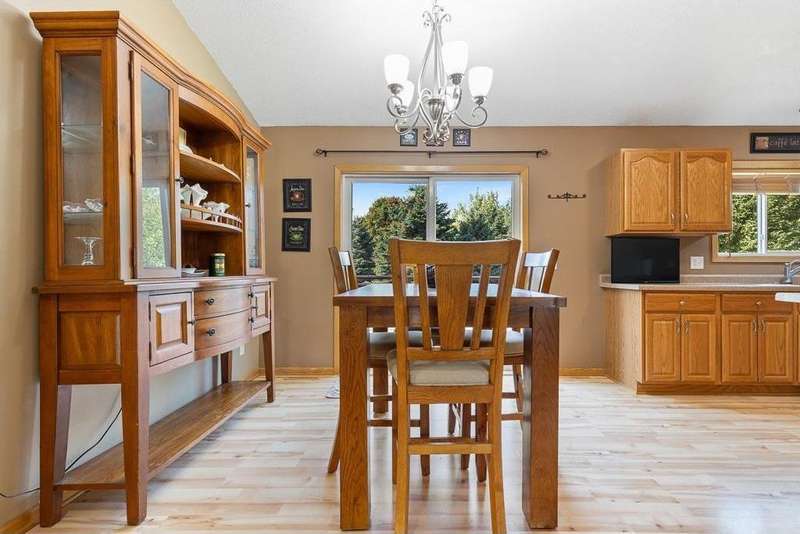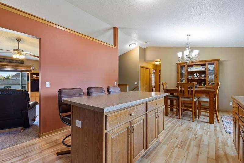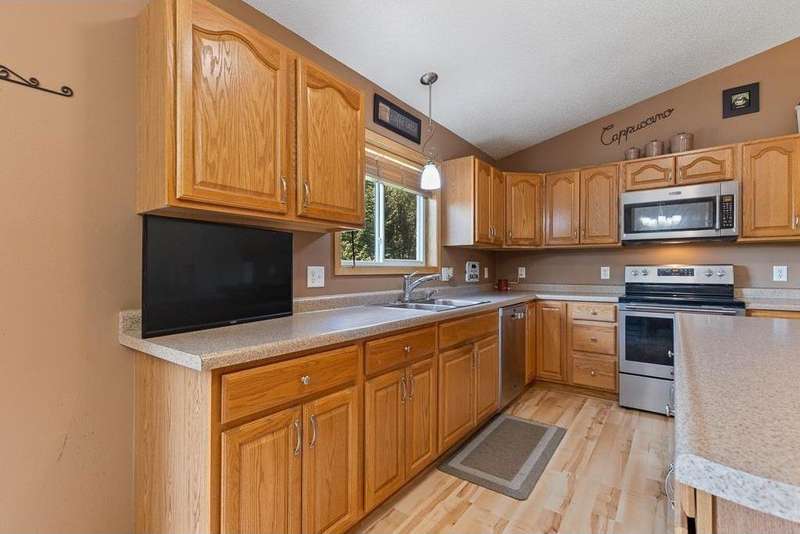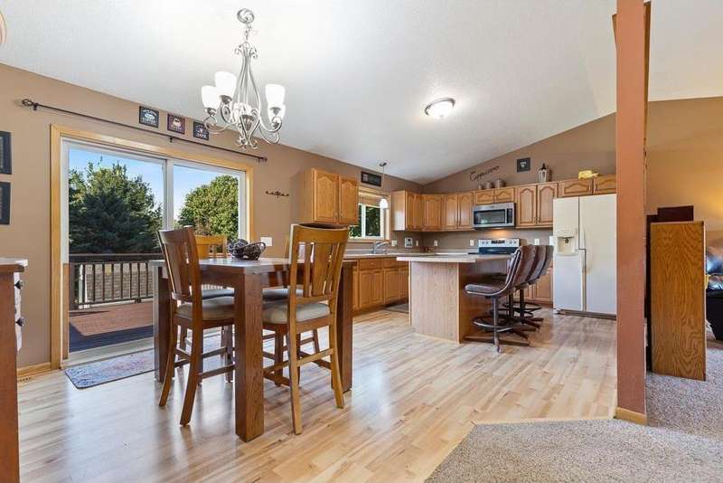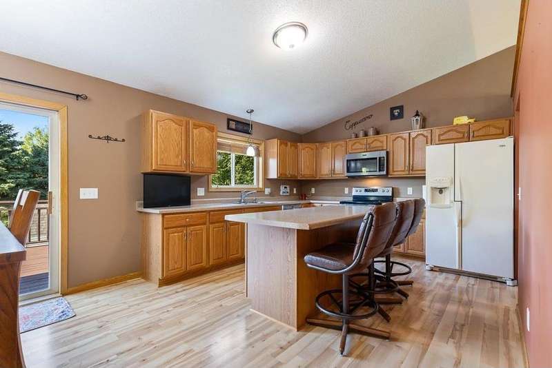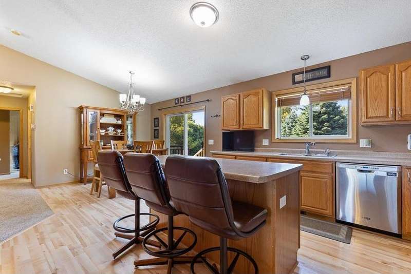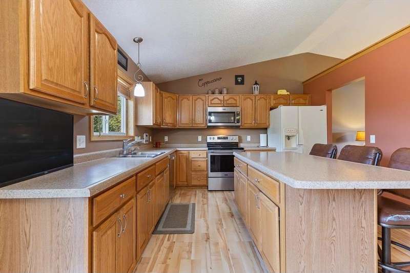 Welcome to this well-maintained 2005 split-level home! The spacious front entry offers direct access to the fully finished, heated 2-stall garage. Upstairs, you’ll find a nice layout with a large kitchen featuring a center island, informal dining area, and inviting living room. The dining space walks out to the freshly stained 12x14 deck with brand-new stairs—perfect for entertaining. The upper level also includes two generously sized bedrooms (primary bed w/ walk-in closet) and a full bath. The lower level provides even more living space with a large family room, 3/4 bath, laundry/mechanical room, and two additional bedrooms. Recent updates include a brand-new AC unit, updated water heater, deck upgrade & finishing, added storage shed with landscaping lower-level bedroom remodels, and a finished/heated garage. Move-in ready and packed with features, this home is designed for comfort and convenience!