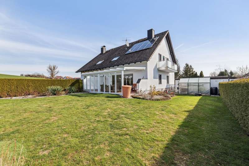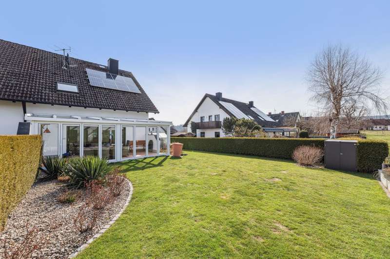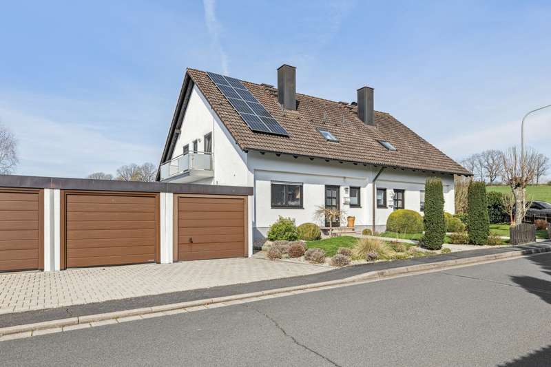 This charming semi-detached house in solid solid construction with a living space of approx. 125 m² offers generous space for families or couples looking for a family-friendly home with a fantastic view of the natural surroundings of Bayreuth. The well-kept property is situated on a plot of approx. 433 m² and has been continuously modernized. It impresses with its contemporary living ambience in a quiet, natural setting. An additional highlight is the photovoltaic system installed on both sides of the roof. The open floor plan and the tasteful interior design create an inviting living atmosphere in which you immediately feel at home. The house has five bedrooms, a modern bathroom, two guest toilets and a modern kitchen with high-quality electrical appliances. Large windows provide plenty of natural light and open up views of the well-tended garden, which invites you to linger and relax. The offer is complemented by a covered terrace and a balcony, ideal for cozy hours outdoors. The garage belonging to the building is ideally located directly on the property and can be accessed via the private garden. An additional parking space is located directly in front of it. Overall, this property presents itself as a perfect combination of living comfort, a natural location and modern features - ideal for anyone looking for a ready-to-move-in home in an idyllic setting. For further details, please contact Mr. Thomas Wilke, real estate agent (IHK), on +49 151 561 962 92.