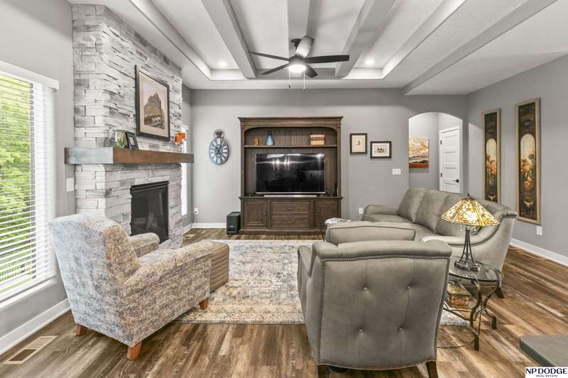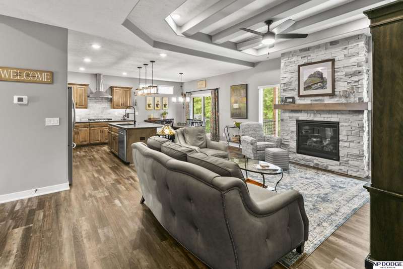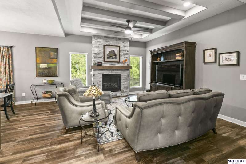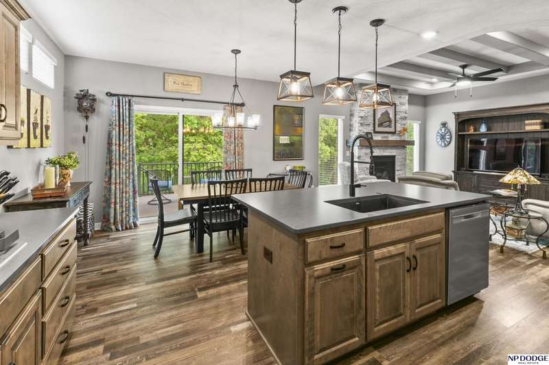 This is a stunning free standing villa built with love & all the upgrades! Backing to trees with great outdoor space. Open floorplan with a stone to ceiling fireplace, walk in pantry, primary suite is spacious w/walk-in closet & 3/4 bath, large 2nd bedroom, main bathroom w/soaking tub & laundry room rounds out the main floor. Lower level is finished with a generous family room, bathroom, 3rd bedroom & storage. If you are looking for easy living this is it! Since this a free standing villa mowing and snow removal (after 2'' of snow) $425 a quarter. Some of the upgrades-Black steel fencing, custom holiday lighting, leaf guards, extended patio, maintenance free decking, garage fully insulated, custom window coverings, upgraded flooring, soft close kitchen drawers.