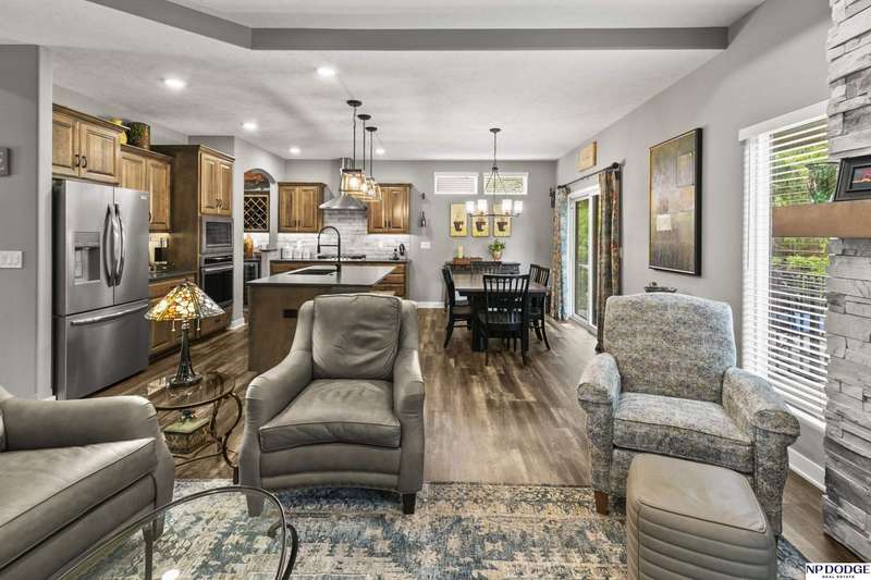 This beautifully crafted villa offers the perfect blend of comfort, style and convenience. Backing to mature trees, the outdoor space is ideal for relaxing or entertaining. Inside, the open-concept layout features a striking stone-to-ceiling fireplace, upgraded flooring, and a chef's kitchen with soft-close drawers and a walk-in pantry. The spacious primary suite includes a walk-in closet and a private 3/4 bath. A large second bedroom, main bath with a soaking tub, and a dedicated laundry room complete the main level. Downstairs, enjoy a finished lower level with a generous family room, third bedroom, full bath, and ample storage. Additional upgrades include black steel fencing, custom holiday lighting, leaf guards, extended patio, maintenance-free decking, fully insulated garage, and custom window coverings. HOA includes lawn care and snow removal (after 2) for just $425/quarter-easy living at its finest!