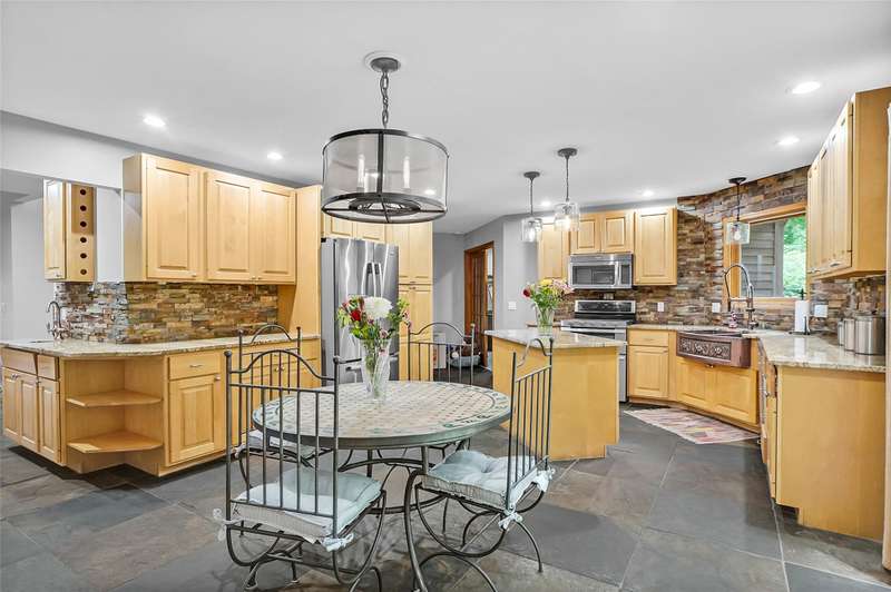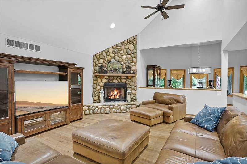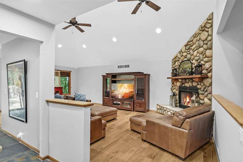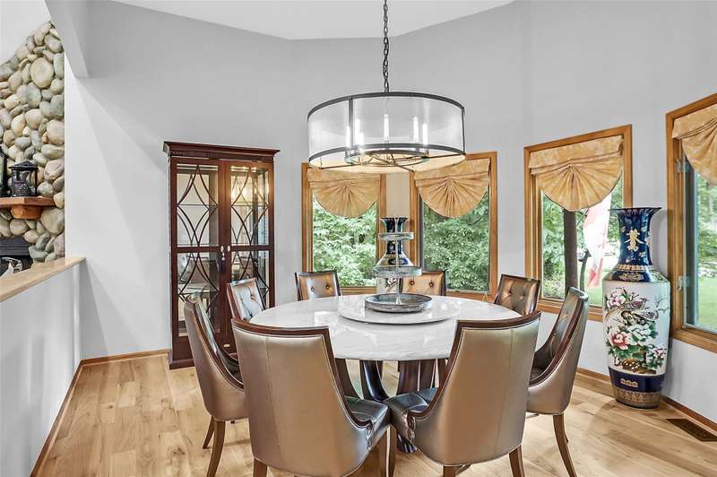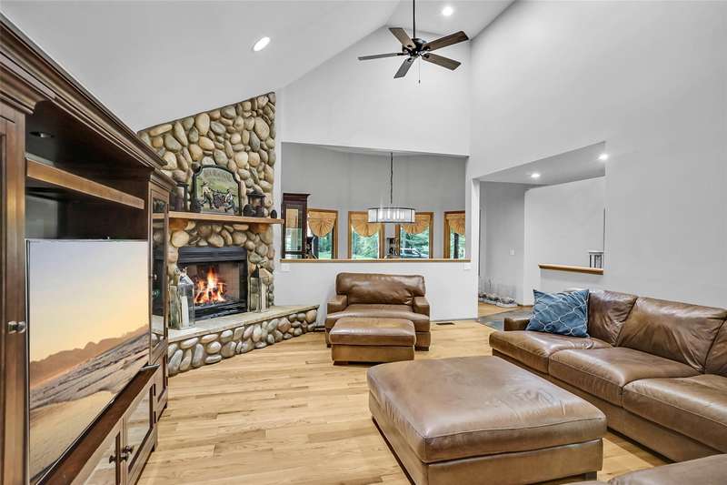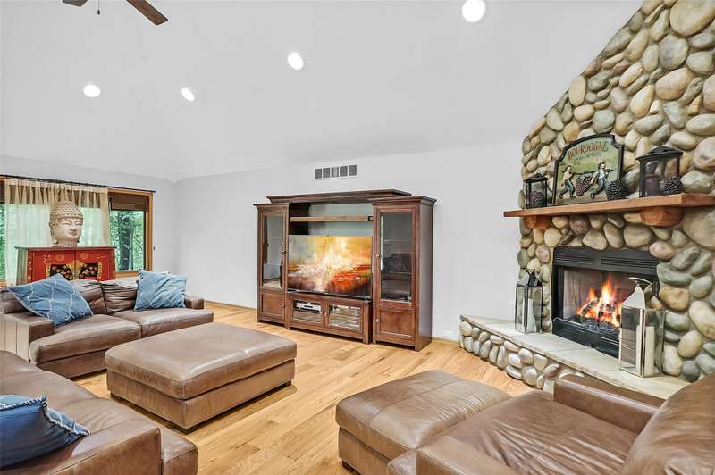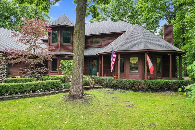 You have the opportunity to be only the third owner of this special home — a unique retreat at the end of a quiet cul-de-sac in prestigious Cumberland Valley. Set on 2.3+/- wooded acres, this cedar-clad residence feels worlds away yet keeps you minutes from conveniences. A tree-lined drive leads to the wide, welcoming front porch — the perfect perch for morning coffee as birdsong echoes through the hardwoods. ** Inside, soaring ceilings draw you to the great room, where a dramatic river-stone fireplace anchors your gatherings. The turreted dining room frames calming wooded views and connects to a discreet butler’s pantry — ideal for entertaining. The chef’s kitchen features a statement copper sink, granite counters, slate flooring, and stainless appliances. ** Main-level living is effortless: an executive office with custom built-ins, convenient laundry leading to an oversized three-car garage, and a serene primary suite with spa-like bath. ** Upstairs, three spacious bedrooms share a crisp full bath, and be sure not to miss the secret play room on your visit! The finished walk-out lower level delivers stay-at-home fun with a wet bar, game area, fitness space, theater zone, and direct access to the private backyard. ** Peace-of-mind updates: new roof (2014), dual high-efficiency furnaces (2013 & 2014), central air (2016), plus brand-new carpet, interior paint, water heater, and deck (2025). Whole-house 16 kW Generac generator. ** For those seeking privacy without isolation and luxury without pretense, this is your up-north escape — right here in metro Detroit. ** All M&D approx. and BATVAI.