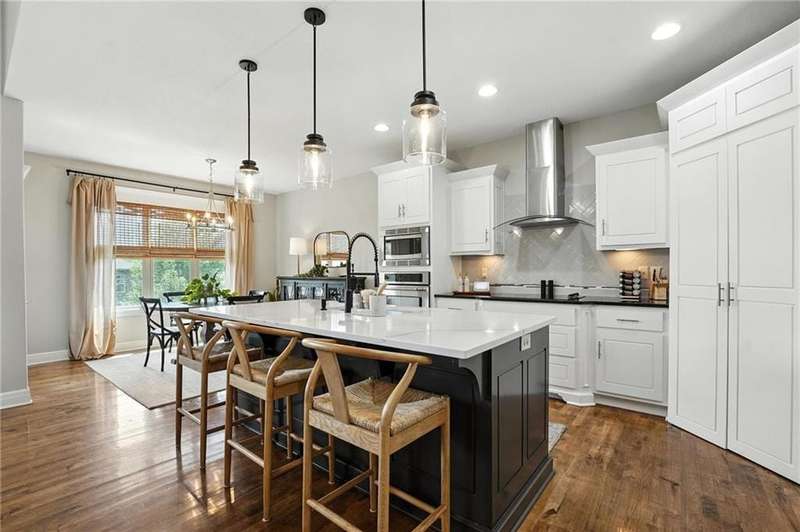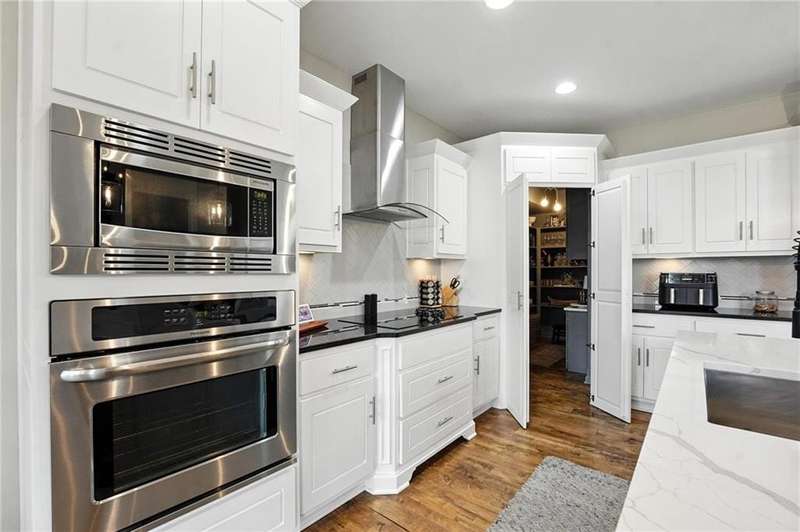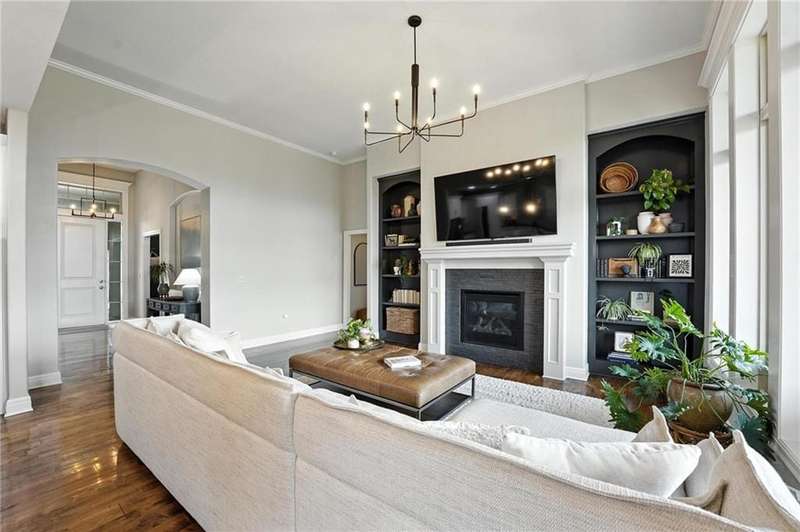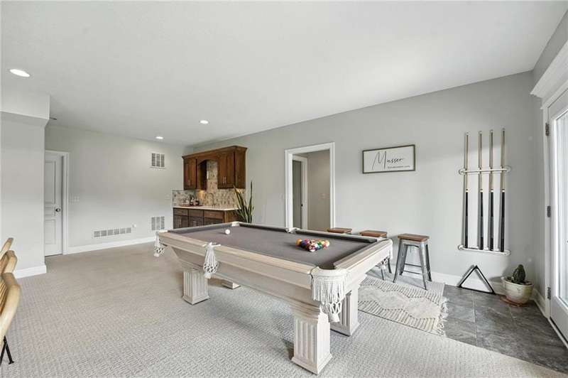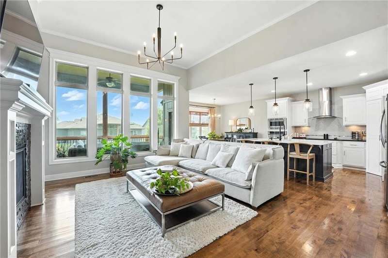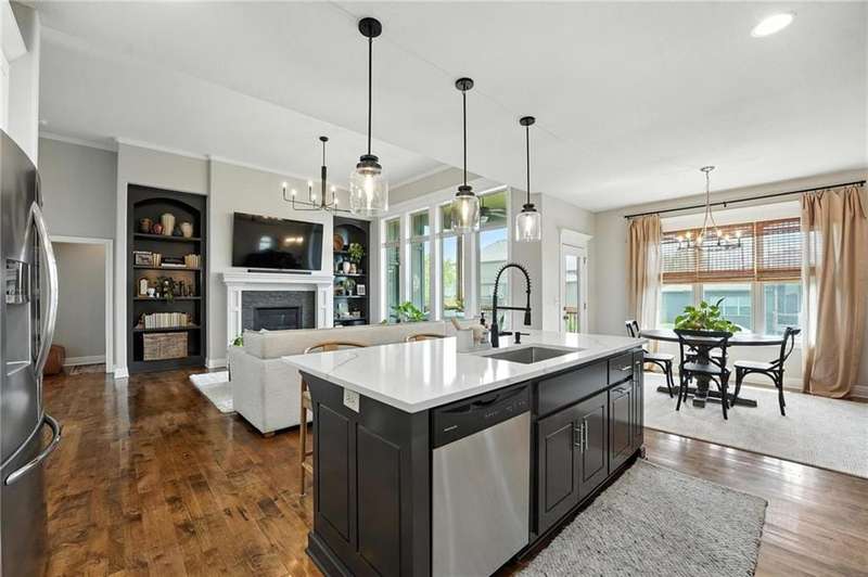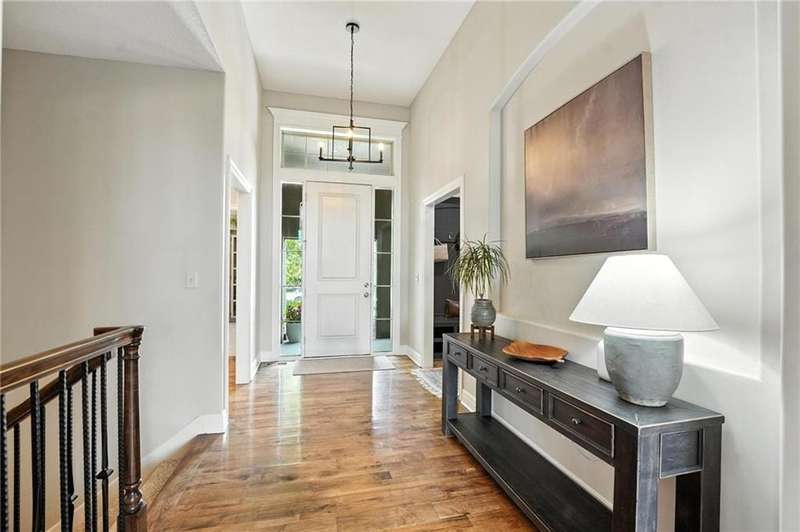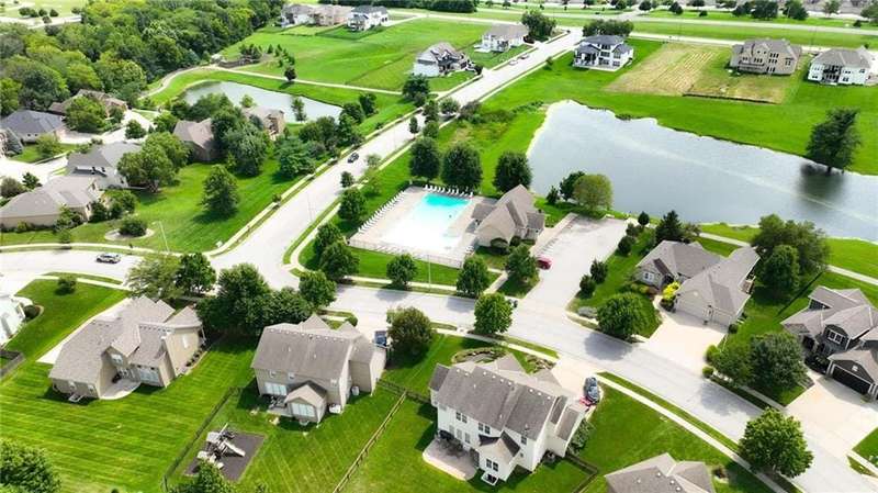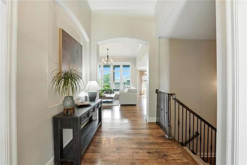 Back on Market at No Fault of Seller! Meticulously maintained and impeccably designed, this reverse 1.5 story in sought-after Staley Hills offers refined main-level living with every detail thoughtfully curated. Rich hardwood floors flow throughout the open main living spaces, where a gourmet kitchen takes center stage with a striking quartz island, granite perimeter countertops, stainless steel appliances, a single-basin sink, and an amazing walk-in pantry complete with custom built-in cabinetry. The great room is a showpiece with a stone fireplace, built-in shelving, and walls of windows that flood the home with natural light. The serene primary suite offers private access to the screened-in deck and a spa-worthy bath with dual granite vanities, a soaker tub, oversized tiled shower with double shower heads, generous linen storage, and a walk-in closet seamlessly connected to the laundry room. A mudroom with bench and cubbies adds both style and function. A secondary main-level bedroom doubles beautifully as a home office, while custom shades and designer window treatments elevate every room. The lower level extends the living space with a spacious family/rec room, wet bar, two large bedrooms with walk-in closets, a full and half bath, and abundant storage. Brand-new high-end carpet in all bedrooms and the lower level provides a fresh, luxurious touch. Outdoor living shines with a screened-in deck, beautifully landscaped and fenced yard, and a full-yard sprinkler system. Residents enjoy neighborhood pools, ponds, walking trails, a play area, and the ability to stroll to Anne Garney Park. This home is truly turn-key offering an elevated lifestyle where upscale design meets effortless livability. Conveniently located in Staley High School attendance area in the Award Winning North Kansas City School District.