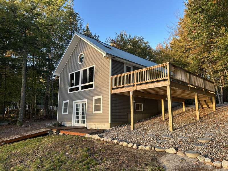 Here is your quintessential Maine lakefront camp. Located on the westerly shore of peaceful Hancock Pond in Demark Maine, just a short distance from Sebago and Bridgton, this property not only offers a peaceful respite from the craziness of daily life, but also offers comfort and convenience. Originally built in 1972, this camp is rustic but has all of the comforts and modern amenities you will need. An open kitchen and living room with large windows captures the peaceful view of the lake and it's beautiful sunrises. Three bedrooms and a bathroom on the main floor offers space for everyone and a loft bedroom upstairs is a great space for the extra guests or a bunkroom. Updated in 2023, this camp is in pristine shape with metal roofing, updated plumbing and electrical and newly constructed decks and stairways. There is nothing to be done except arrive and enjoy everything that this property has to offer. The waterfront boasts a sandy beach and a dock with clear and clean water. This property has a septic system and lake drawn water. It also has a propane fireplace for chilly nights or in the colder seasons. Properties on Hancock Pond do not come along very often. Don't miss this opportunity. FMI Contact Jackie Sawyer @ Meservier & Associates.