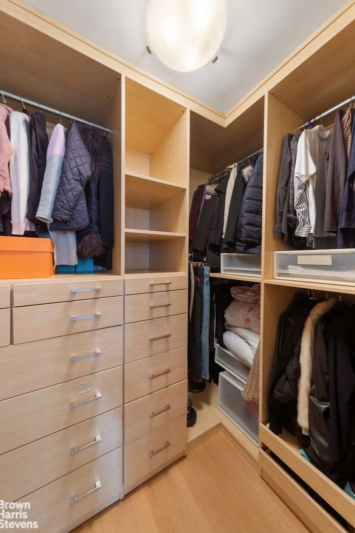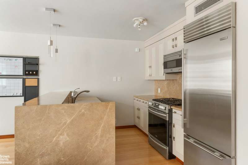 The spacious primary suite boasts a custom-designed walk-in closet and a spa-like bathroom with bespoke cabinetry. The second bedroom has an ample closet. Additional highlights include wide double-pane windows, oak flooring, top-of-the-line appliances, and an in-unit washer and dryer.