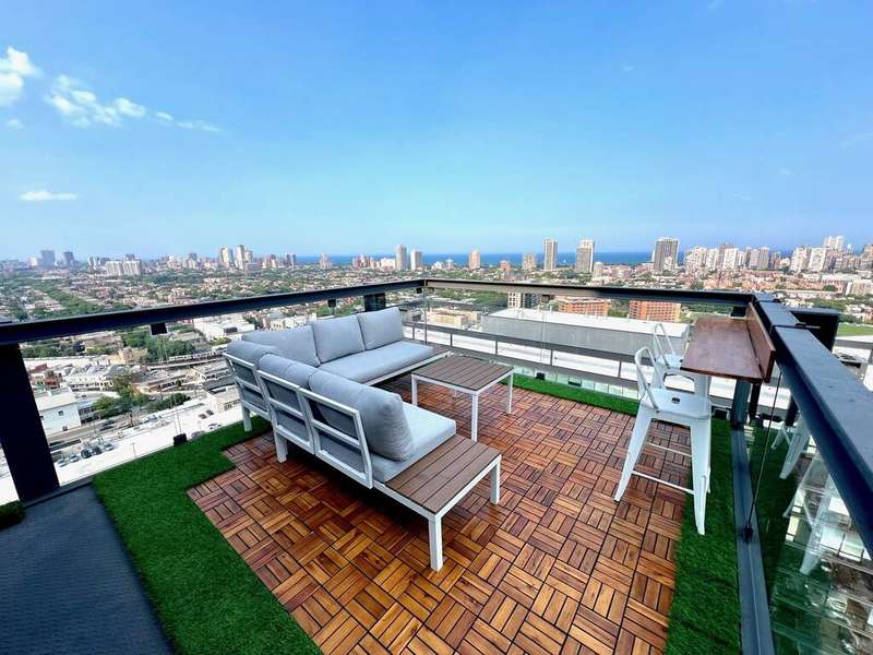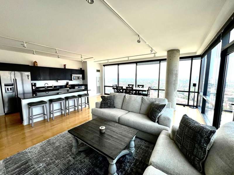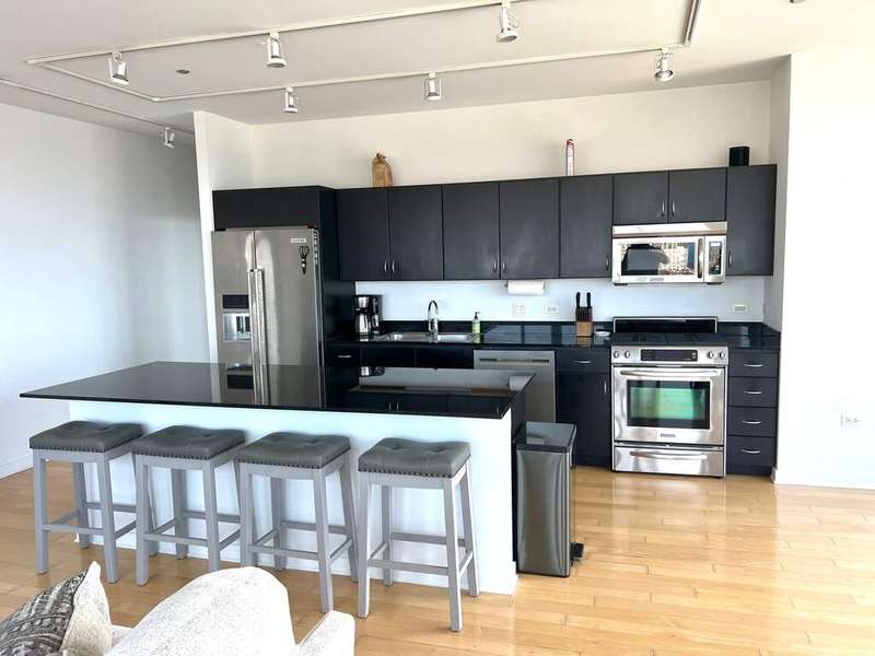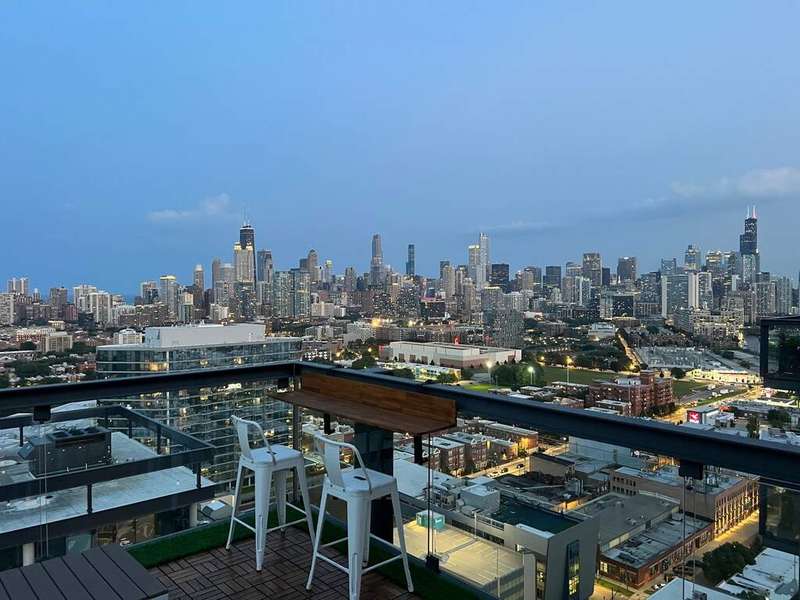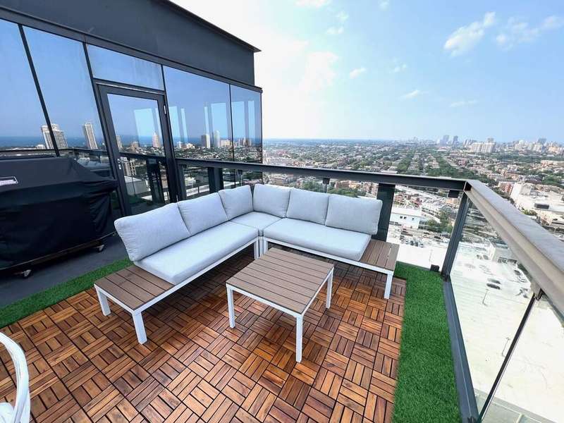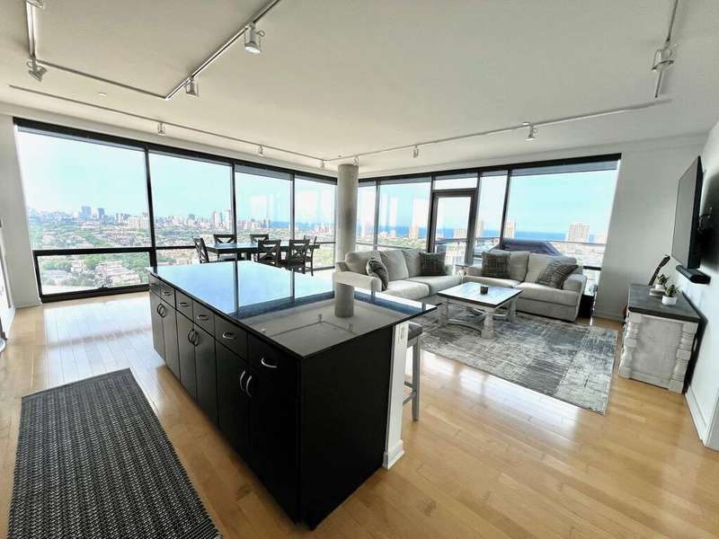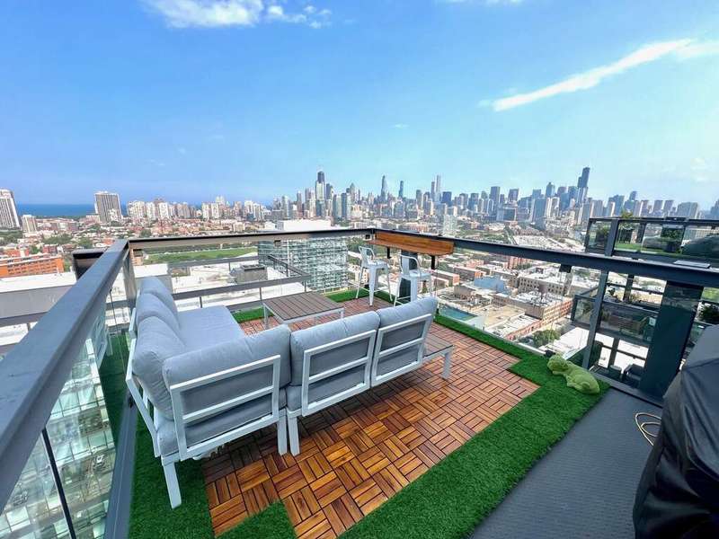 Stunning and spacious east-facing 2BD/2BA top-floor penthouse at SoNo West with over 1,400 sq ft and unbeatable views of the Chicago skyline from your private, uncovered terrace. This light-filled unit features an open layout, floor-to-ceiling windows, and room for king-size beds in both bedrooms. The primary suite includes two oversized walk-in closets and a luxurious bath. Prime Lincoln Park location just steps from the Red Line, New City, Whole Foods, Mariano's, Apple Store, and countless shopping, dining, and entertainment options. Available furnished for $6,500/month. Rent includes heat, water, gas, electricity, internet, Xfinity cable, 24/7 door staff, gym access, storage unit, and in-unit washer/dryer. On-site dry cleaning also available. Two garage parking spots included (1 indoor, 1 rooftop outdoor with EV charging). SoNo offers full-service amenities and one of the best condo gyms in the city. Truly exceptional rental in a premier location!