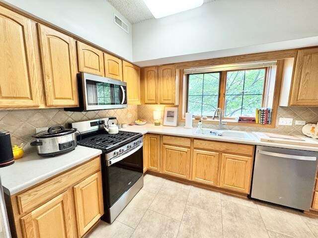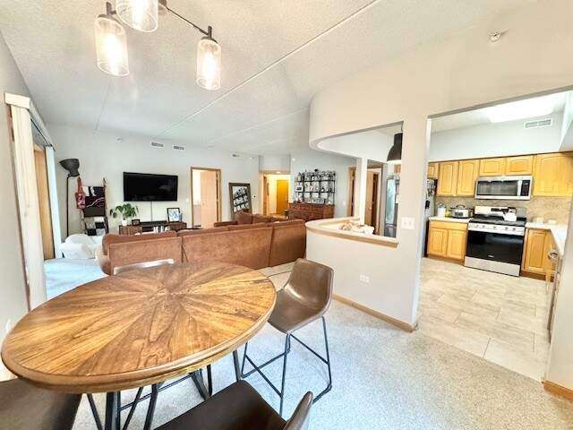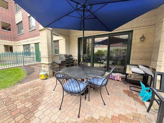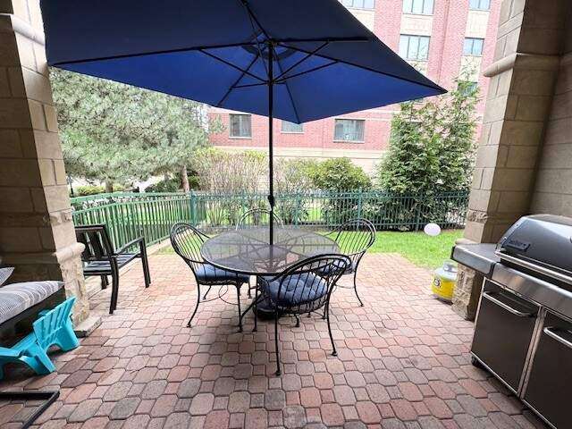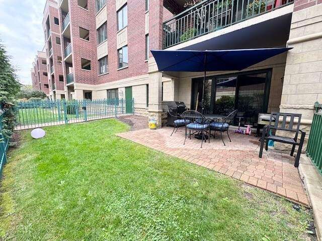 Welcome to this remarkable first floor end unit, offering over 1,500 sq ft of living space paired with an amazing fenced in yard! As you enter, you'll be greeted by an open and airy concept, featuring a spacious living room bathed in natural light thanks to its abundance of windows. This inviting space boasts sliding doors that lead directly to your private backyard oasis, making it truly one-of-a-kind! Step outside to enjoy the covered patio, perfect for outdoor living and entertaining, while the manicured grass and fenced-in yard are ideal for relaxing on sunny days or hosting gatherings. The kitchen showcases ample counter space, modern stainless steel appliances, and an area perfect for an eat-in kitchen table. For more formal occasions, a separate dining area awaits, allowing you to host dinners with style. Retreat to the primary suite, which features a generous walk-in closet and a luxurious primary bath complete with a double vanity and a walk-in shower - it's the perfect place to unwind after a long day! The second bedroom is also a great size and includes its own walk-in closet, ensuring plenty of storage throughout the unit. Additional conveniences include a full bathroom for guests, in-unit laundry, 2 indoor heated garage spots, and a large storage closet with built-in shelving, providing all the space you need. Located in the heart of downtown Mount Prospect, you'll enjoy easy access to an array of dining options, shopping, the library, and convenient Metra transportation. This exceptional property is available immediately.