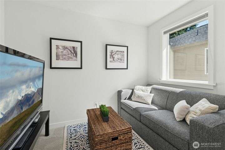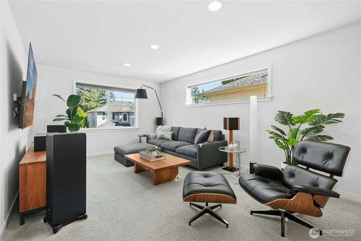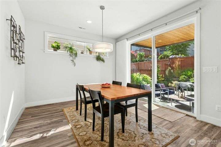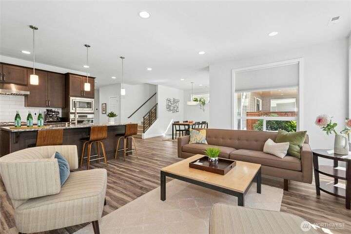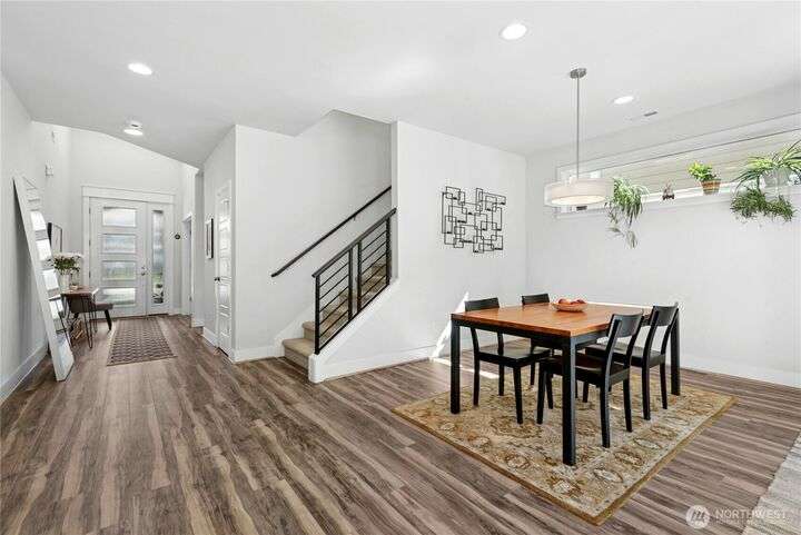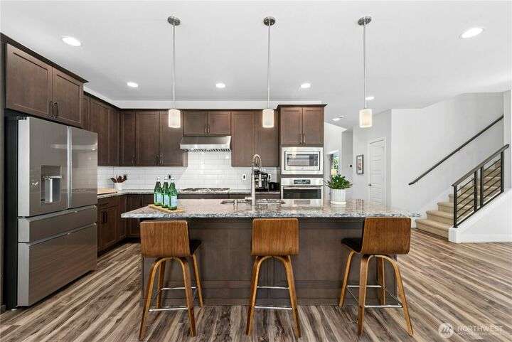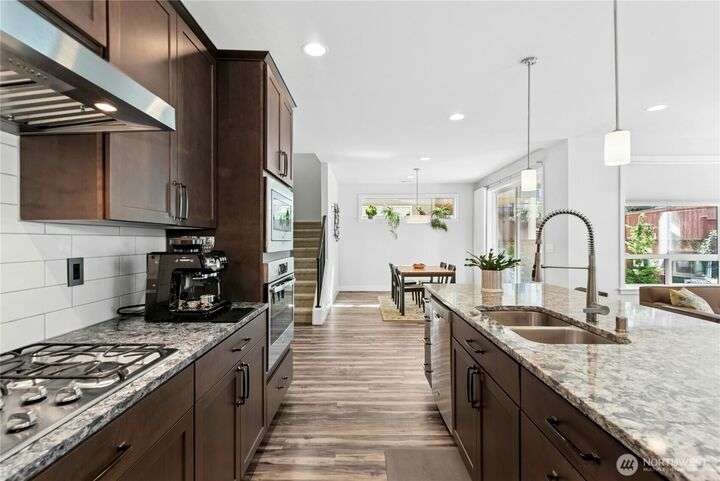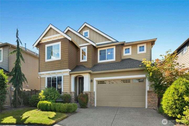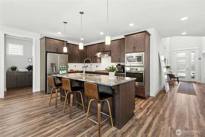 Welcome to this stunning 4-bedroom, 3-bath home offering 2,809 sq ft of beautifully designed living space! Modern finishes throughout, this home features a spacious, open floor plan, a main floor den, and an upstairs loft. The gourmet kitchen boasts a quartz slab island and sleek updates. Retreat to the luxurious primary suite, thoughtfully crafted, ideal for relaxation. Expansive windows and sliding doors flood the home with natural light. Step outside to your private backyard oasis, complete with a covered patio and privacy shades perfect for entertaining or quiet evenings. The beautifully landscaped yard includes mature plants and a flourishing garden. EV charger in the Garage. Close to Lynnwood Transit Center and Mill Creek Town Center.