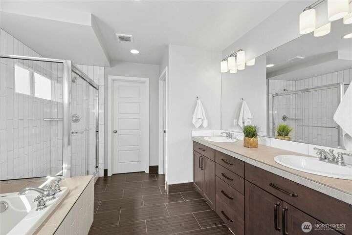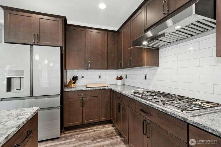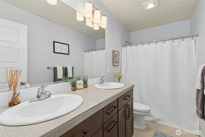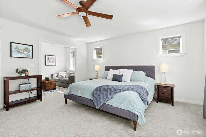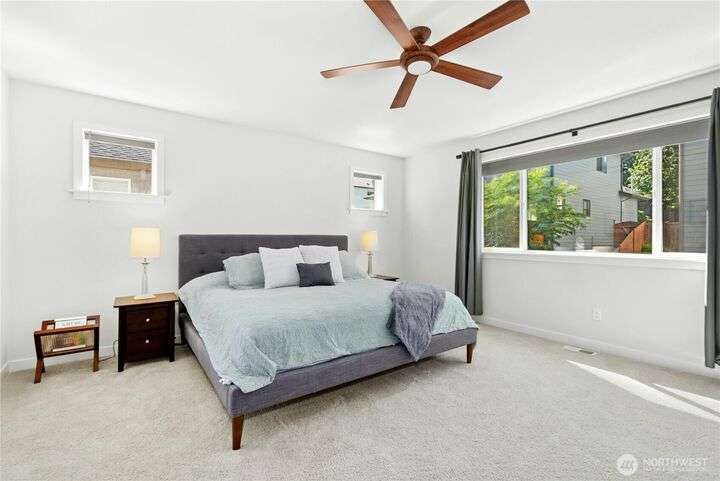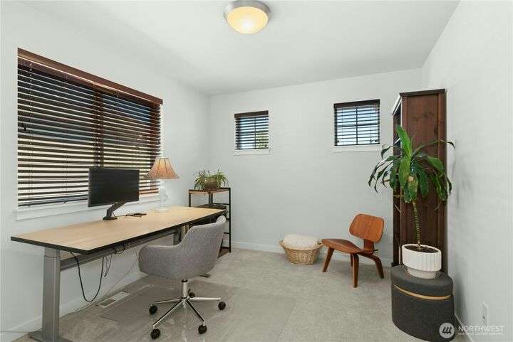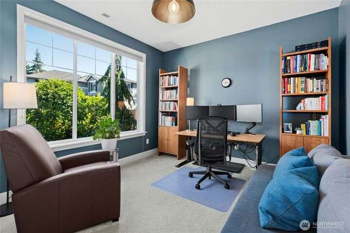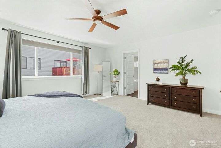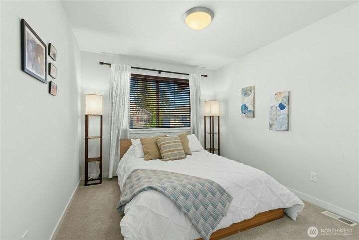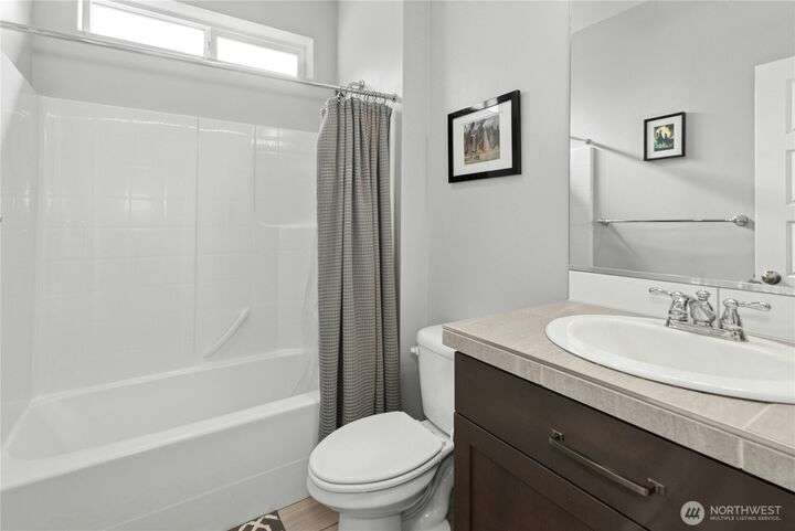 Welcome to this stunning 4-bedroom, 3-bath home offering 2,809 sq ft of beautifully designed living space! Modern finishes throughout, this home features a spacious, open floor plan, a main floor den, and an upstairs loft. The gourmet kitchen boasts a quartz slab island and sleek updates. Retreat to the luxurious primary suite, thoughtfully crafted, ideal for relaxation. Expansive windows and sliding doors flood the home with natural light. Step outside to your private backyard oasis, complete with a covered patio and privacy shades perfect for entertaining or quiet evenings. The beautifully landscaped yard includes mature plants and a flourishing garden. EV charger in the Garage. Close to Lynnwood Transit Center and Mill Creek Town Center.