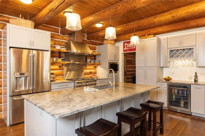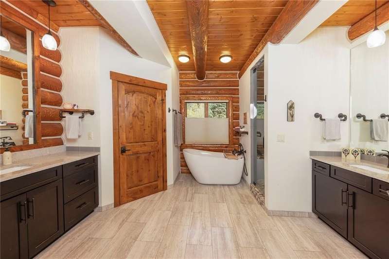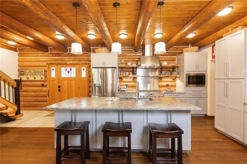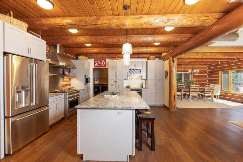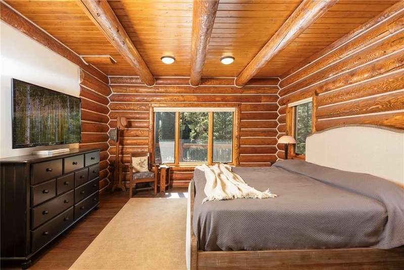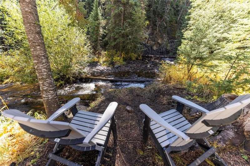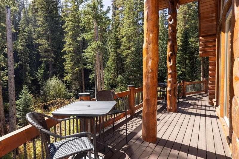 Stunning log home with a private location adjacent to open space on Willow Creek. Nestled along the serene banks of the creek, this exceptional log home is in impeccable condition and offers a truly enchanting outdoor setting. A wraparound deck and private path to the water invite hours of relaxation, and immersion in the nature provided setting. Inside, quarter-sawn, distressed wide-plank oak floors throughout the main level, add rustic elegance. Featuring main-floor living, the open-concept great room, welcoming dining area, and luxurious primary suite all capture the soothing sounds of the creek, creating a seamless connection to the outdoors. Upstairs, two additional guest rooms continue the home's connection to the water, while a versatile fourth bedroom can serve as a home office, gym, or bonus space to suit your needs. Enjoy the well appointed modern kitchen featuring striking stone countertops, a full size 6-burner range, range hood with warming rack and a custom built wet bar. An oversized two-car garage provides ample space for all your gear, perfect for enjoying the endless adventures Summit County has to offer. Just out your front door is the famed Willow Creek Falls trailhead, offering miles of hiking and exploration. Experience the unmatched tranquility of this premier setting—where the sounds of the creek restore your spirit, yet world-class skiing, dining, and amenities remain just minutes away.