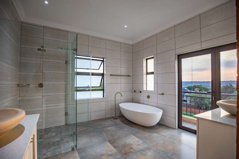 This magnificent, well-appointed, 800sqm, 3 story property is nestled high on the Bronberg Mountain ridge line on a 7000sqm stand. This prime real estate offers an unobstructed view over the Zwavelpoort Valley. This property has is all and no detail has been overlooked. The architectural design, accompanied with top class finishing's create an air of classical eloquence. The property offers 4 bedrooms with 3 bathrooms on the first floor with a spacious pajama lounge. Two of the bedrooms is en-suit with the 2 remaining bedrooms sharing a bathroom. The immense master bedroom is equipped with its own fireplace. On the ground floor you will find an abundance of open space leading out into an entertainment area with a build-in braai overlooking the swimming pool. The TV room is separate from the dinning and formal lounge area. The kitchen is magnificently designed with granite worktops and a separate scullery that doubles as a laundry. The study on this floor has its own balcony. In the cellar is a build-in in bar with granite worktops. The property has 4 garages, staff accommodation and a storeroom. Olympus Heights is one of the most sought-after estates in Pretoria East. It offers 24h security and peace of mind, that your investment is in good hands.